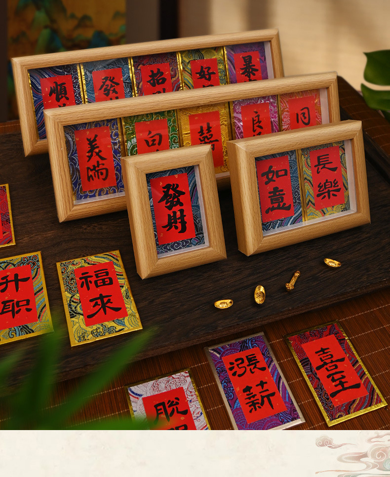 【织锦硬卡书法DIY摆台】非遗国风锦缎布面洒金纸楮笺卡纸文创摆件