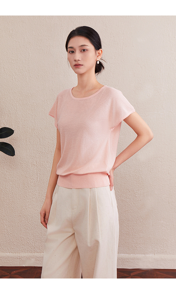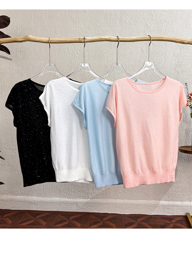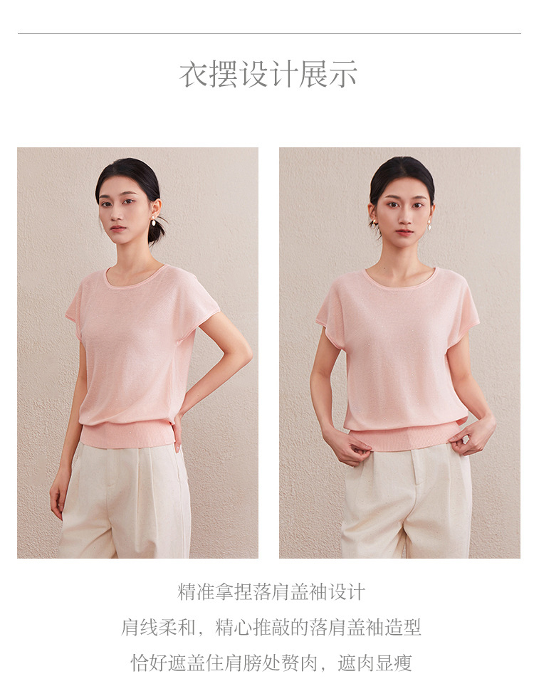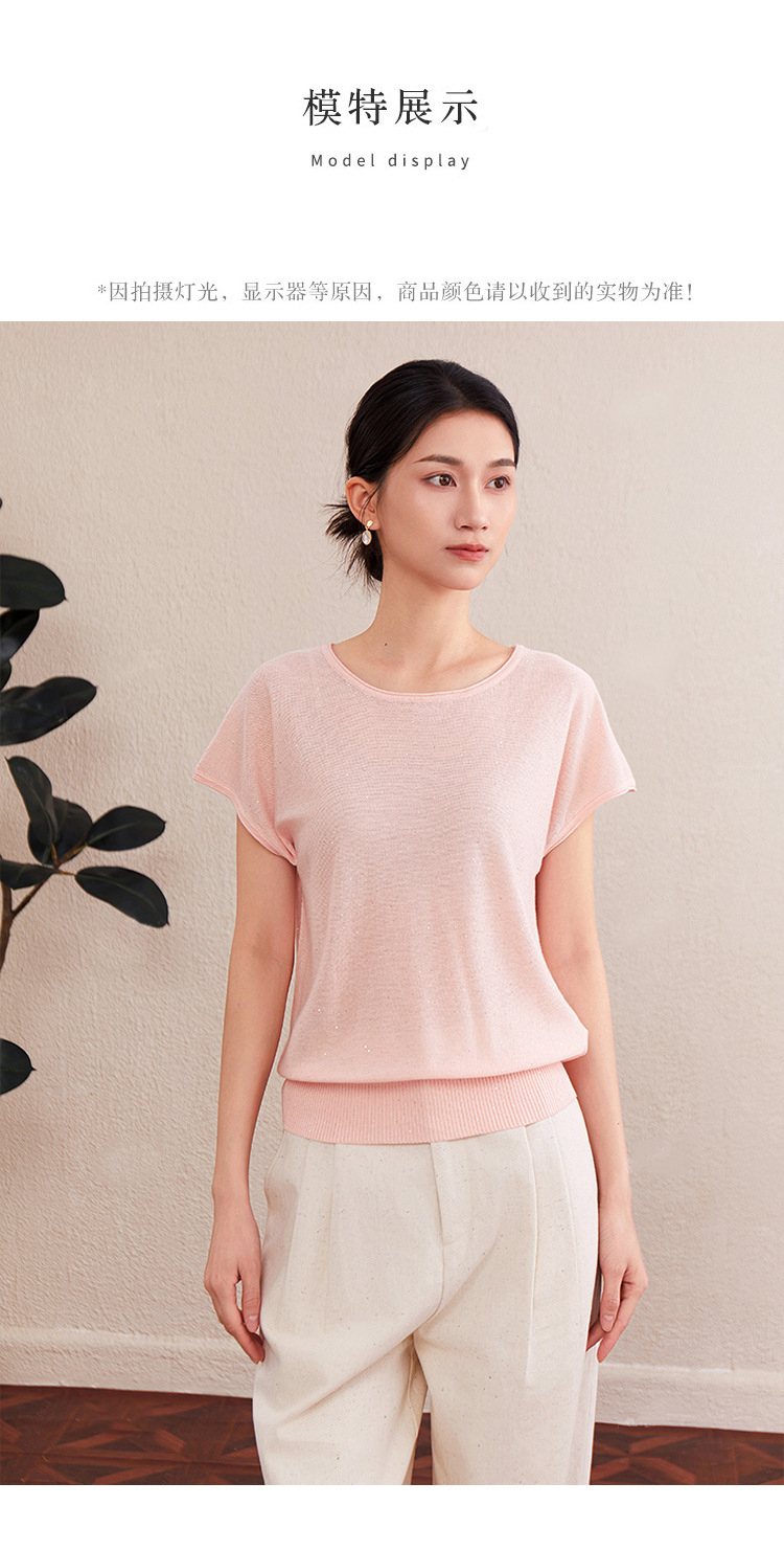 【自】全新升级【铂金会员165/天猫219/差价54】(00604) 洛诗琳夏季新款短袖T恤女韩版圆领时尚休闲百搭套头针织上衣