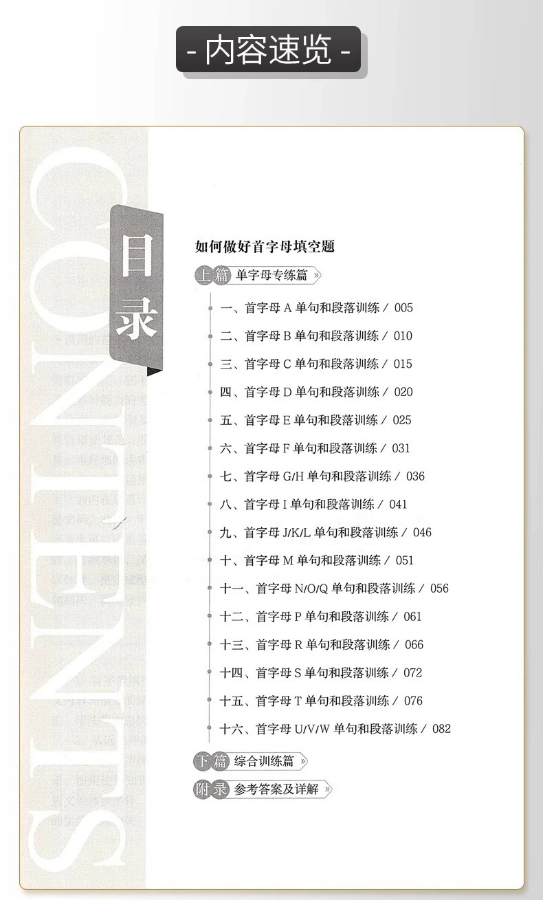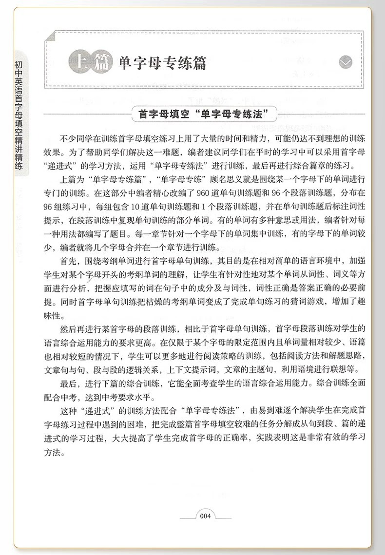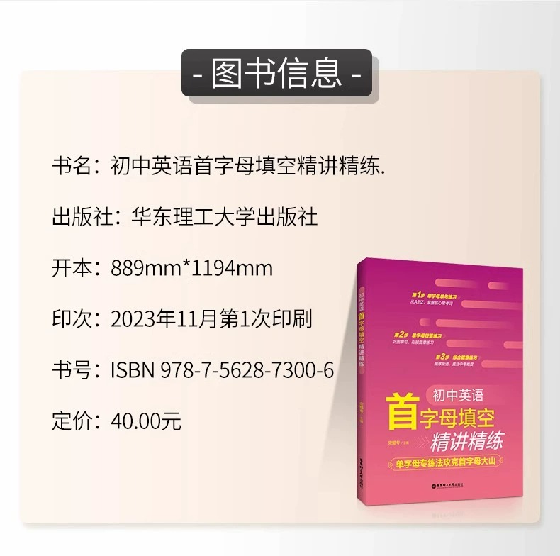初中英语首字母填空精讲精练 单字母专练法攻克首字母大山初中通用 掌握核心常考词巩固单词衔接篇章练习华东理工大学出版社