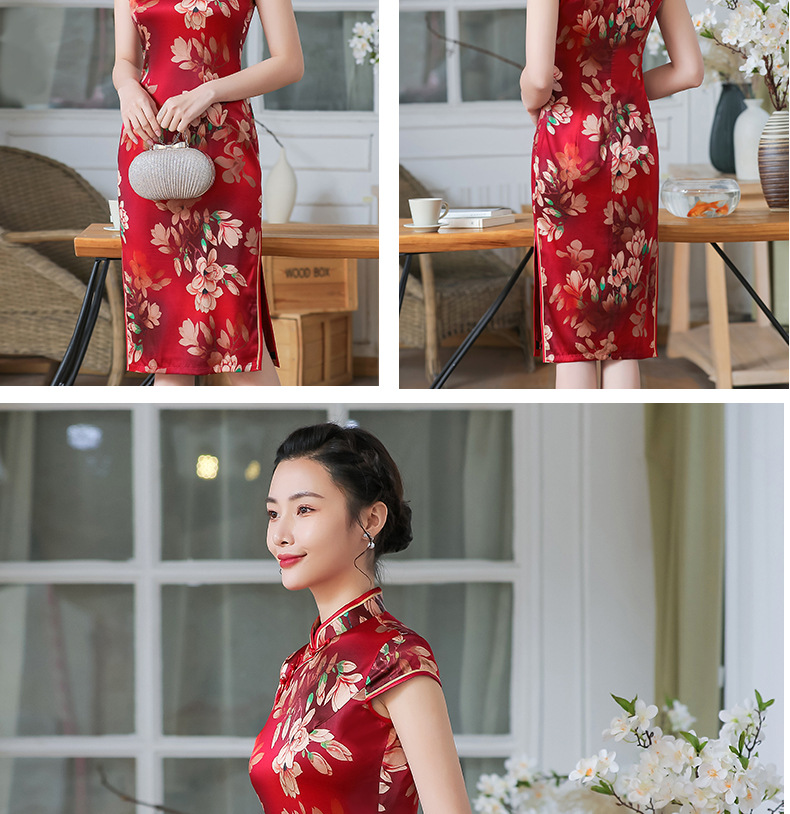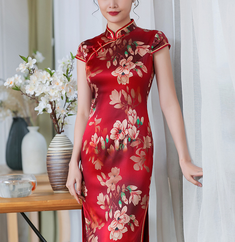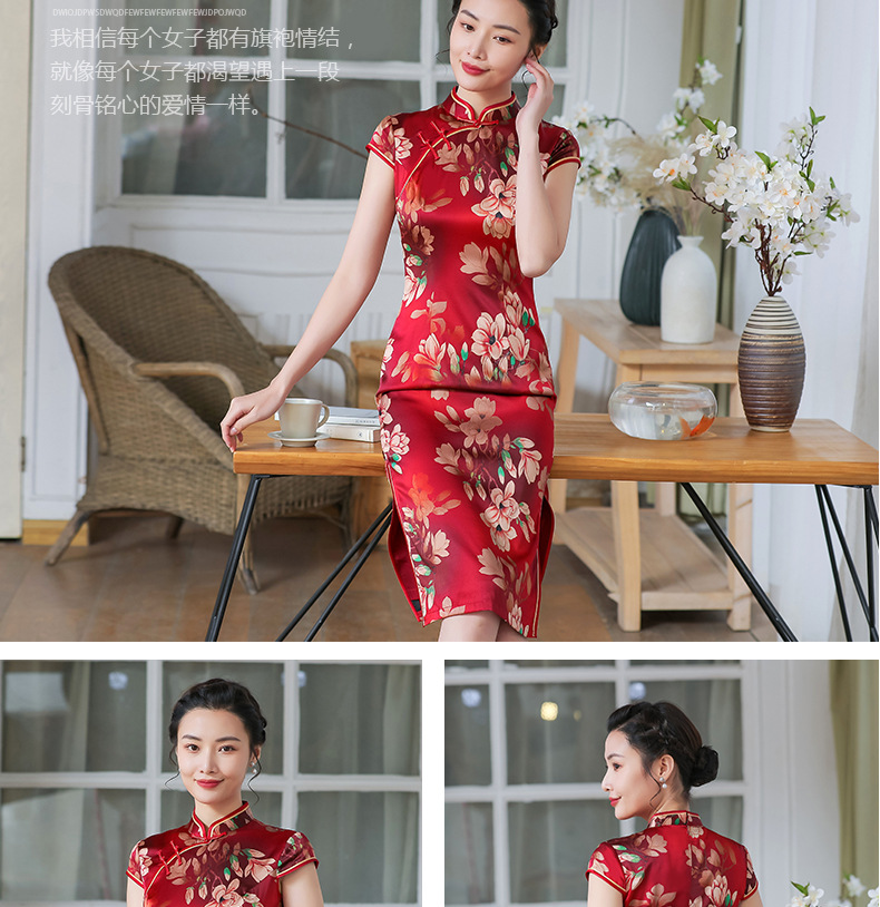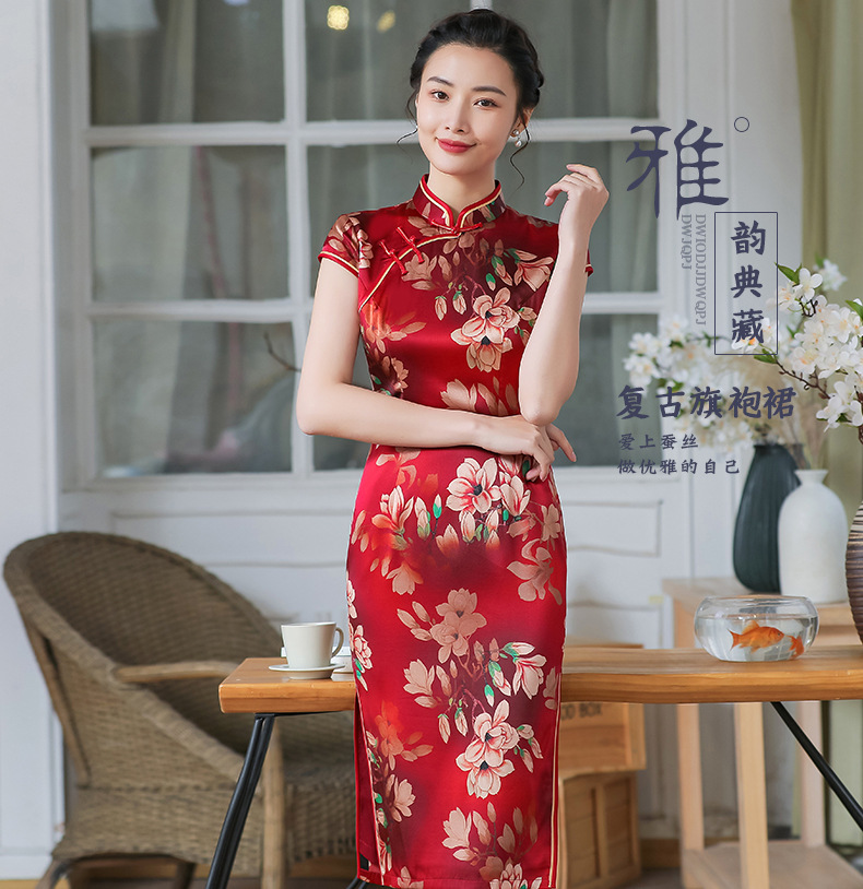 上海旗袍厂TZRY-C2011高端唯美复古潮流红色惊艳礼服旗袍