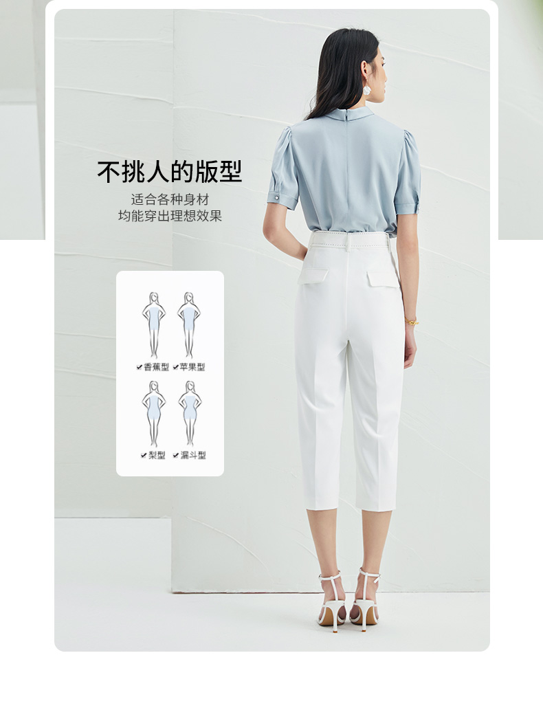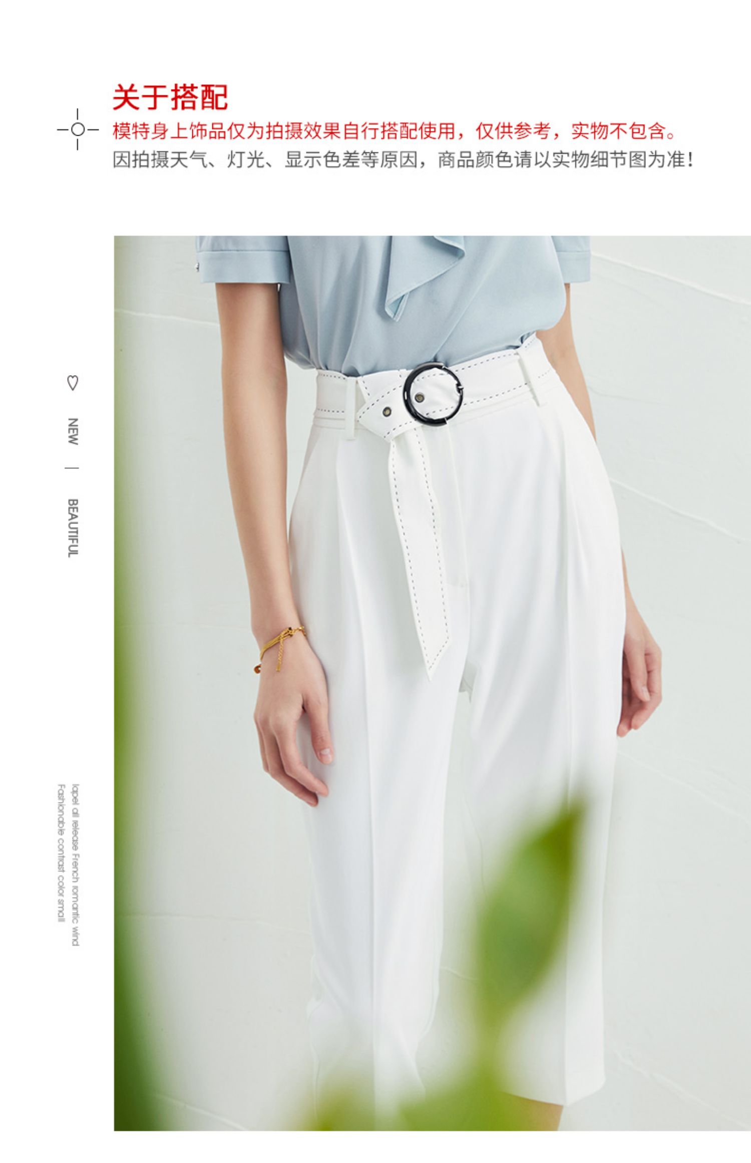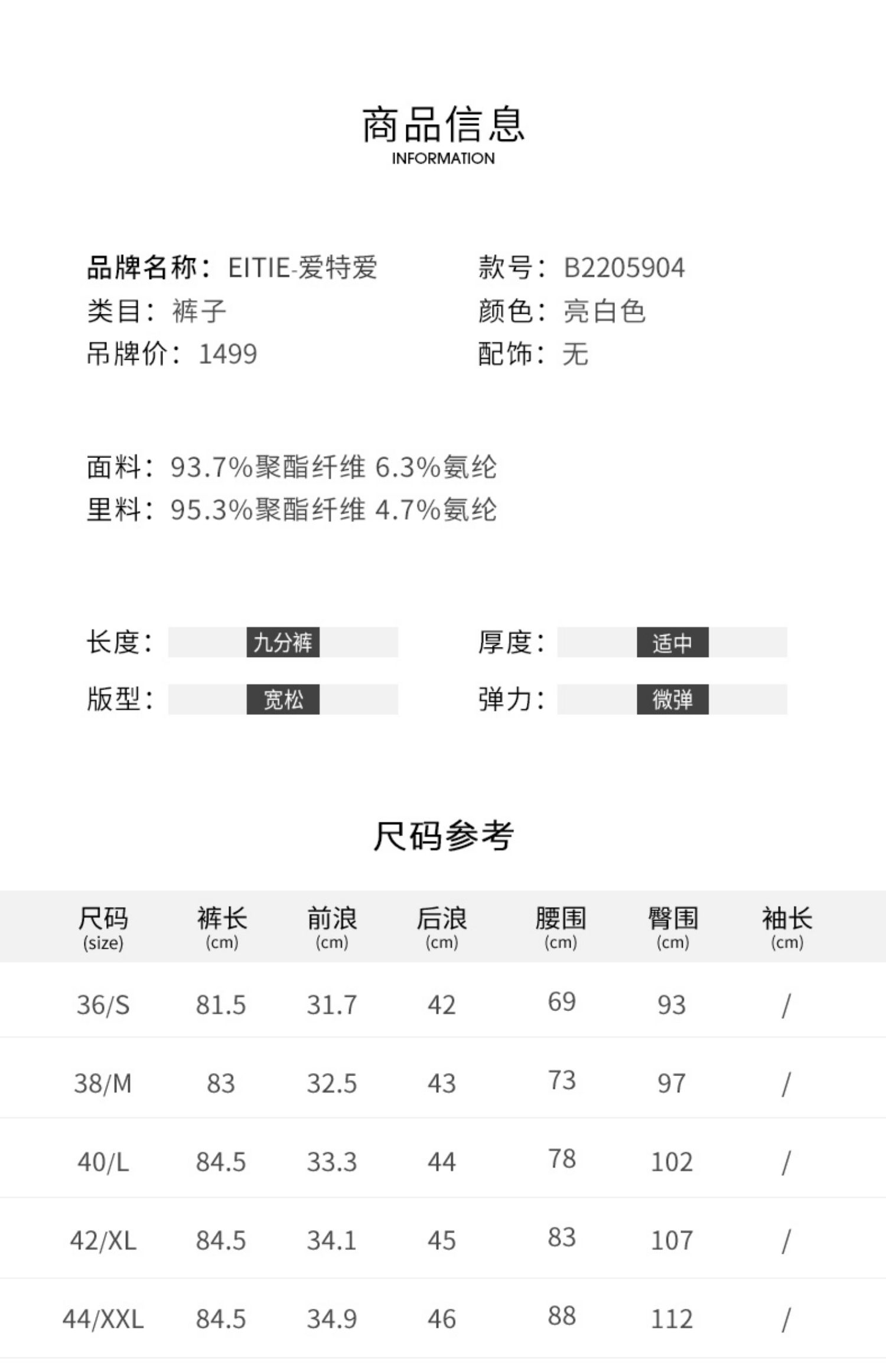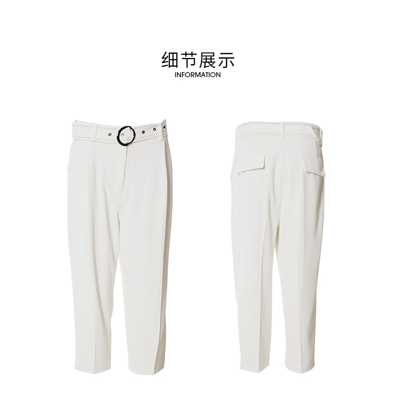 EITIE爱特爱夏季新款时尚通勤简约显瘦高腰白色哈伦休闲裤女B2205904