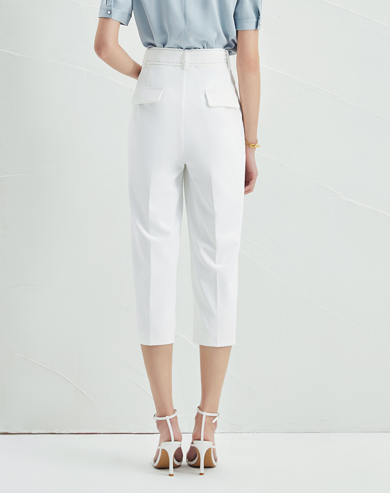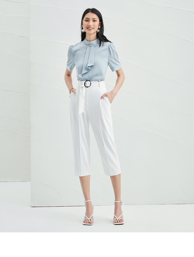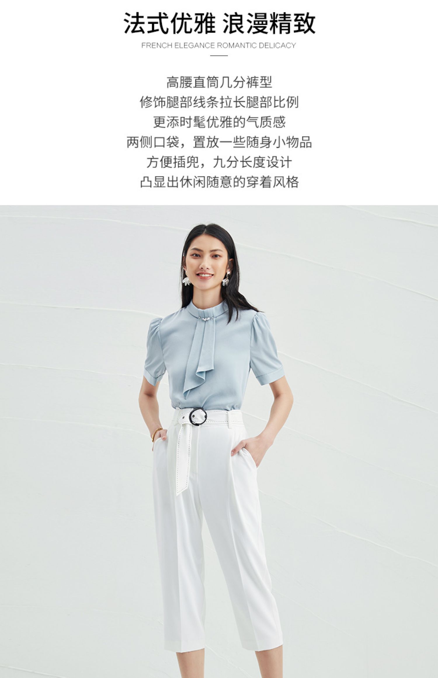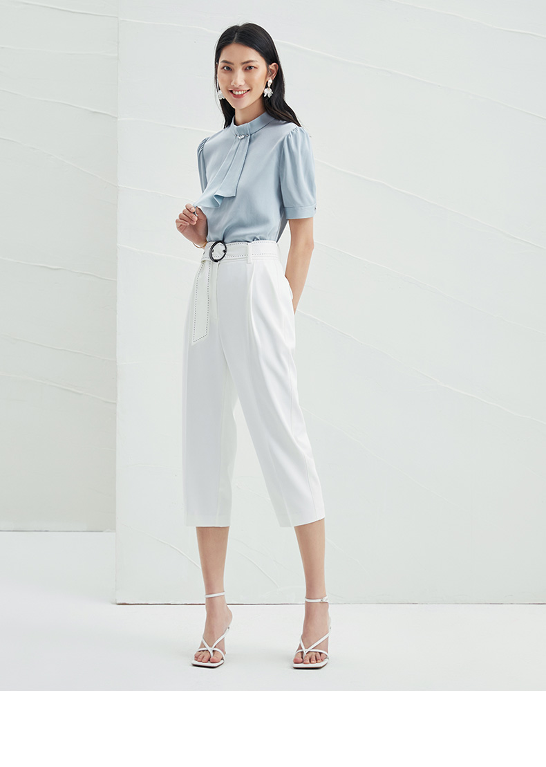 EITIE爱特爱夏季新款时尚通勤简约显瘦高腰白色哈伦休闲裤女B2205904
