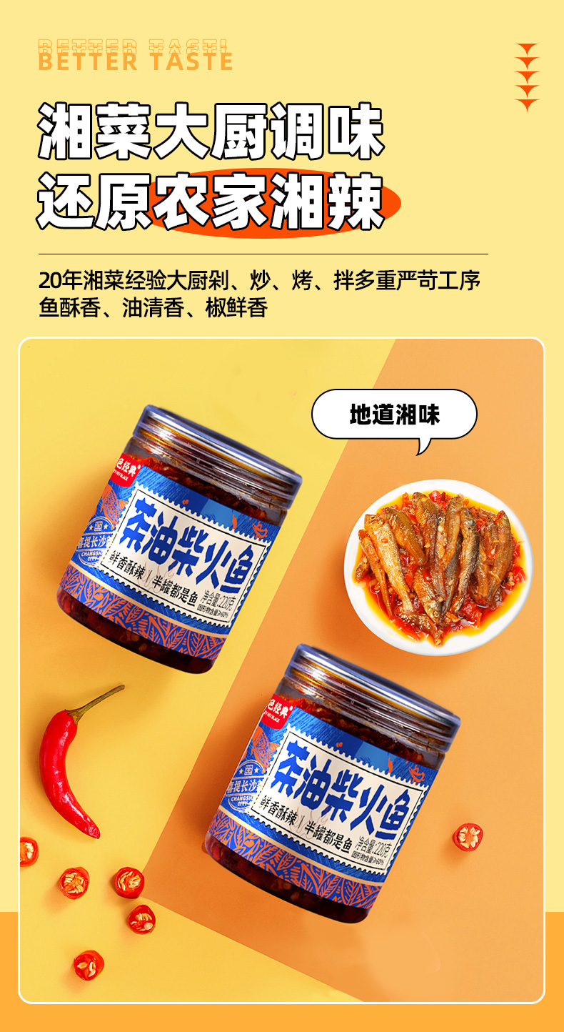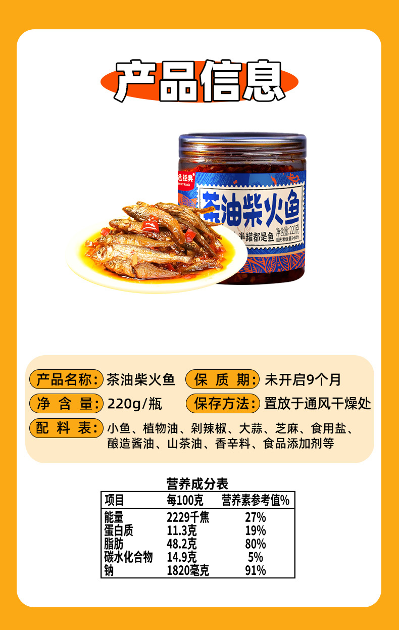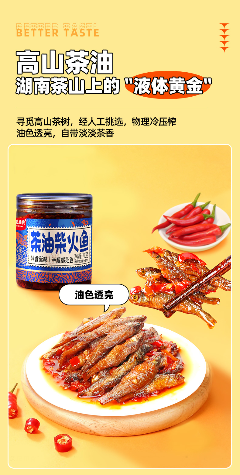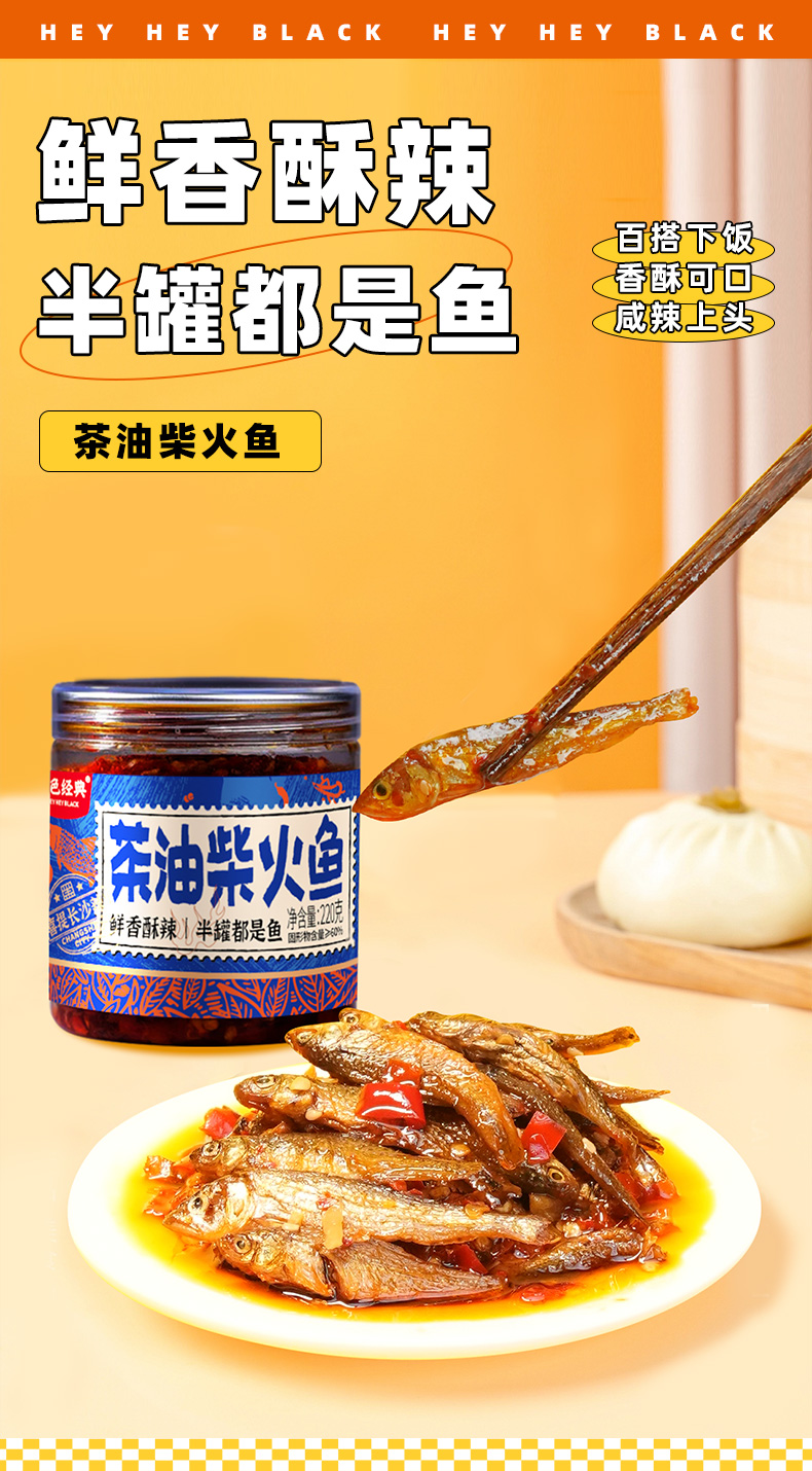 【57.6元任选3件】黑色经典茶油柴火鱼220g/瓶