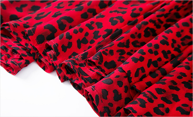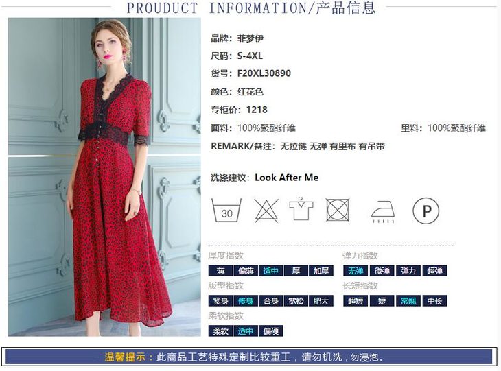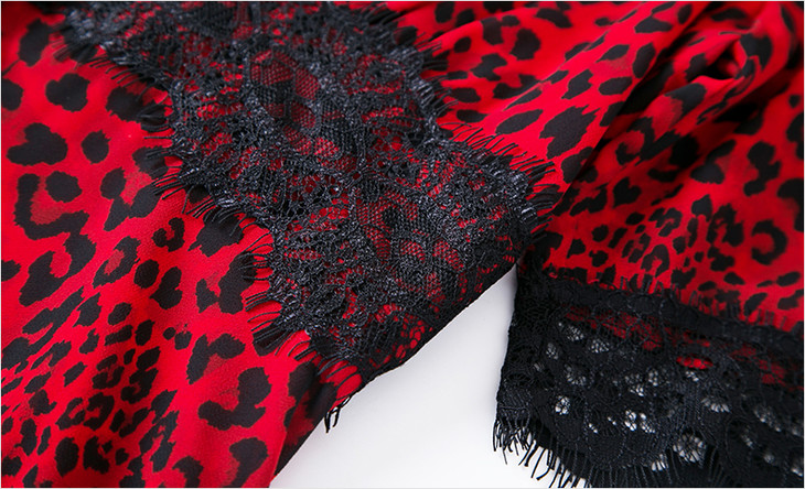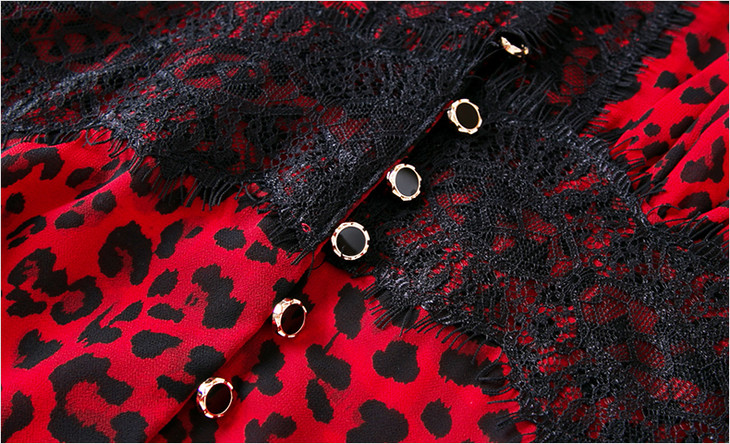 FMY-F20XL30890夏装新款复古V领收腰蕾丝豹纹印花连衣裙