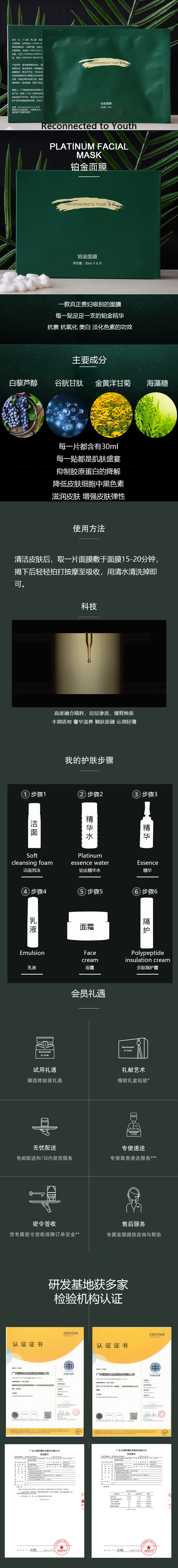 誓龄铂金面膜30ml*8p/盒抗氧化保湿抗衰修护敏感肌肤