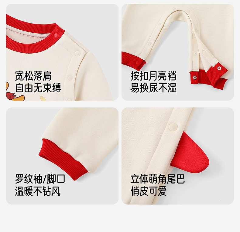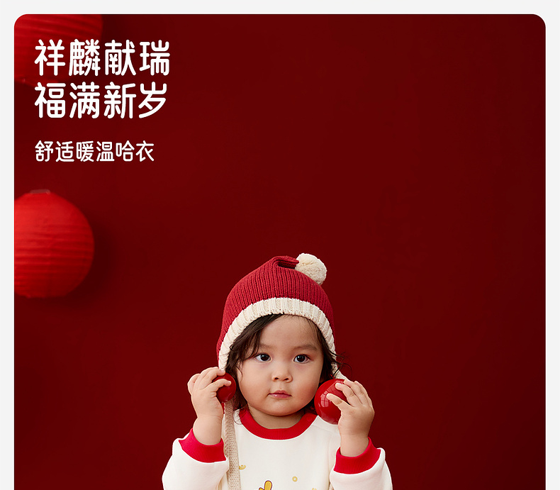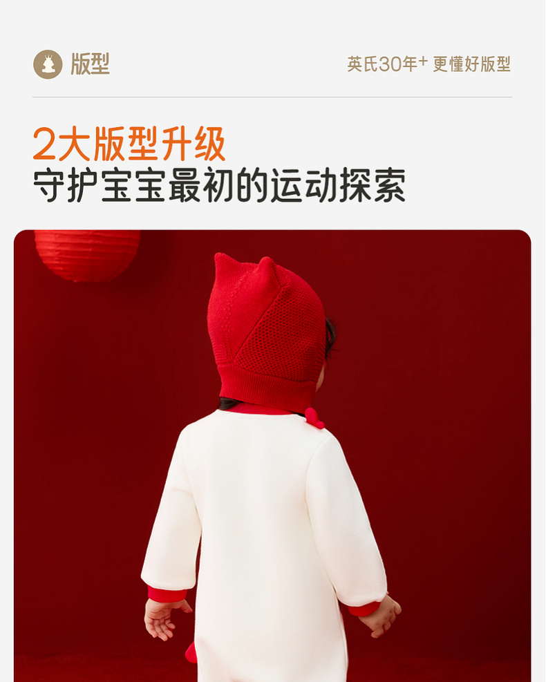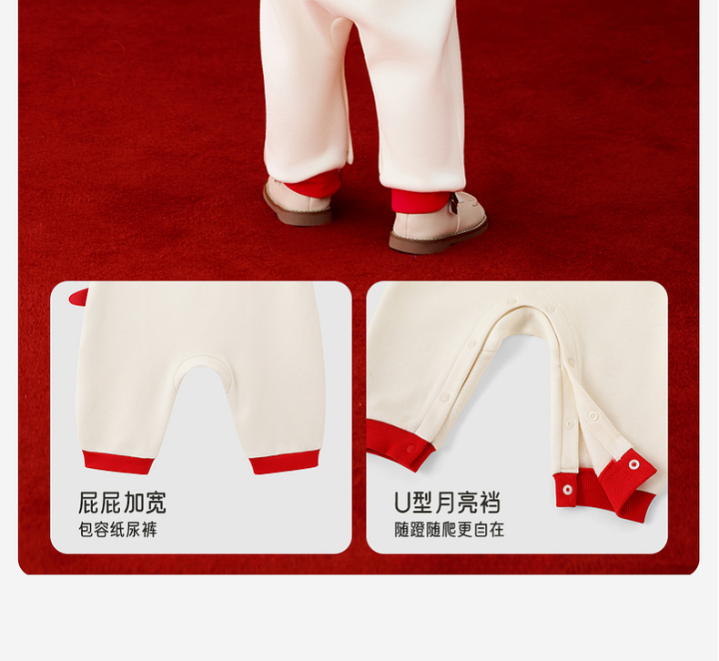 英氏婴儿哈衣连身衣女宝新年喜庆男宝过年保暖亲肤新生儿秋冬新款