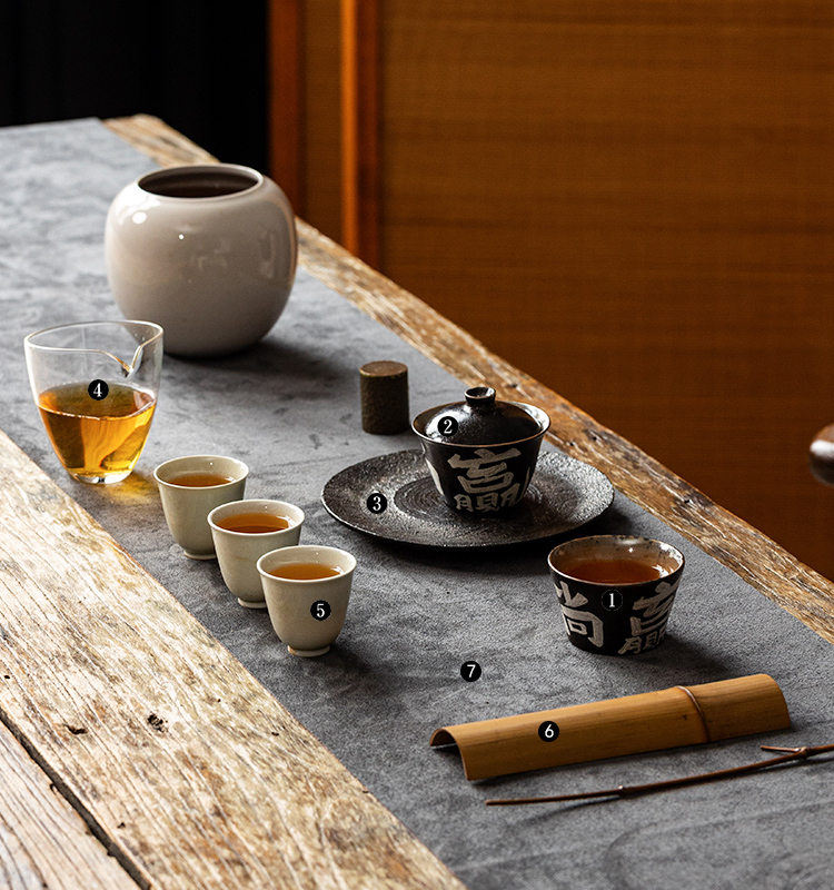 茶香记黑志野手绘书法直口主人杯(躺赢)80ml陶瓷主人杯茶杯品杯