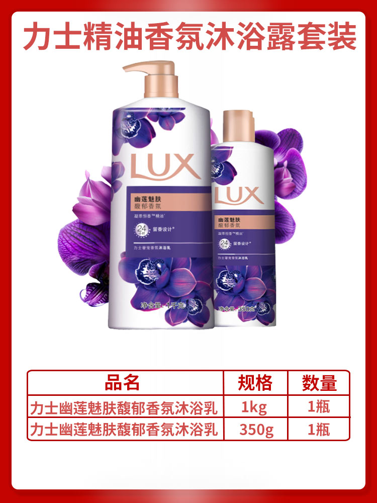 【力士(LUX)】沐浴露套装 闪亮冰爽/幽莲魅肤 沐浴乳1000g 送幽莲350g