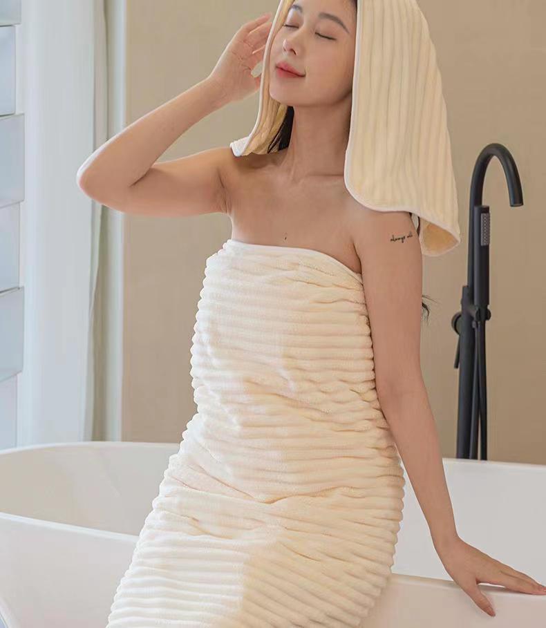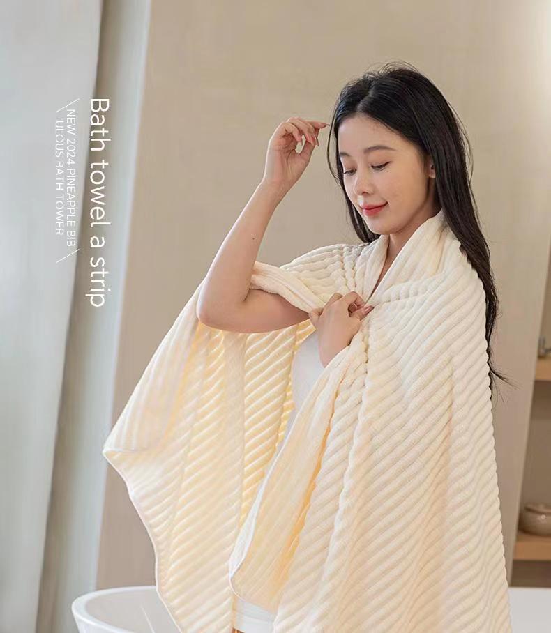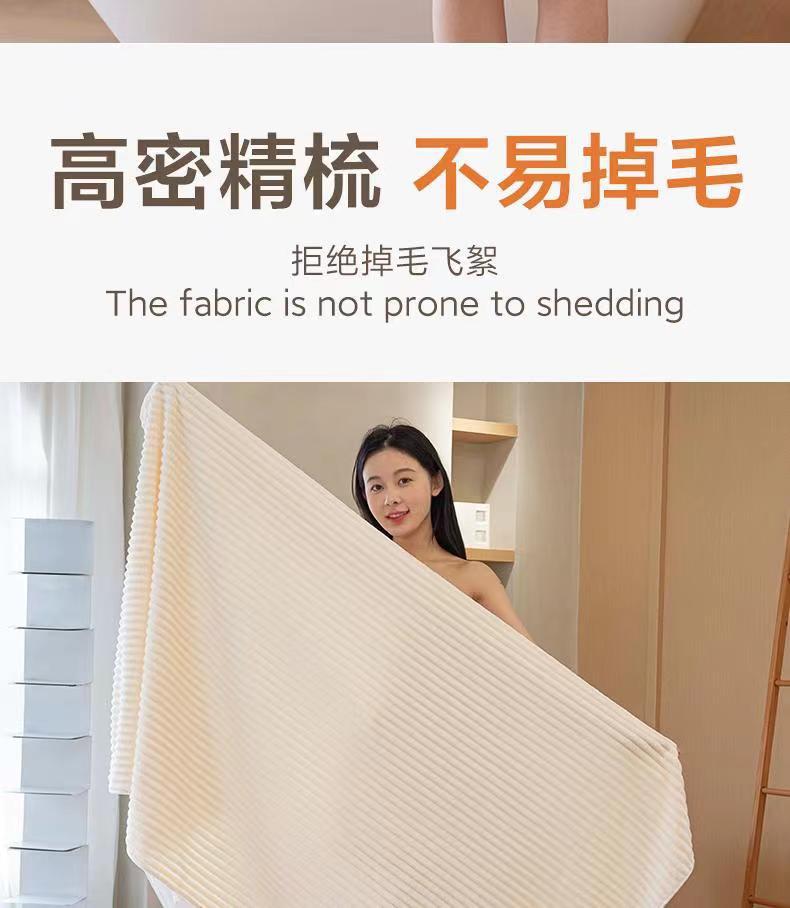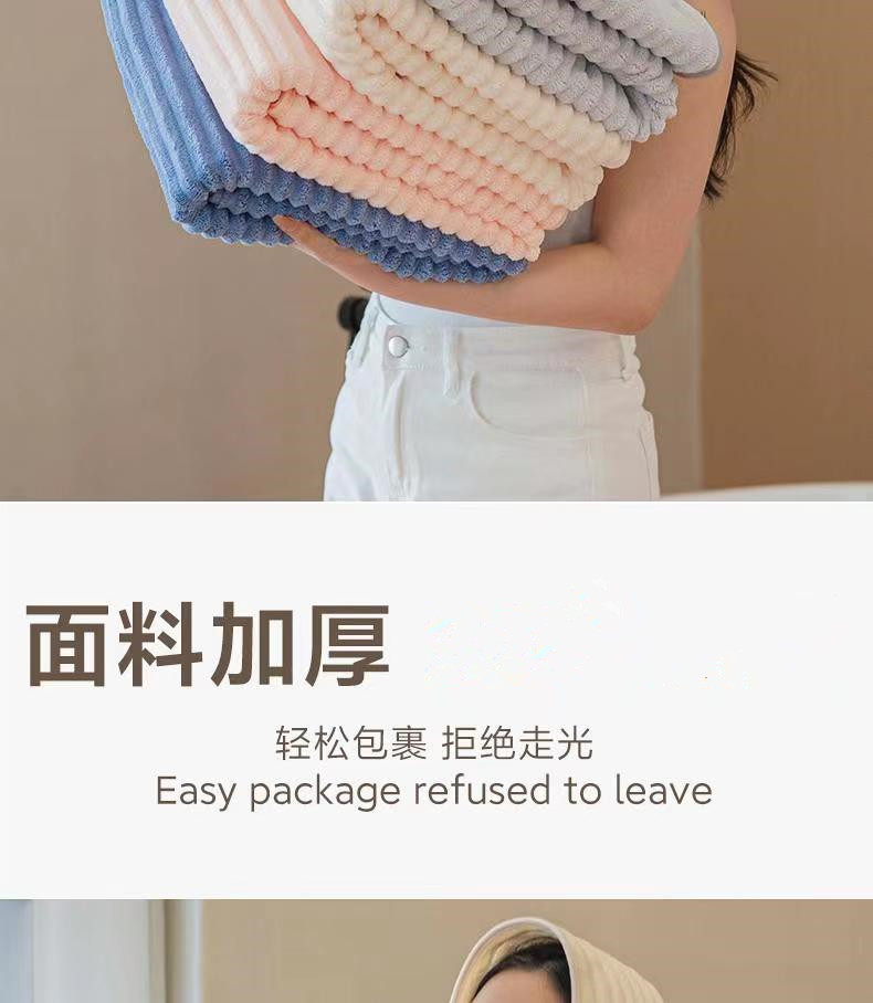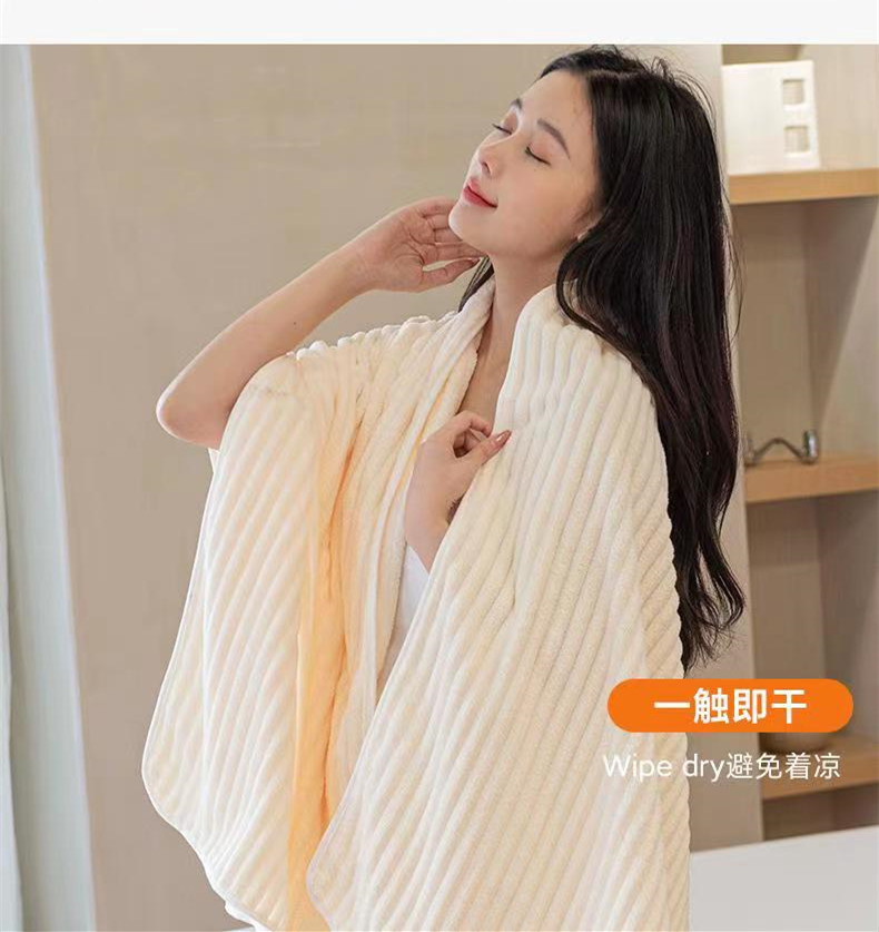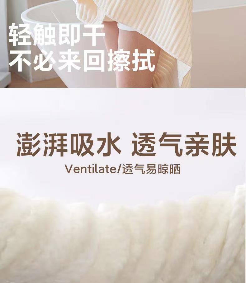 【椰椰奶条珊瑚绒浴巾三件套】越洗越软!珊瑚绒材质 母婴可用 无荧光不会掉色 70*140加大加厚 澎湃吸水 透气亲肤 高密度绒毛 不易掉毛 (三件套:浴巾+毛巾+干发帽)