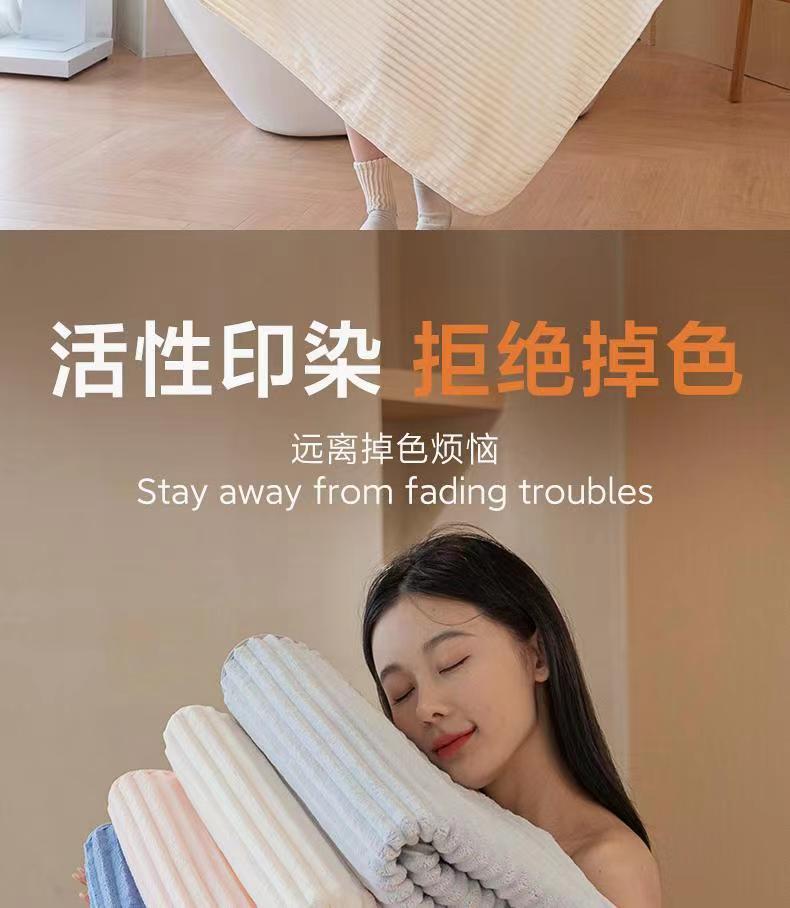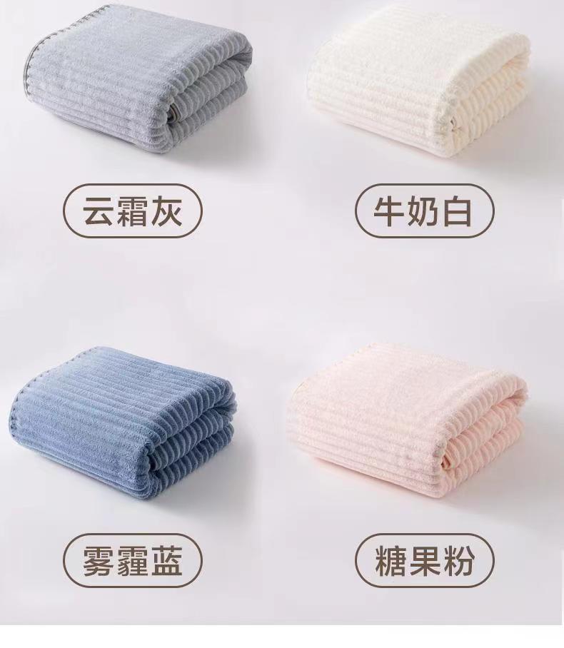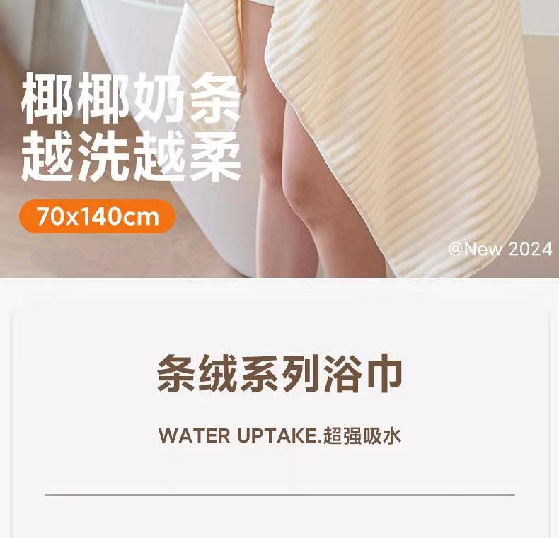 产品:椰椰奶条珊瑚绒浴巾三件套