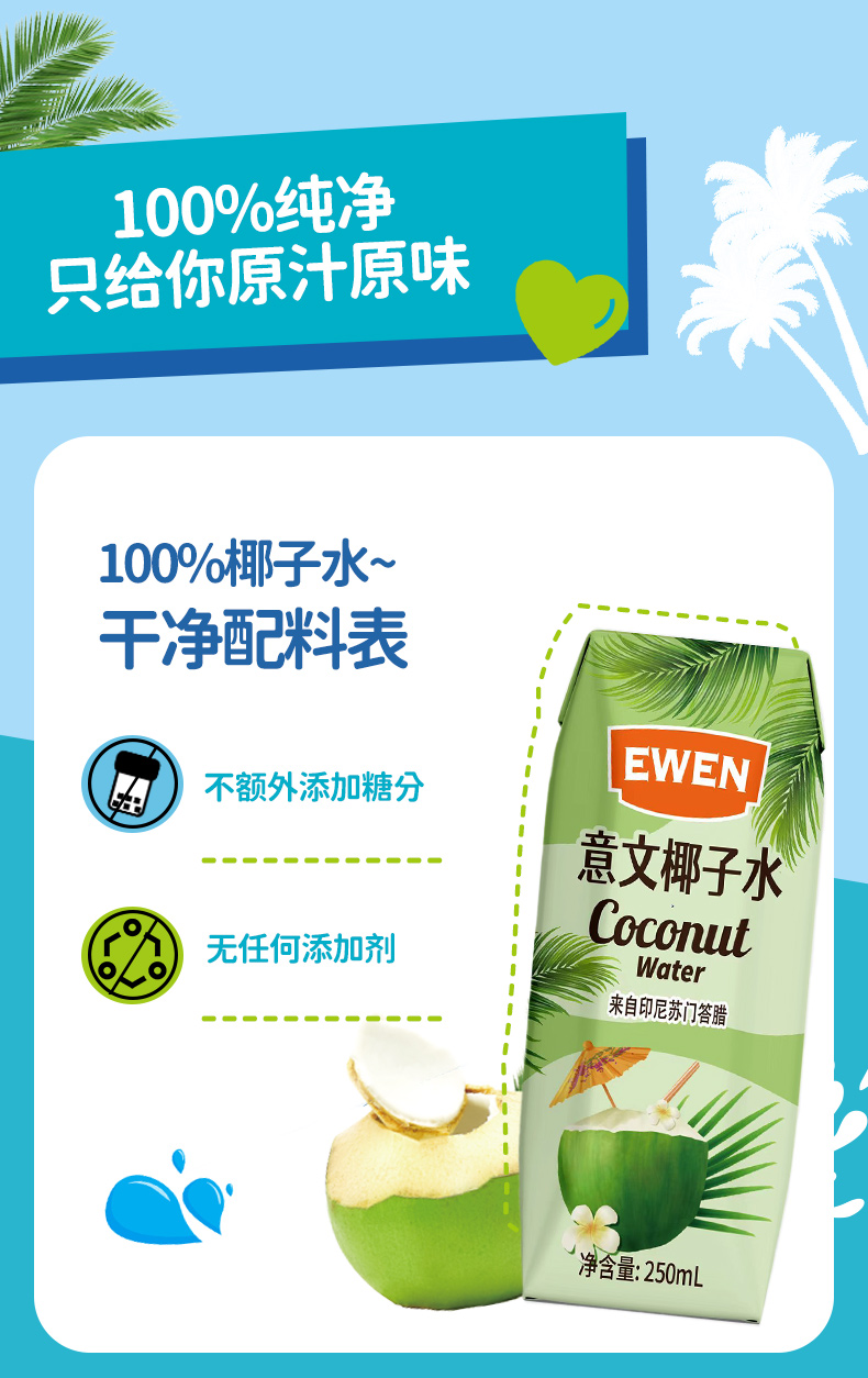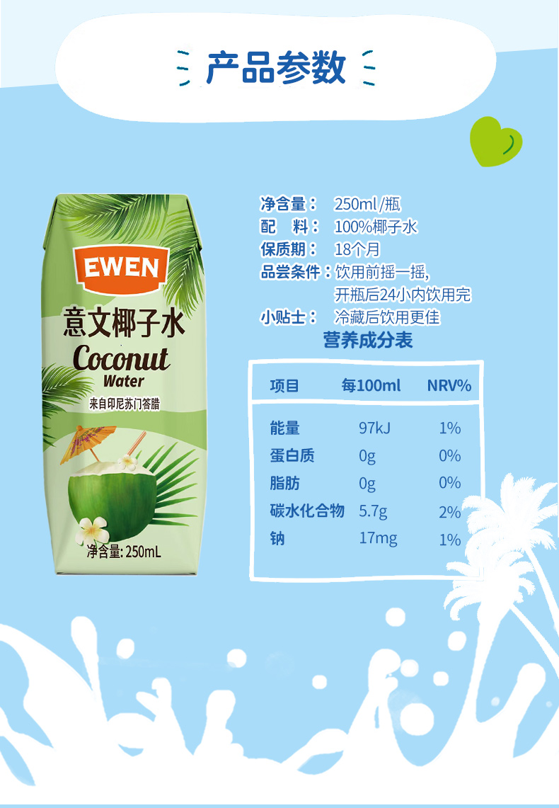 苏门答腊进口意文NFC100%纯椰子水250ml*24盒