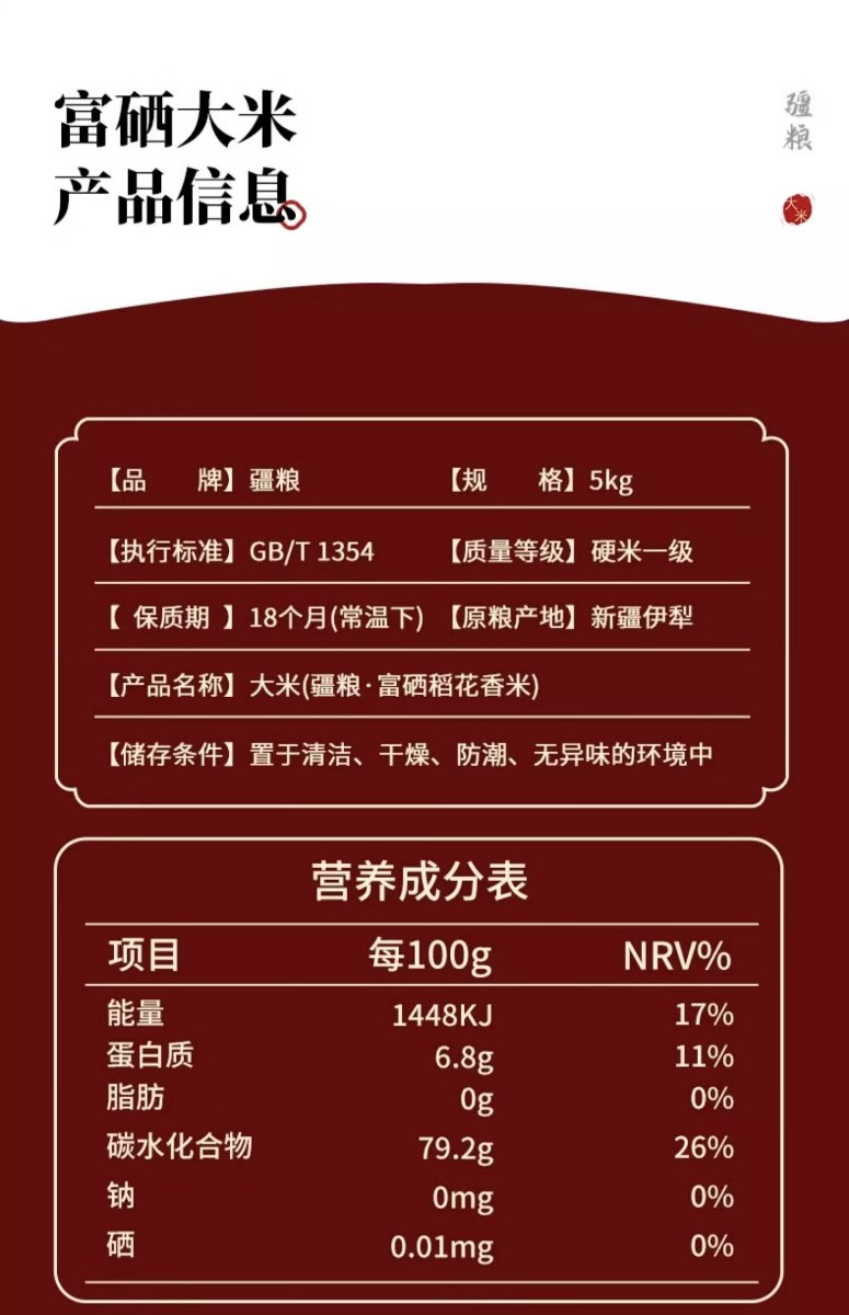 疆粮·富硒稻花香 新疆大米 5kg 蒸饭晶莹饱满 焖饭油润不粘 家常味更浓