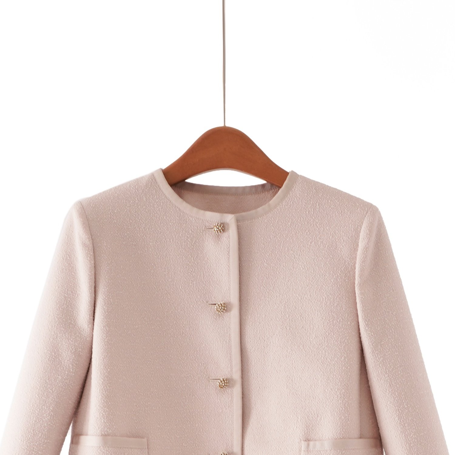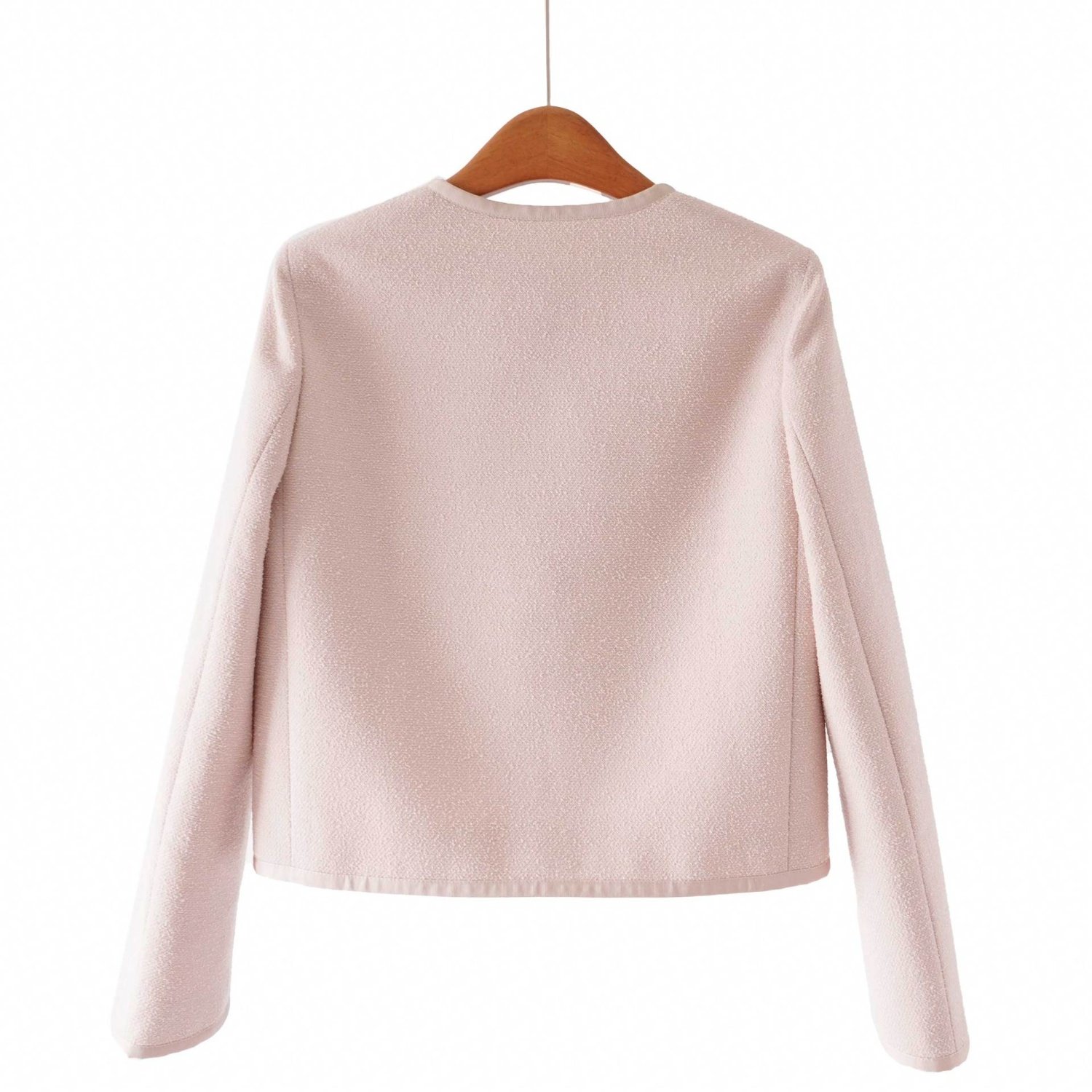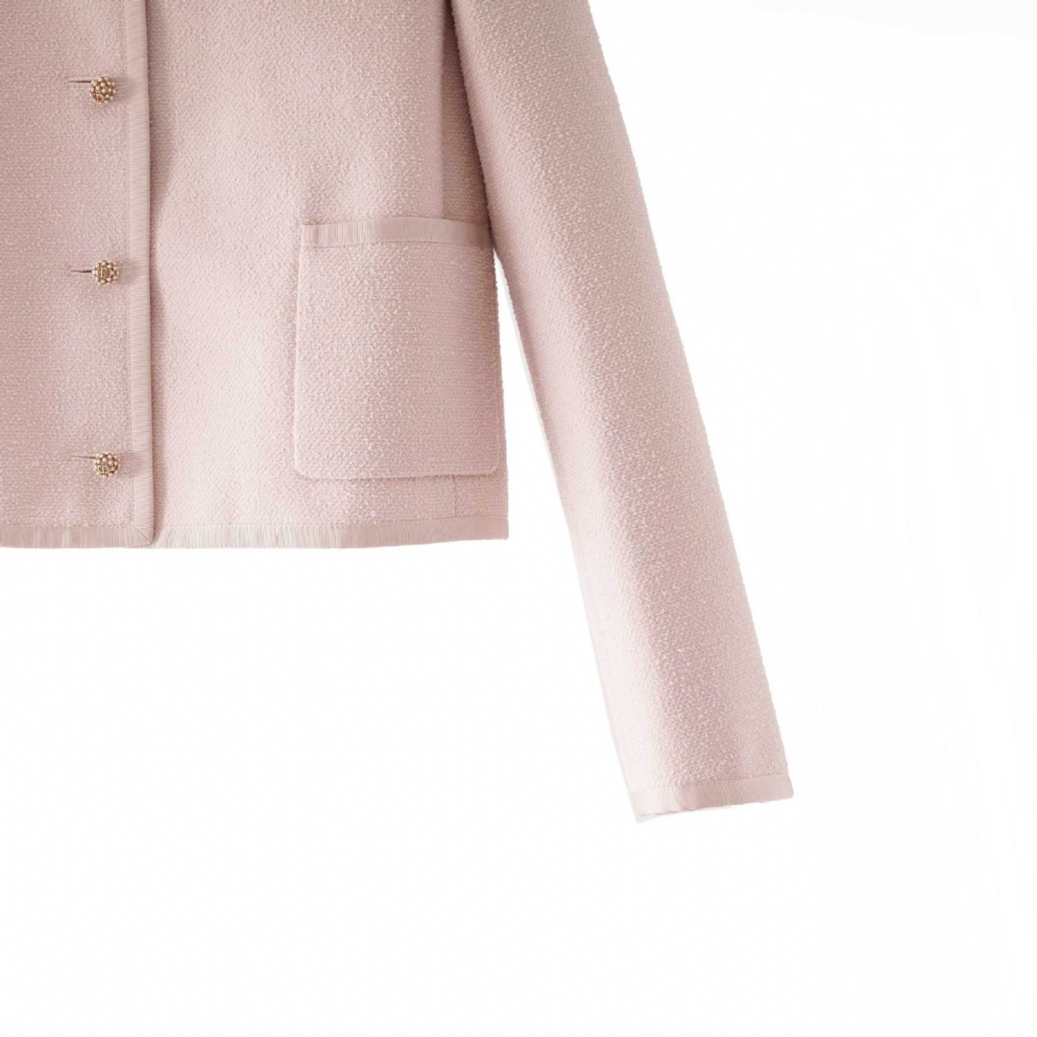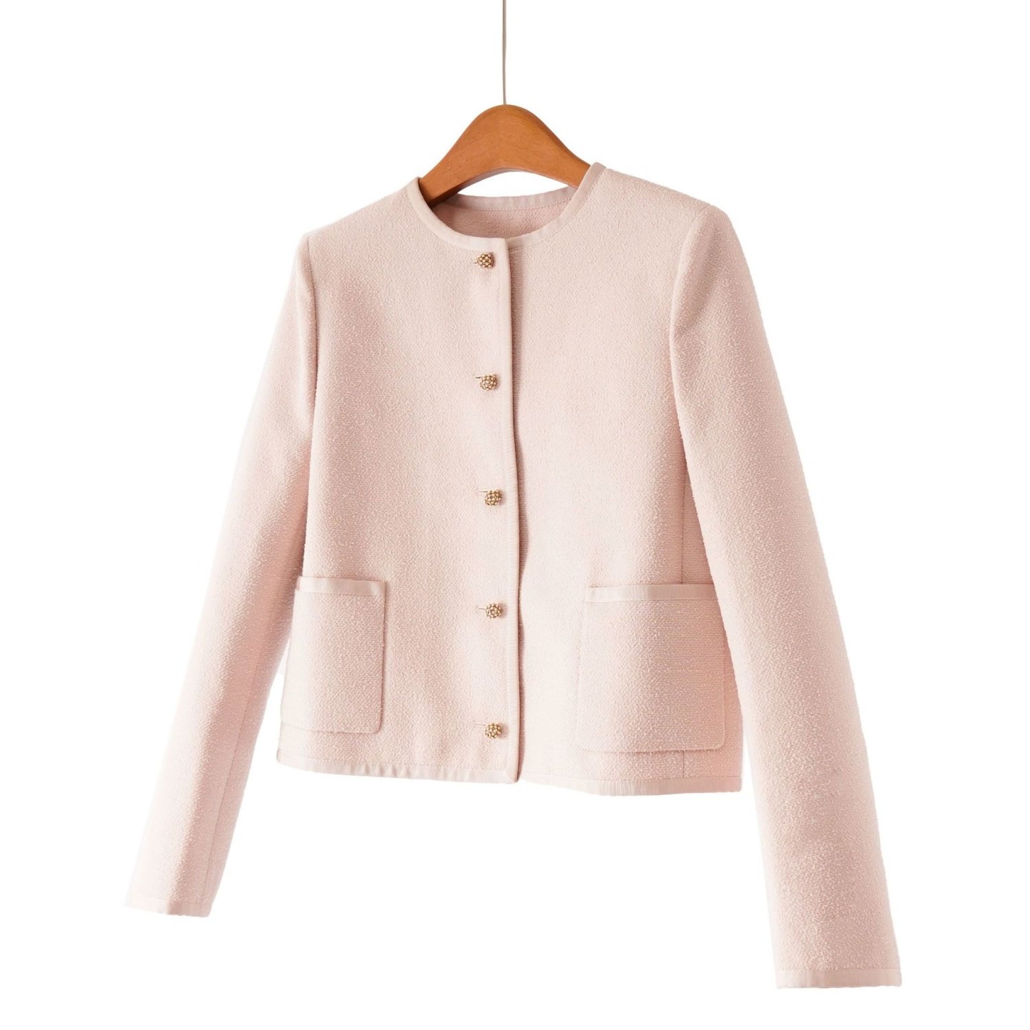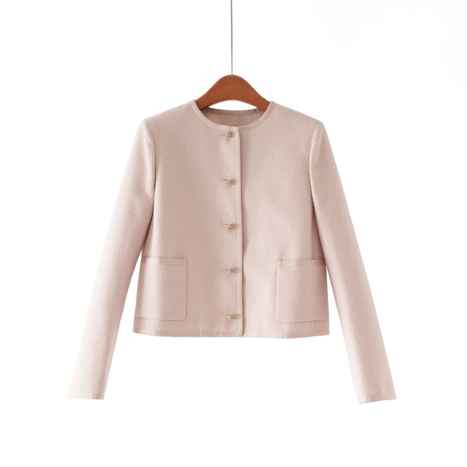 「自」全新升级【铂金会员358/天猫479/差价121】(11459)洛诗琳裸粉色小香风外套2026春季金属扣气质通勤羊毛短外套