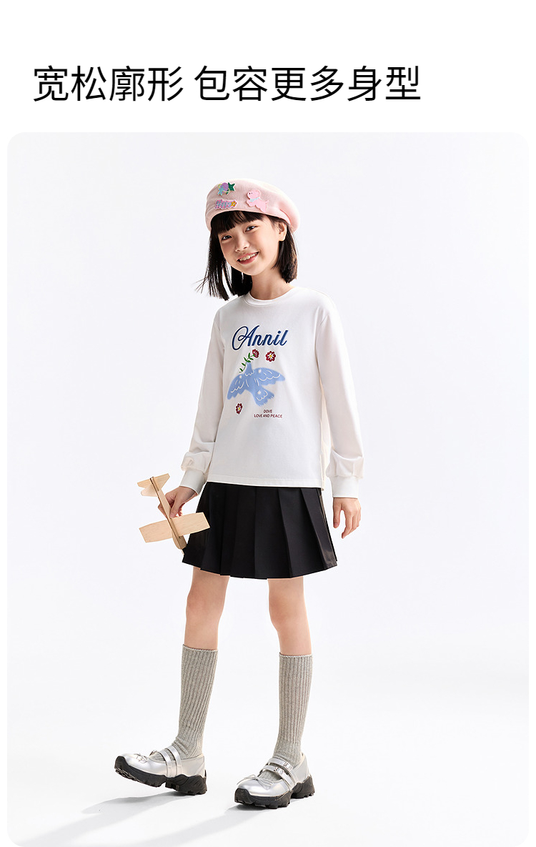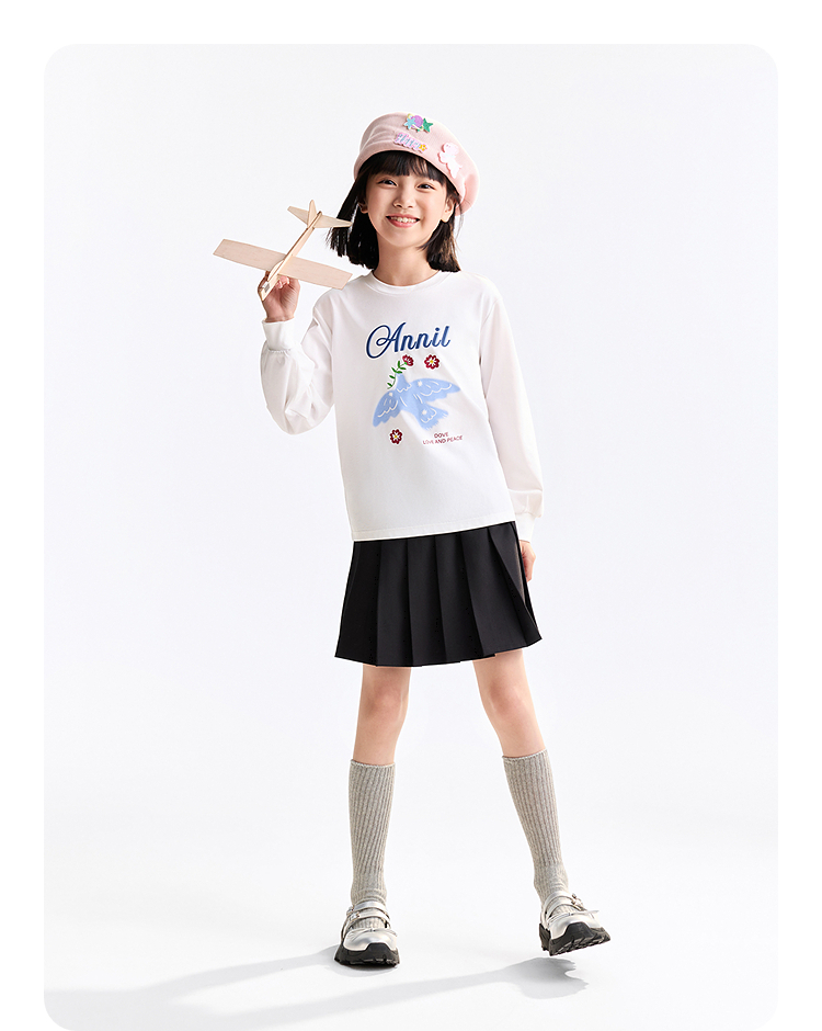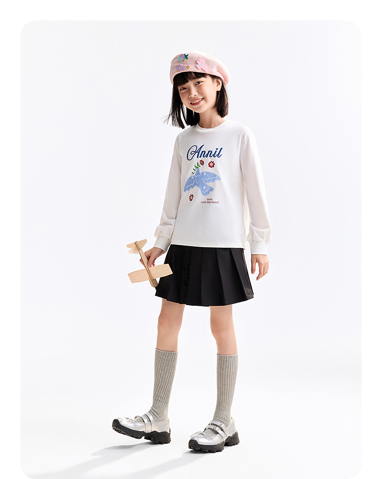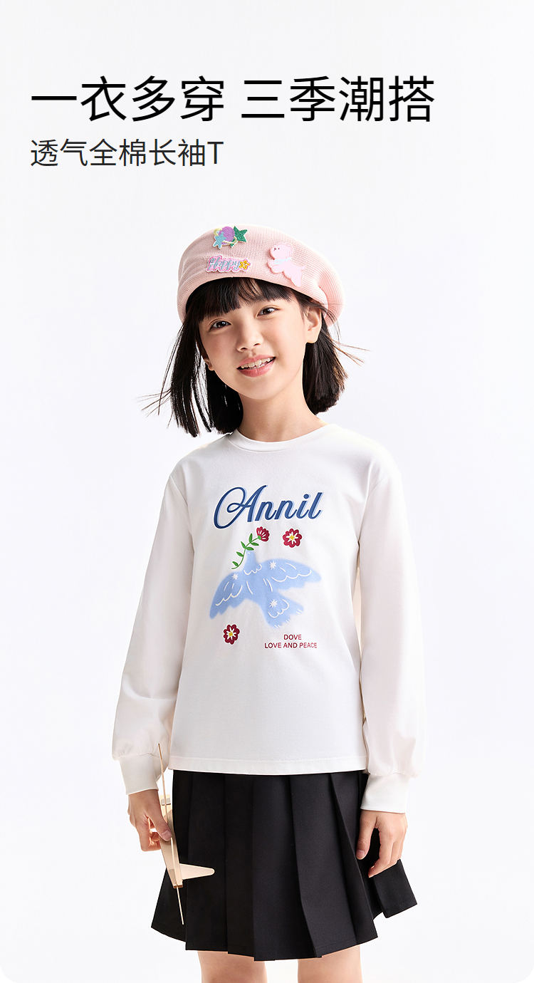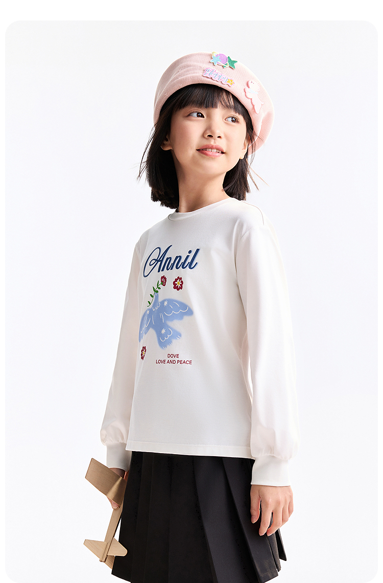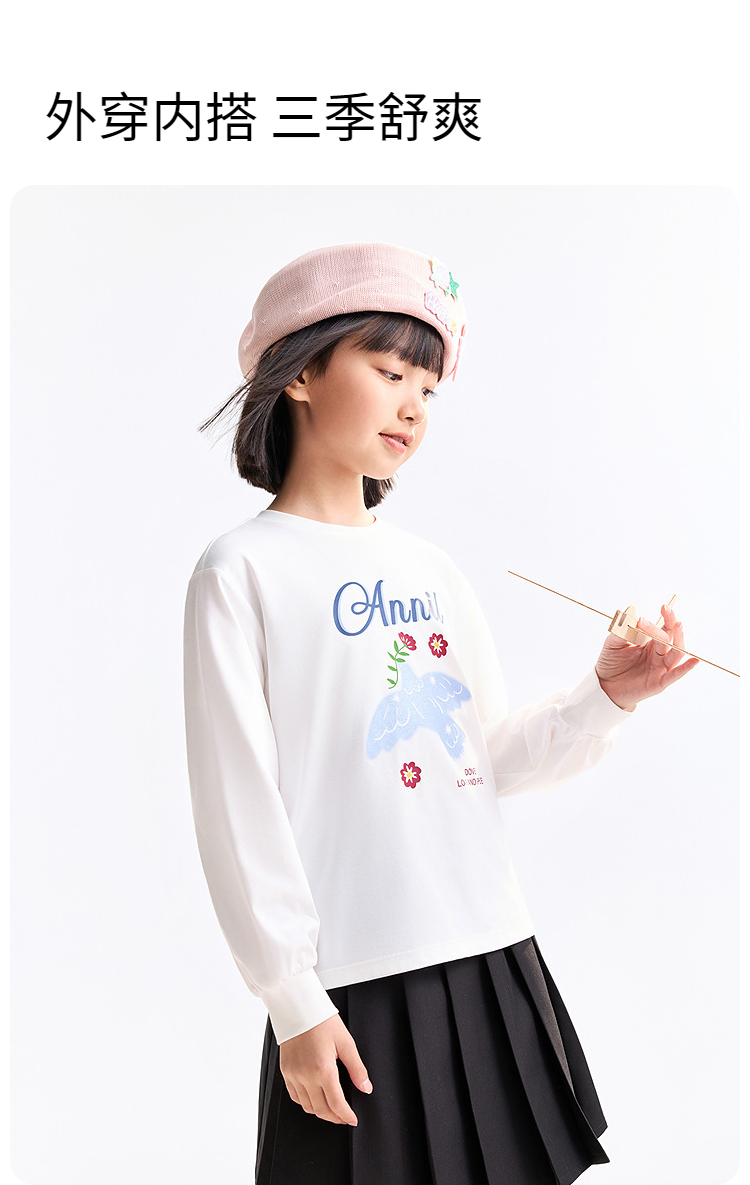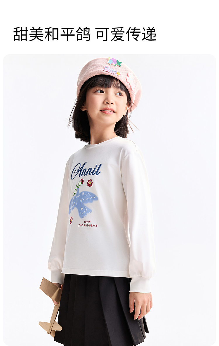 女童圆领长袖T恤春季新款安奈儿童装EG611740