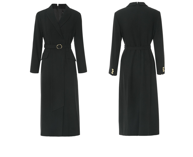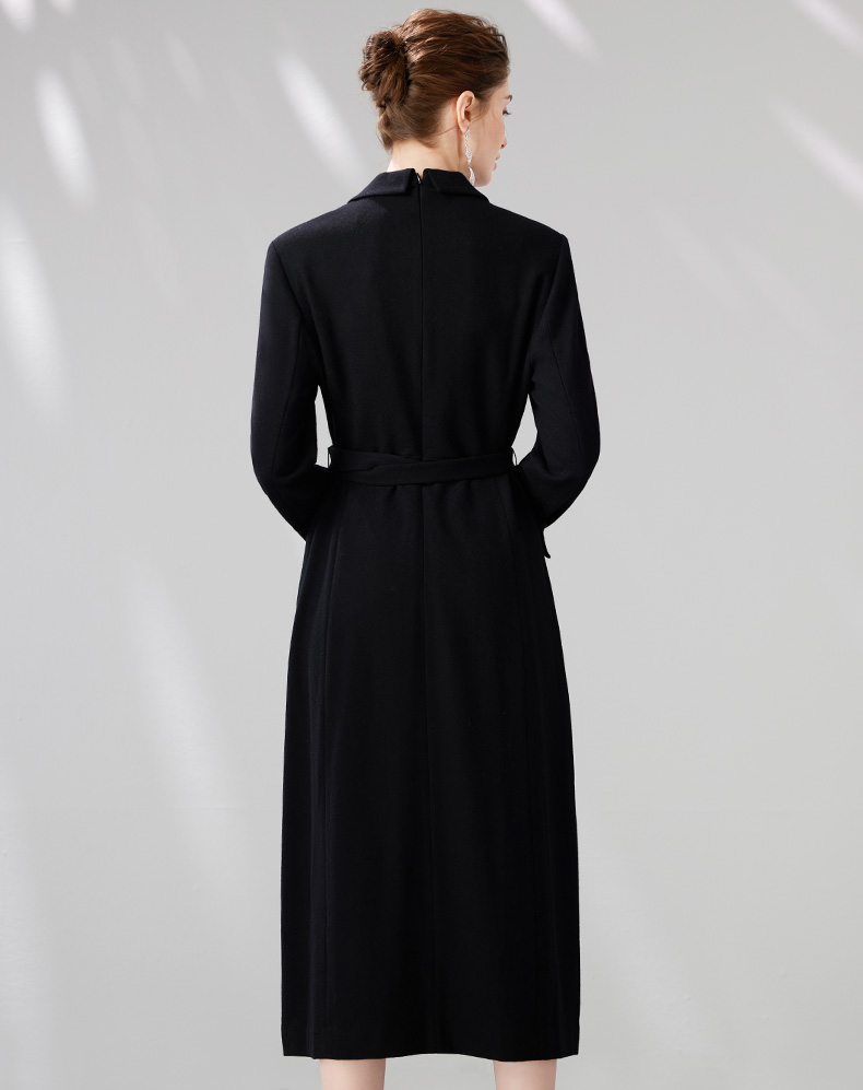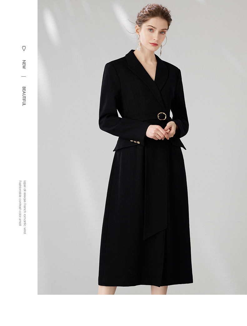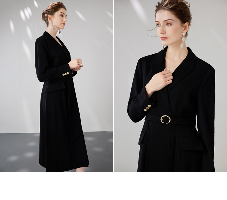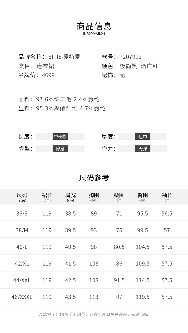 EITIE爱特爱冬新款大气优雅时尚通勤收腰显瘦黑色连衣裙7207912