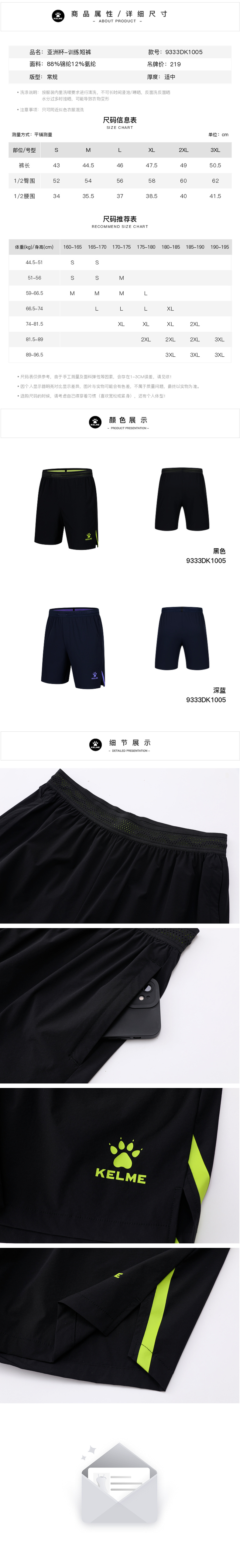 卡尔美2023新款男士训练短裤