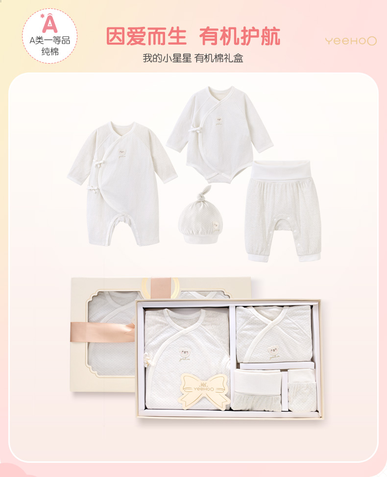 英氏婴儿衣服礼盒纯棉四件套婴儿礼品满月礼物百日礼品年礼包 YMLNJ02006A