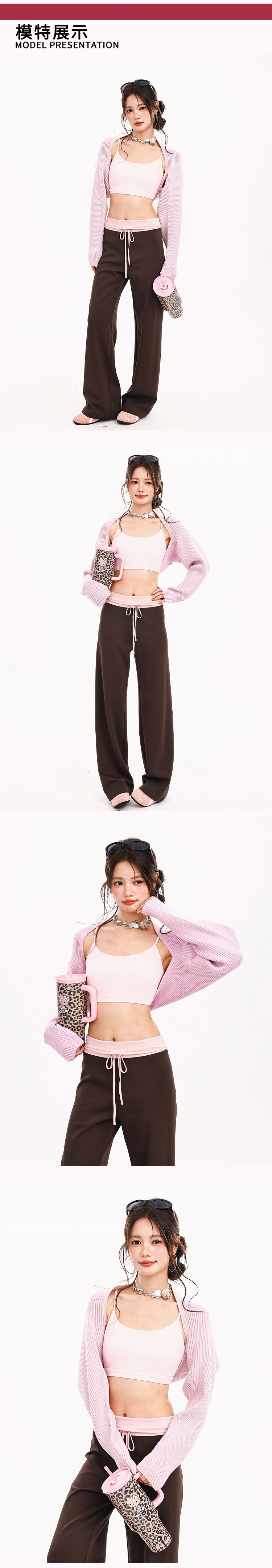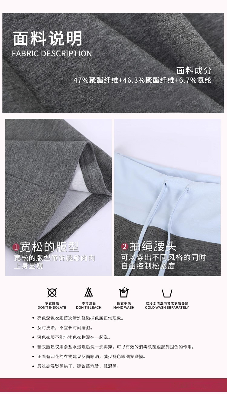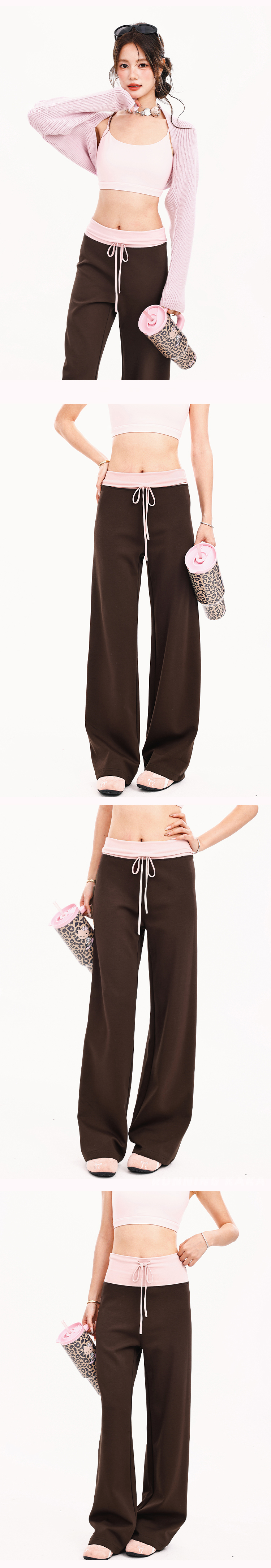 跃牌【禅语梵心】撞色宽边休闲裤系绳直筒瑜伽长裤女运动修身翘臀裤CK3548