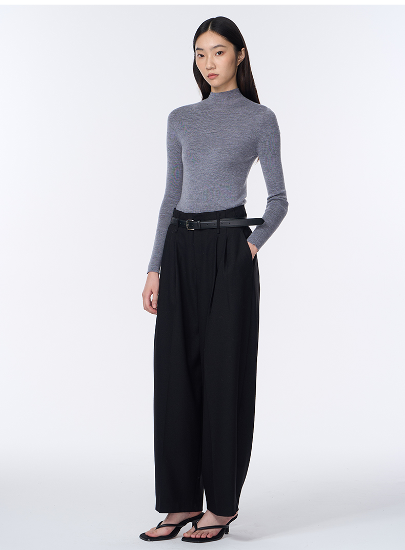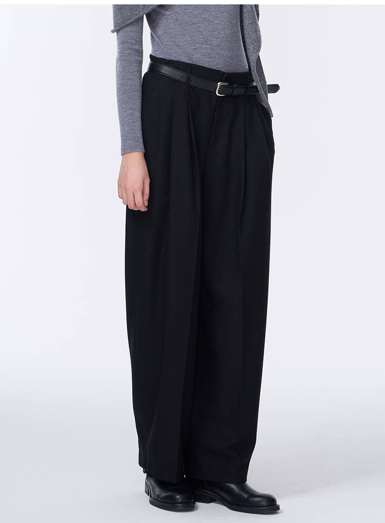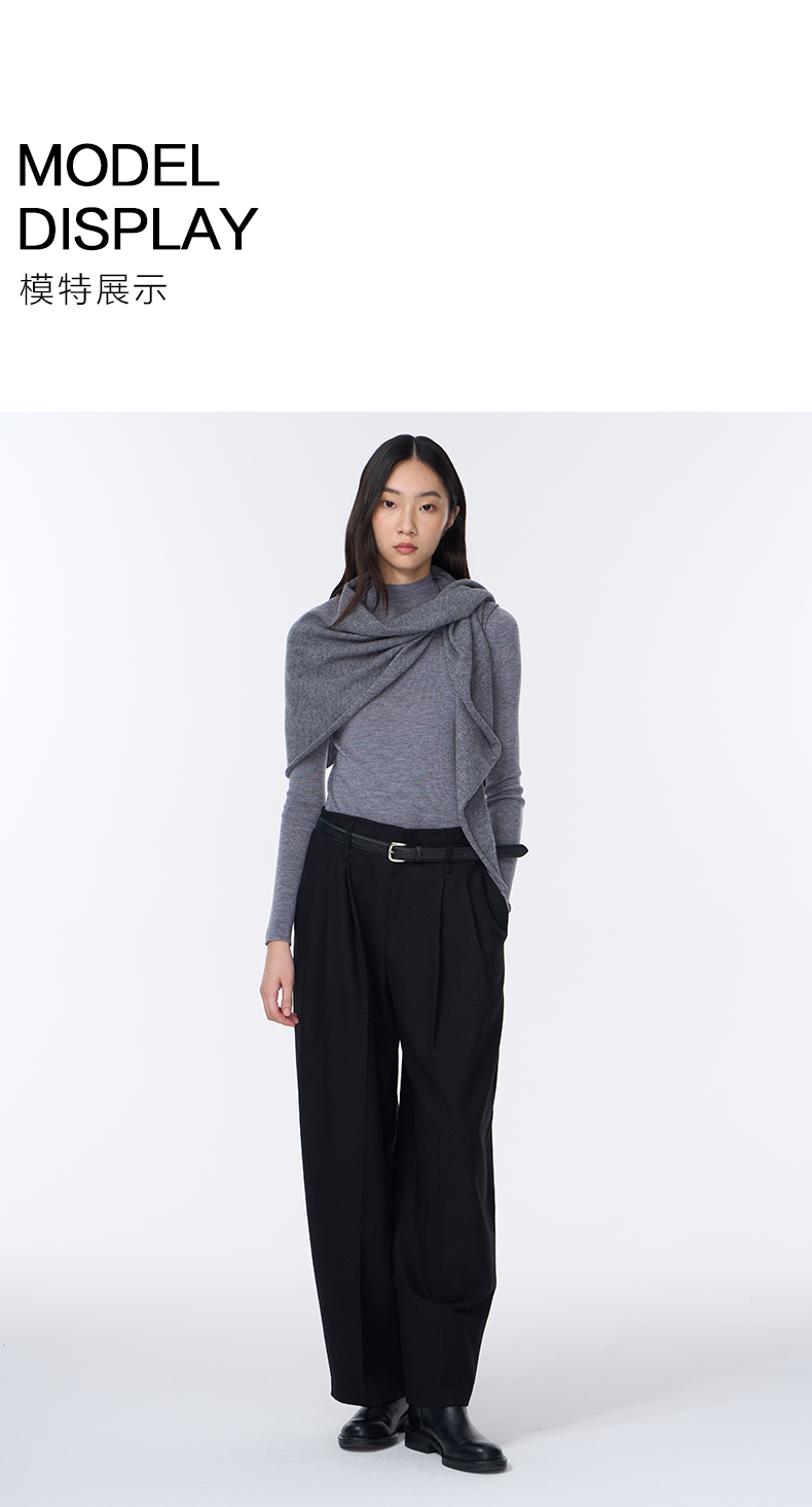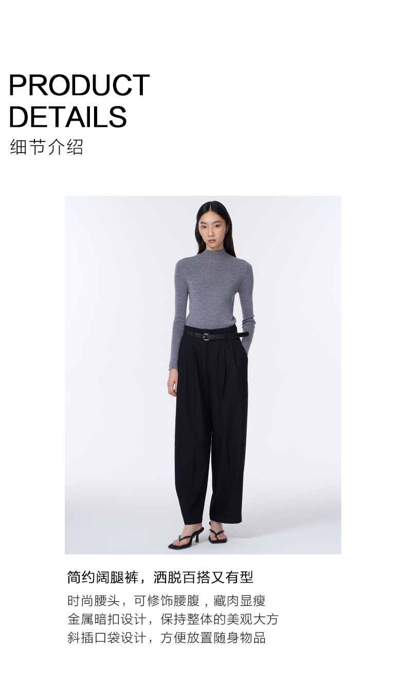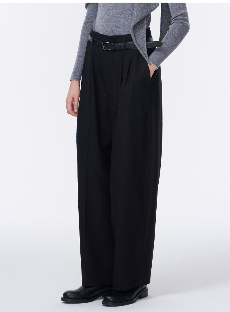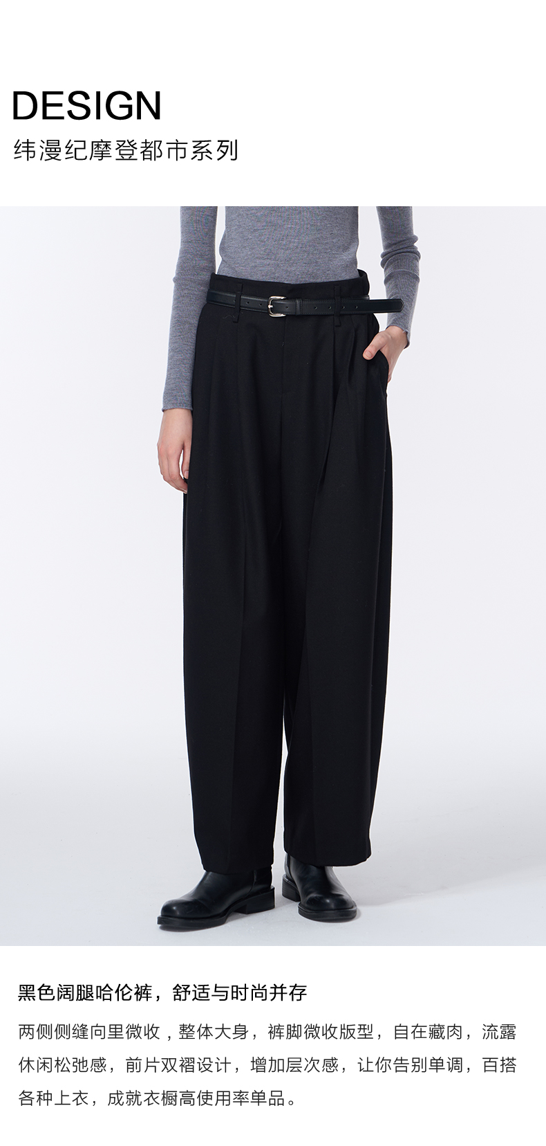 VIMAGE纬漫纪显瘦垂坠感休闲松弛直筒长裤黑色阔腿裤2025秋季新款V2405110