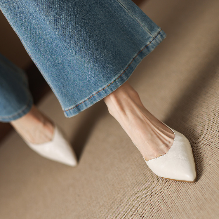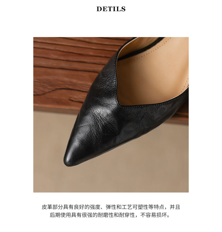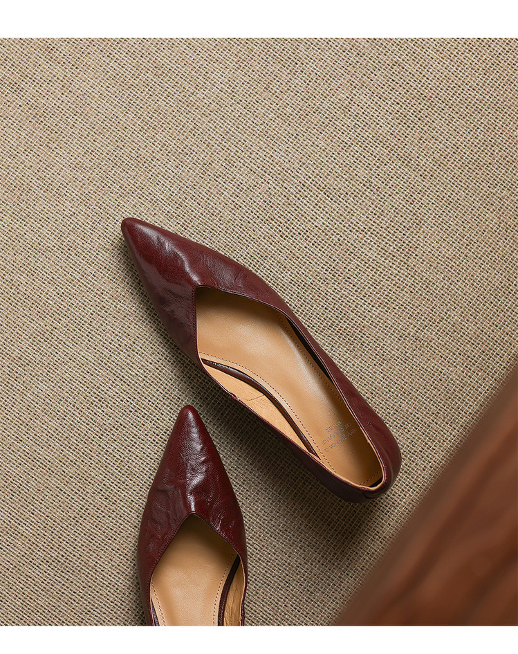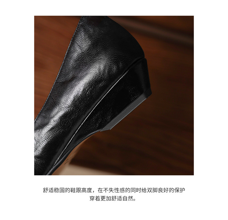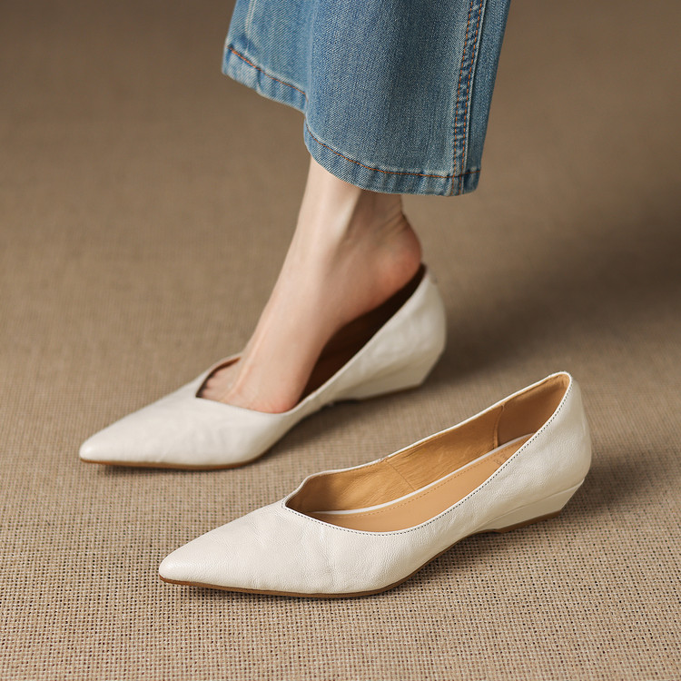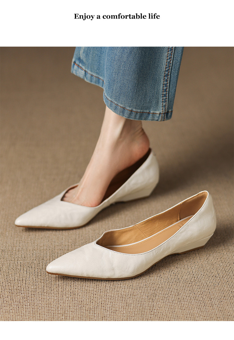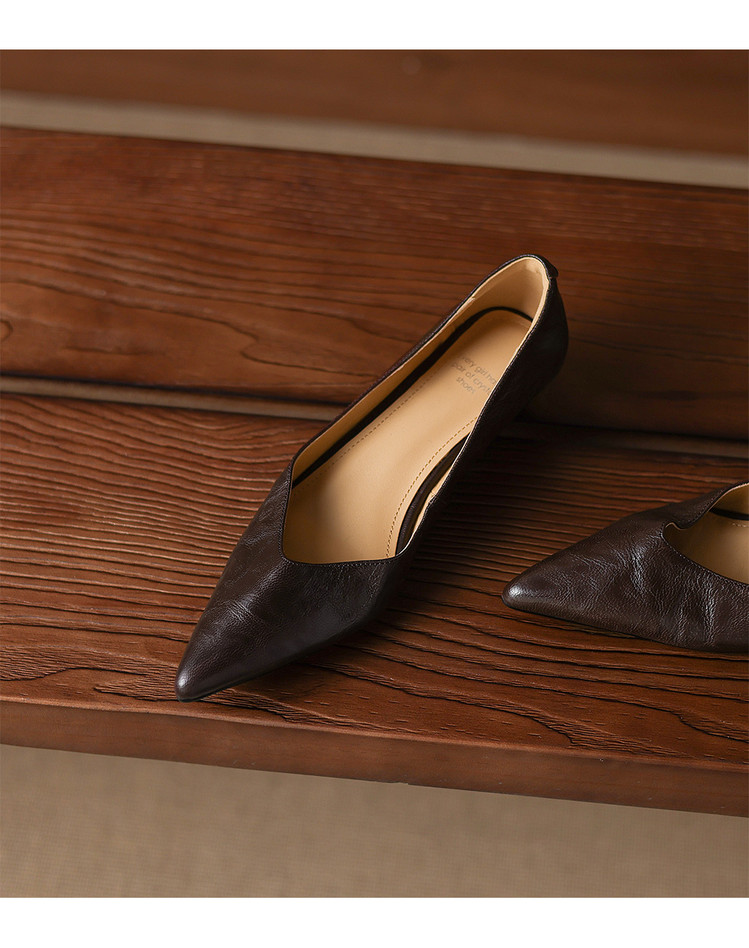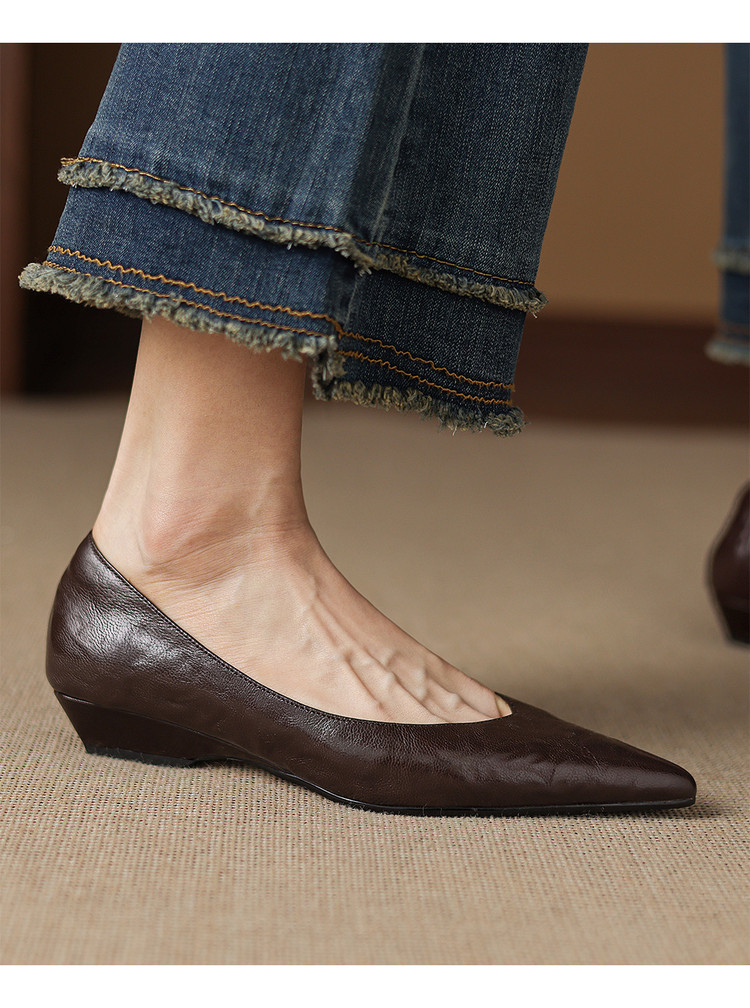 【预售5天】韩版优雅尖头小坡跟质感手抓羊皮通勤低跟全真皮浅口单鞋女HB&5566