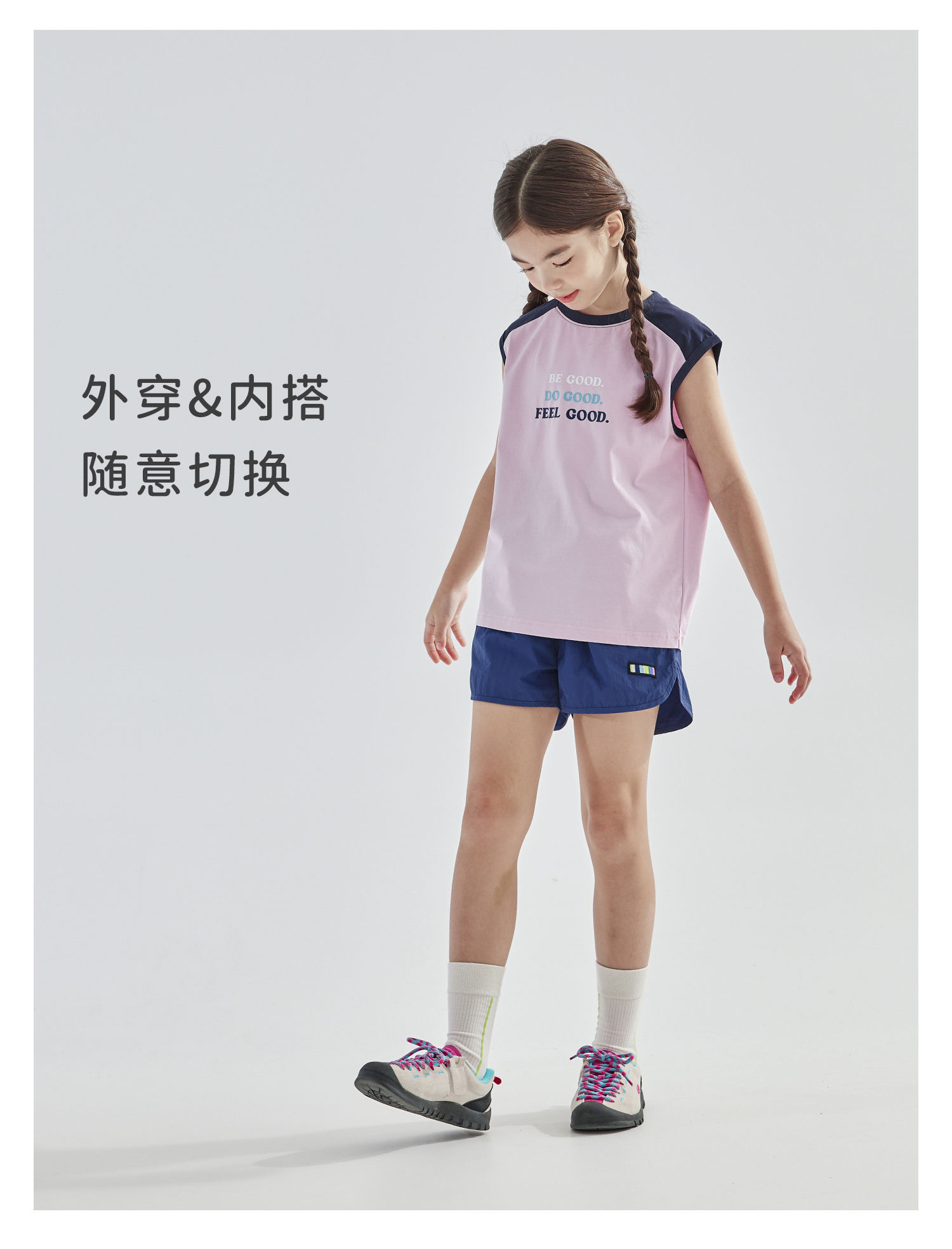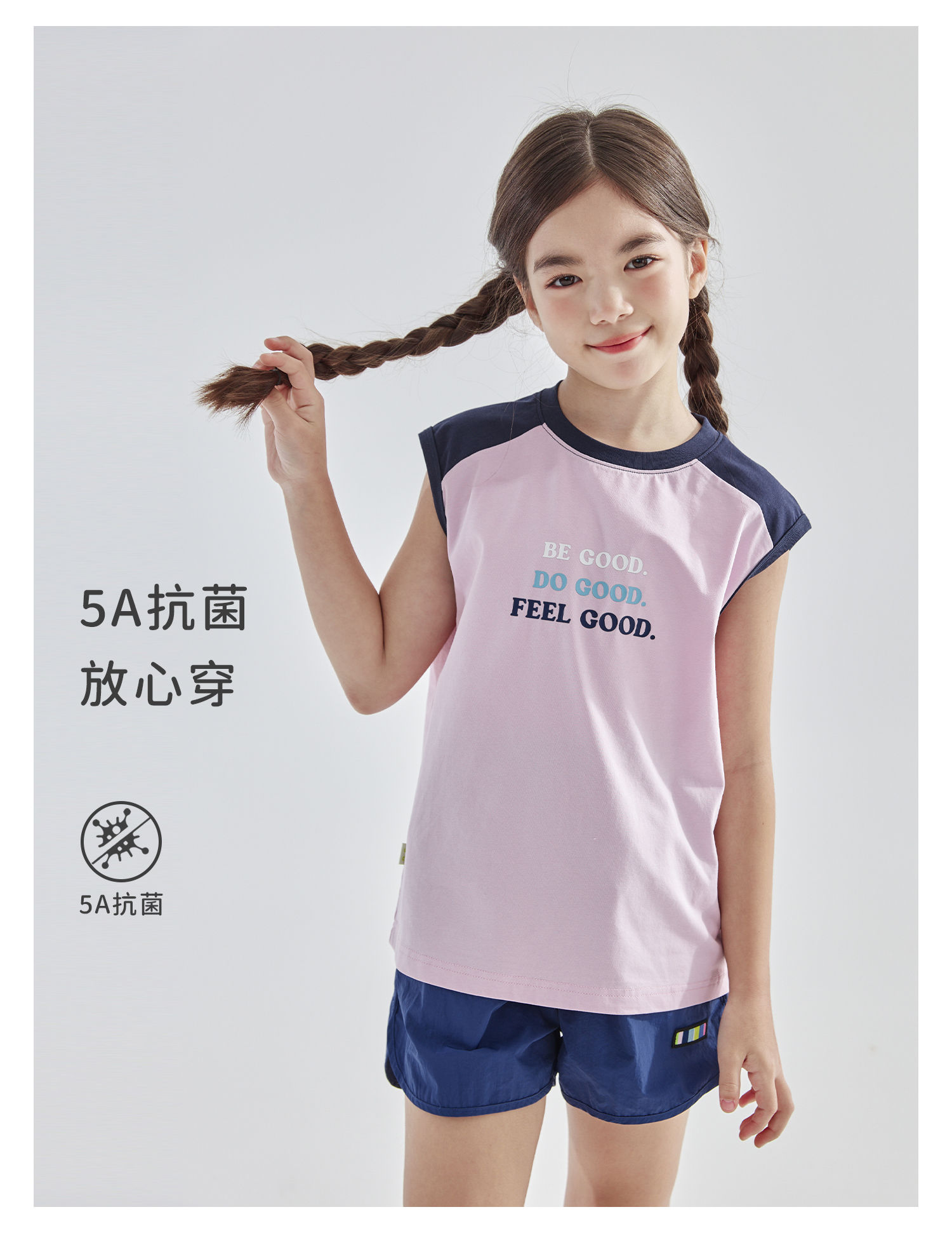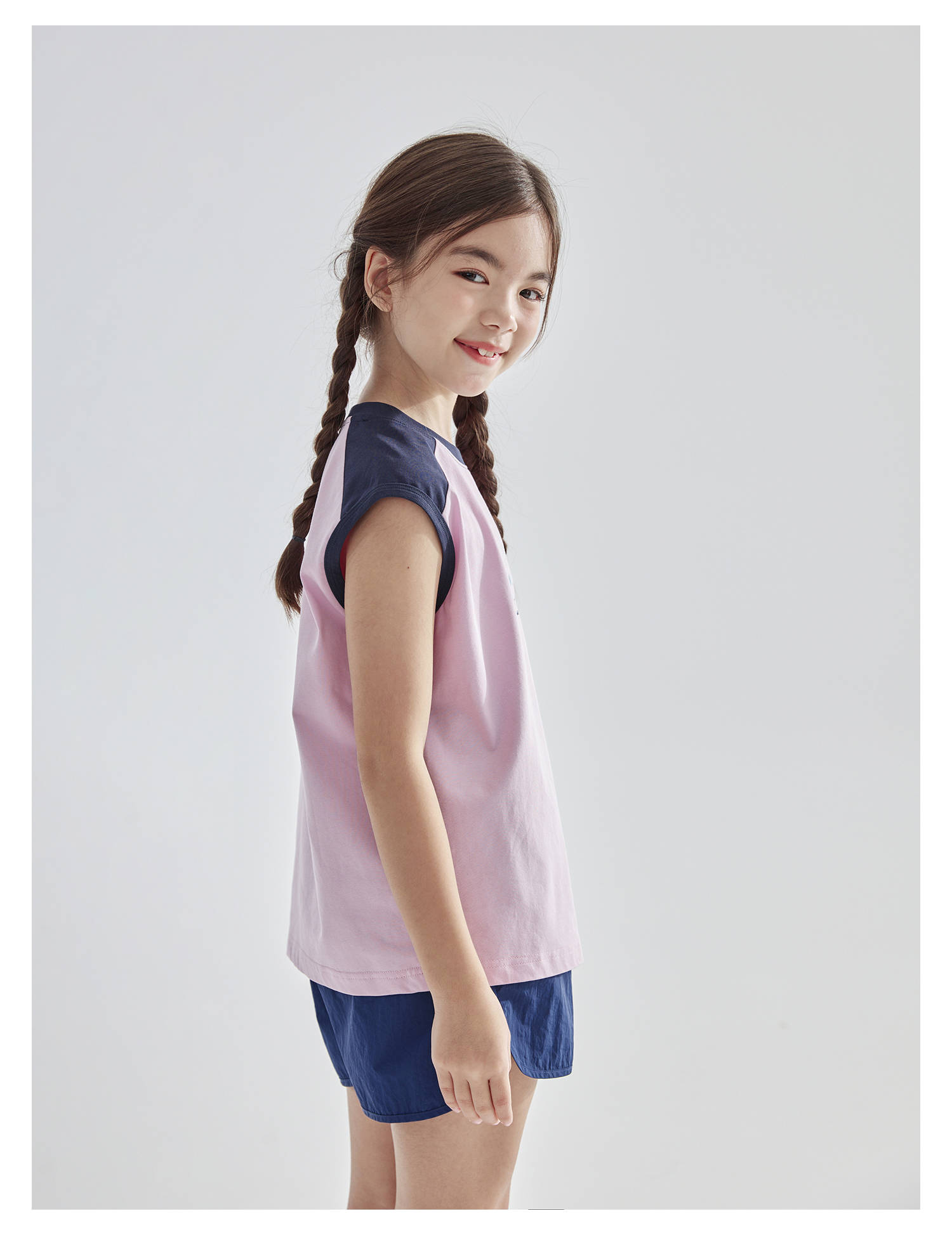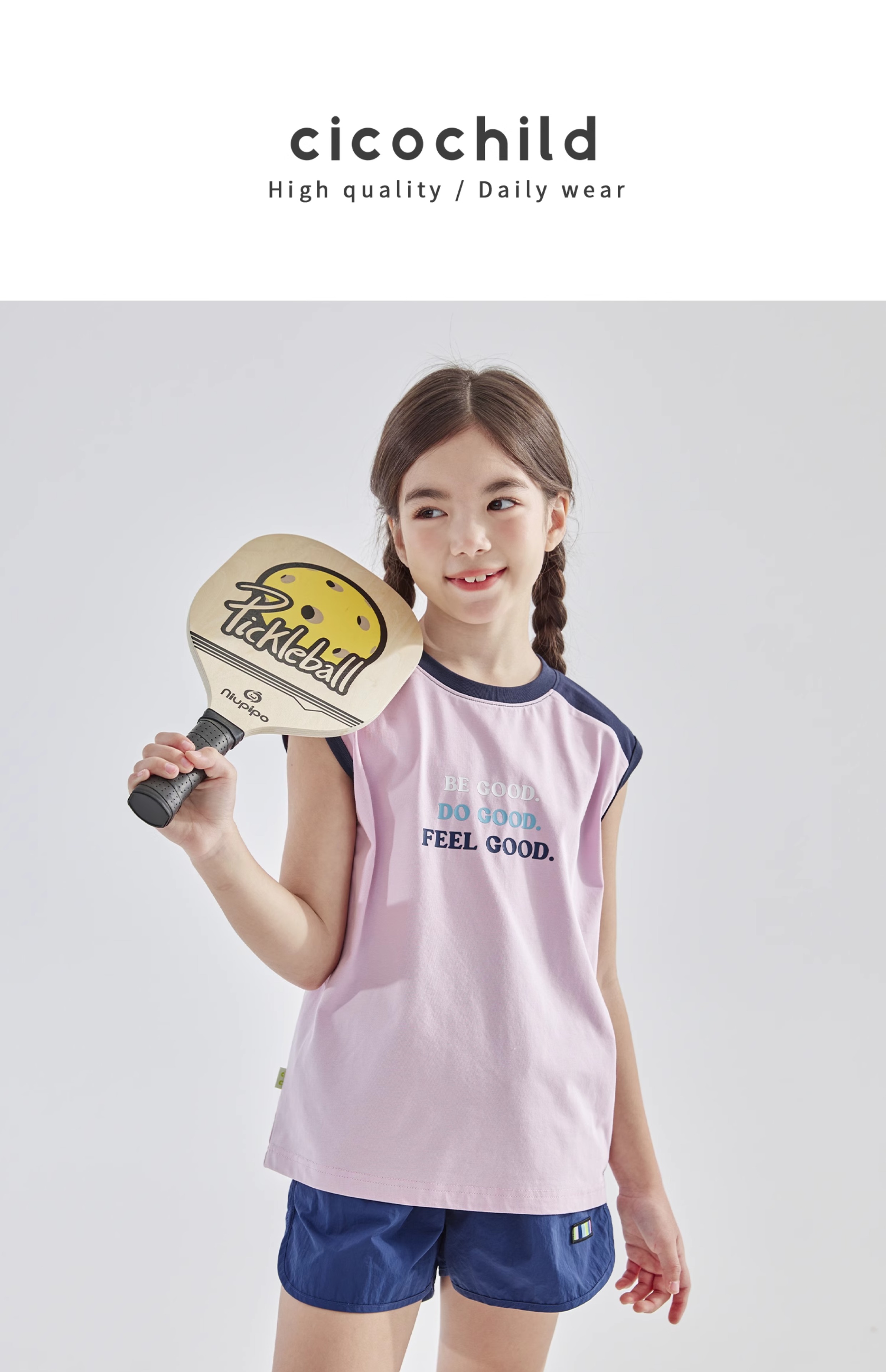 cicochild2025夏新款亲子中大女童凉感抗菌拼色无袖T恤
