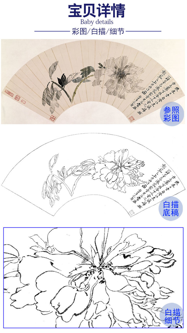 恽寿平没骨花鸟白描底稿-扇面小品-SP02