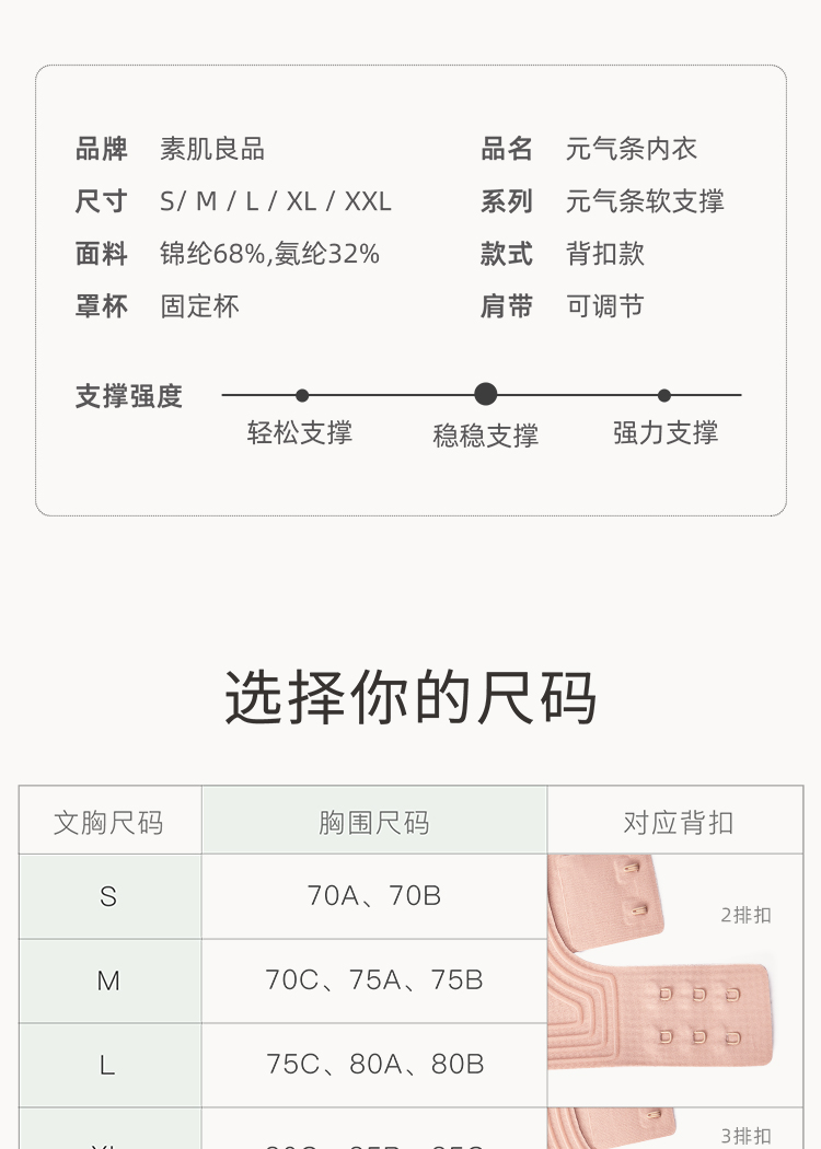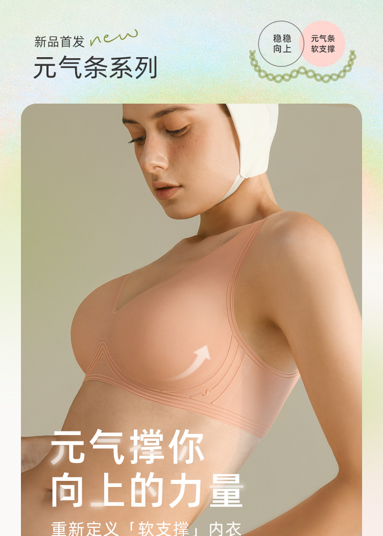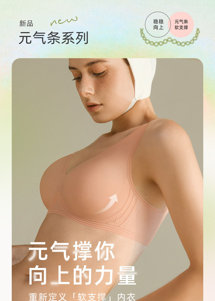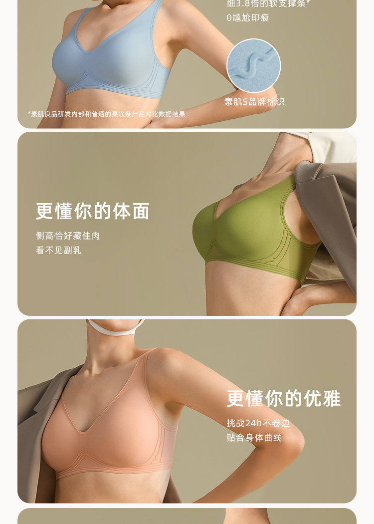 【E】素肌良品【元气果冻条】软支撑内衣-双重支撑力-侧收副乳-圆润胸型MX179