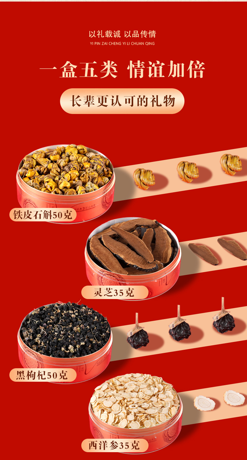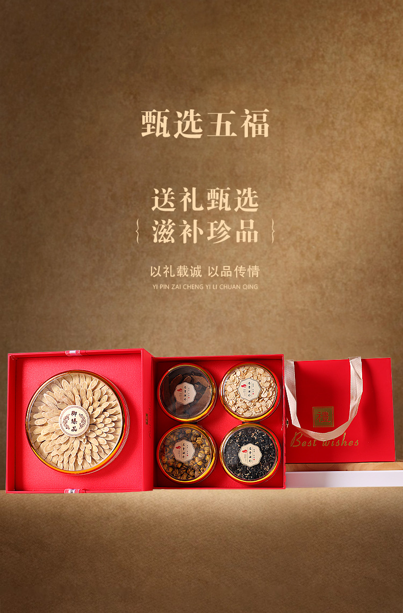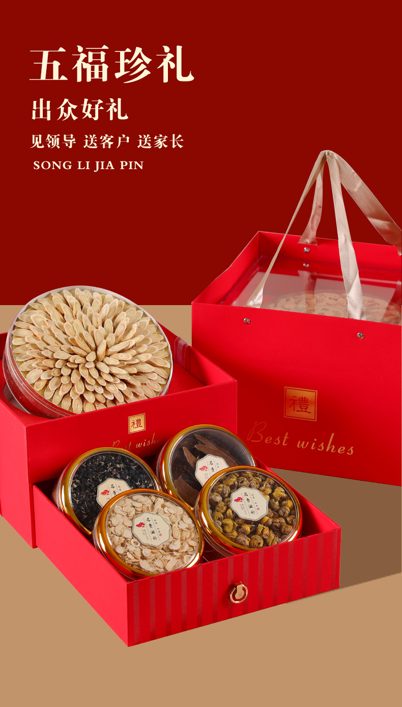 【甄选送礼珍品❗️五福珍礼滋补礼盒】五款滋补珍品,西洋参礼盒,西洋参片,鹿茸,红参,石斛组合送礼滋补品父母送长辈补品,营养品滋补品礼品西洋参片L