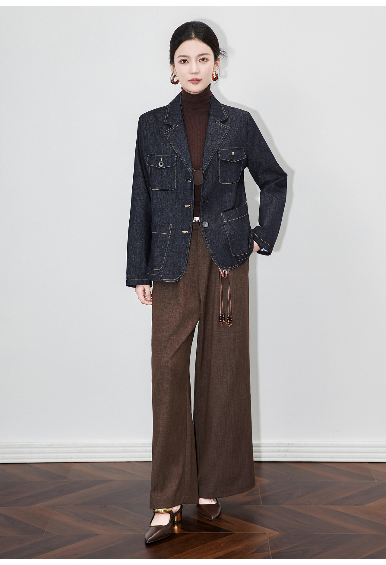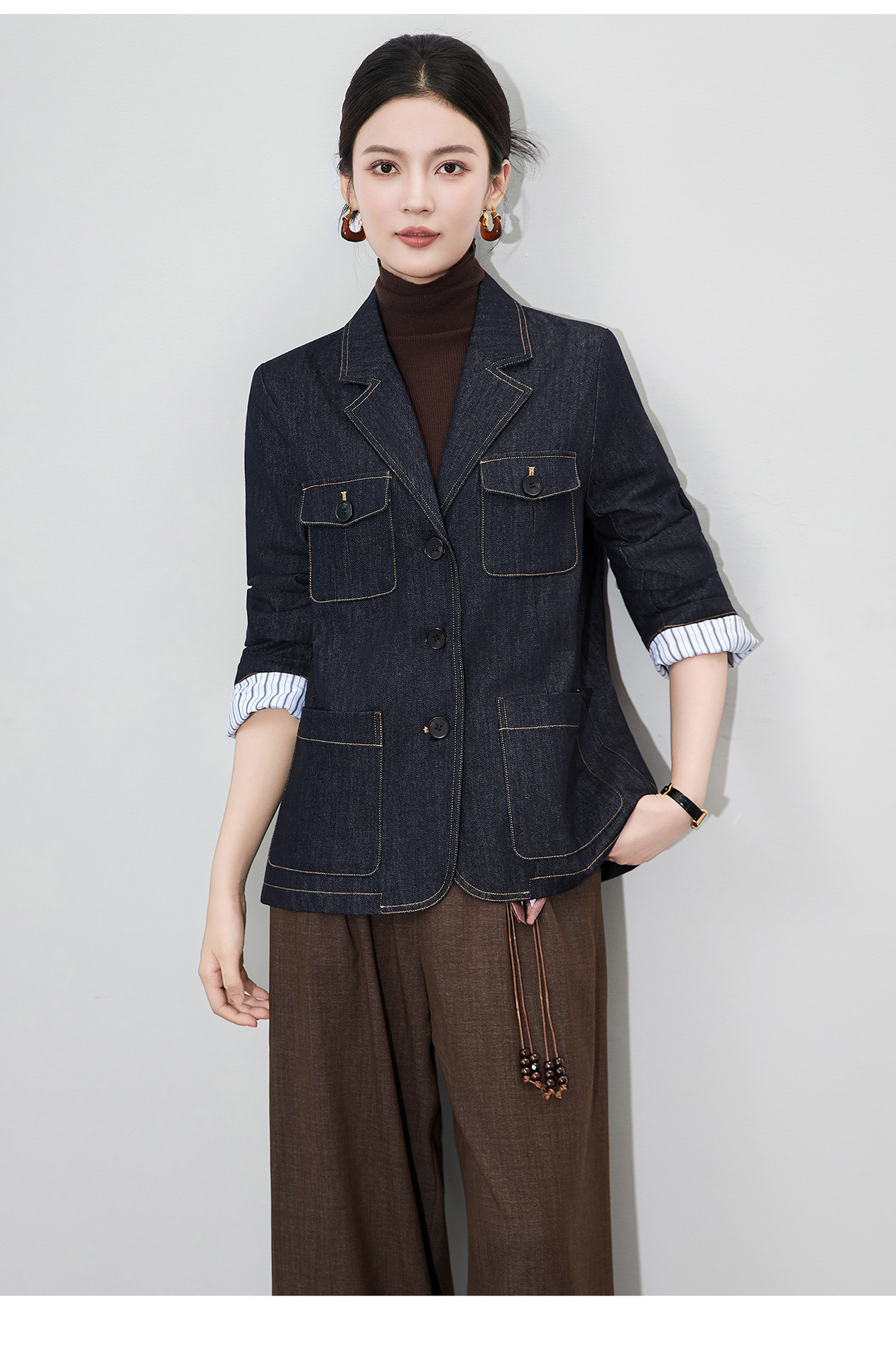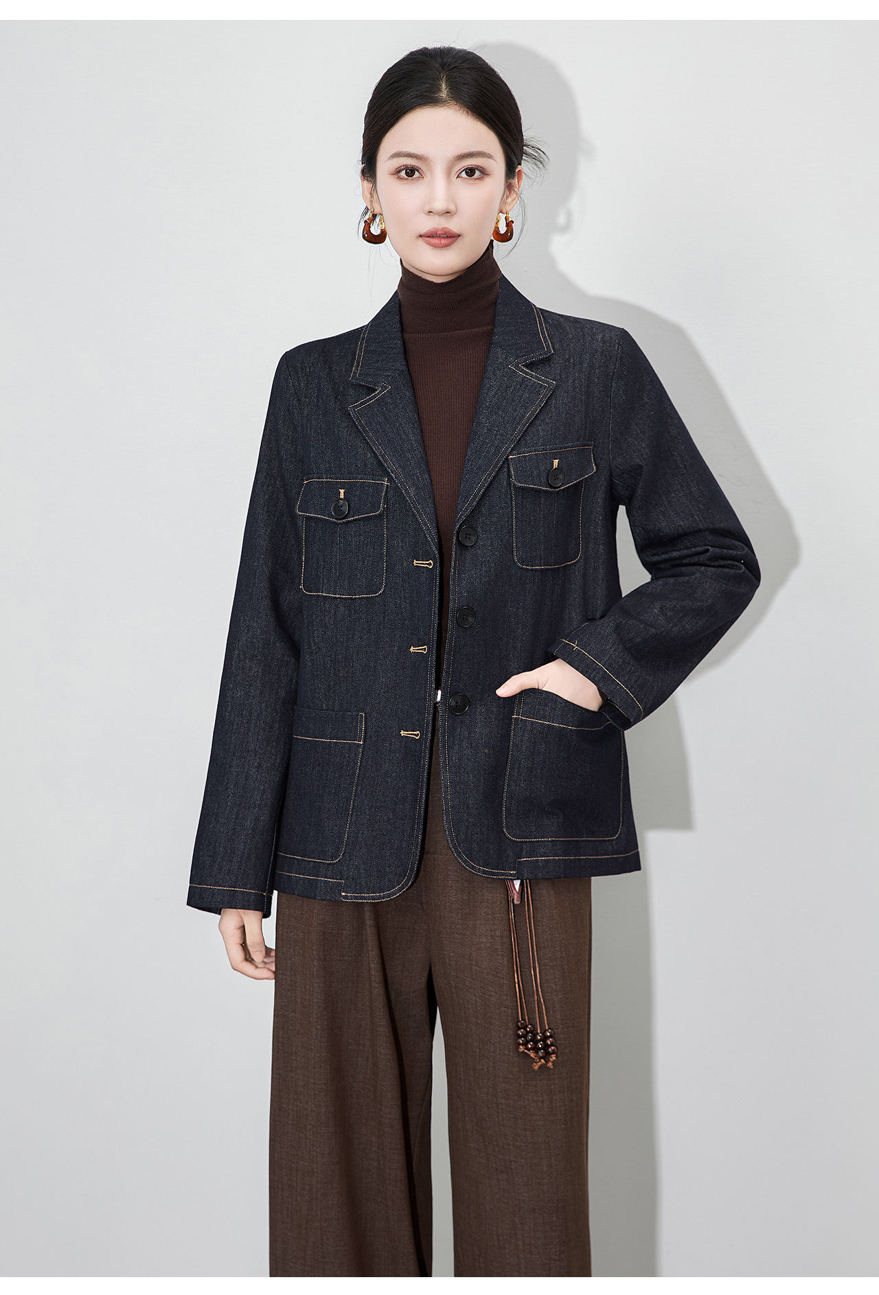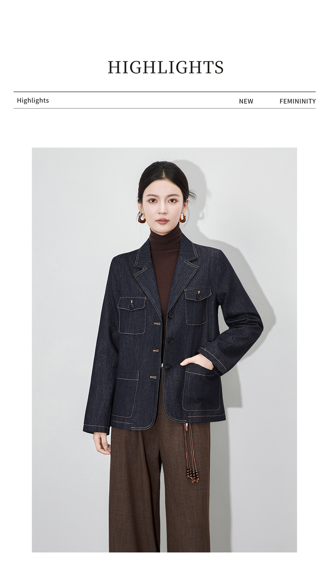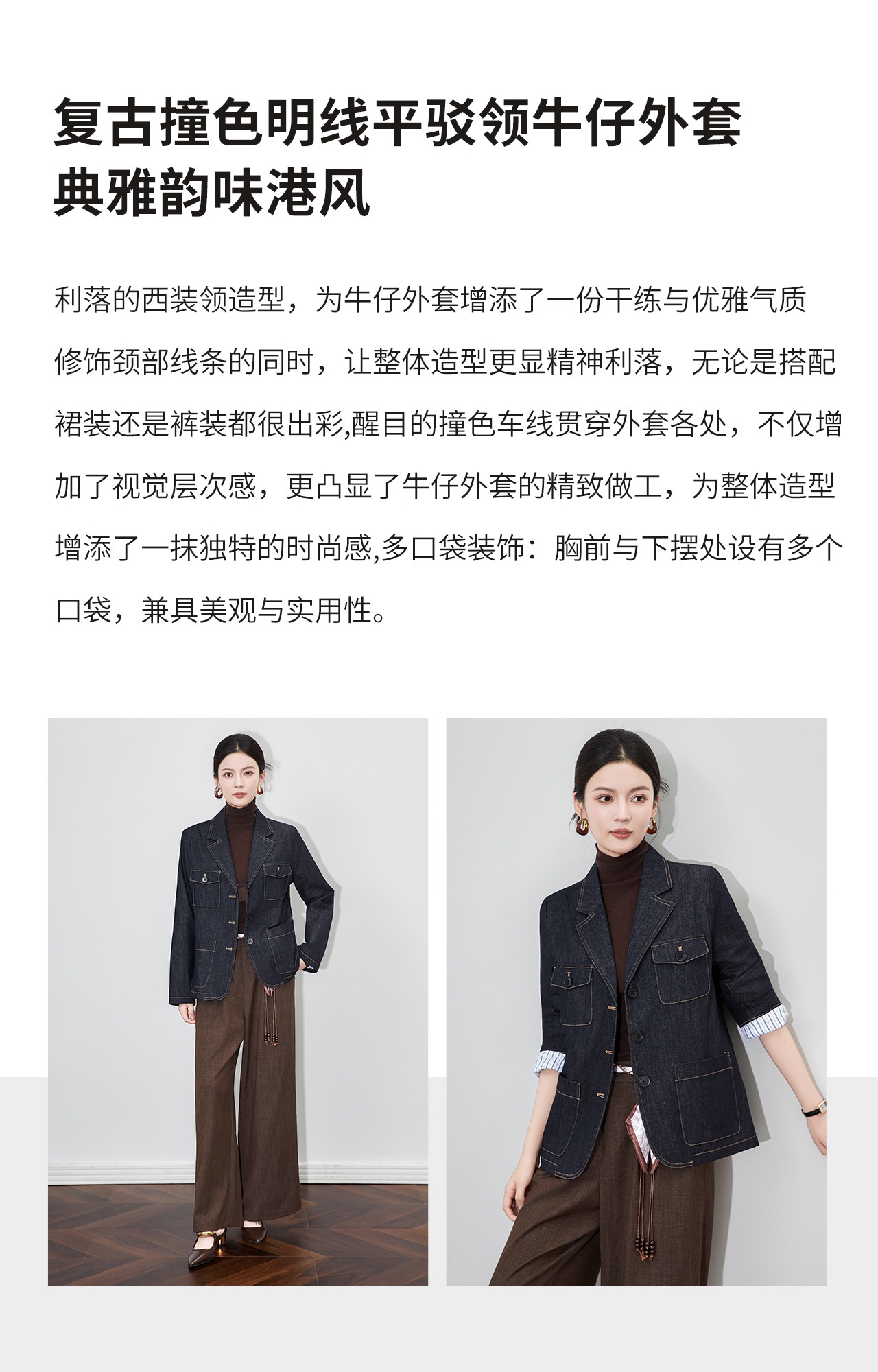 「高货wl」全新升级【铂金会员367/天猫499/差价132】(53342)洛诗琳法式复古西装型牛仔外套2025秋季宽松通勤气质西服