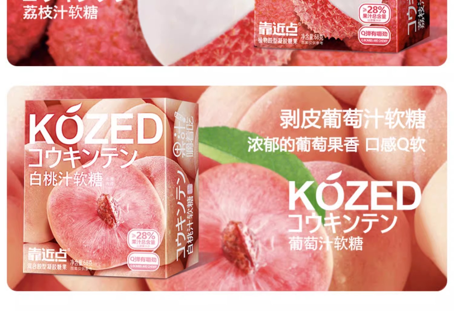 【敲好吃!可剥皮】网红爆款零食剥皮软糖果汁糖果芒果味软糖多口味水果口味软糖盒装。ja