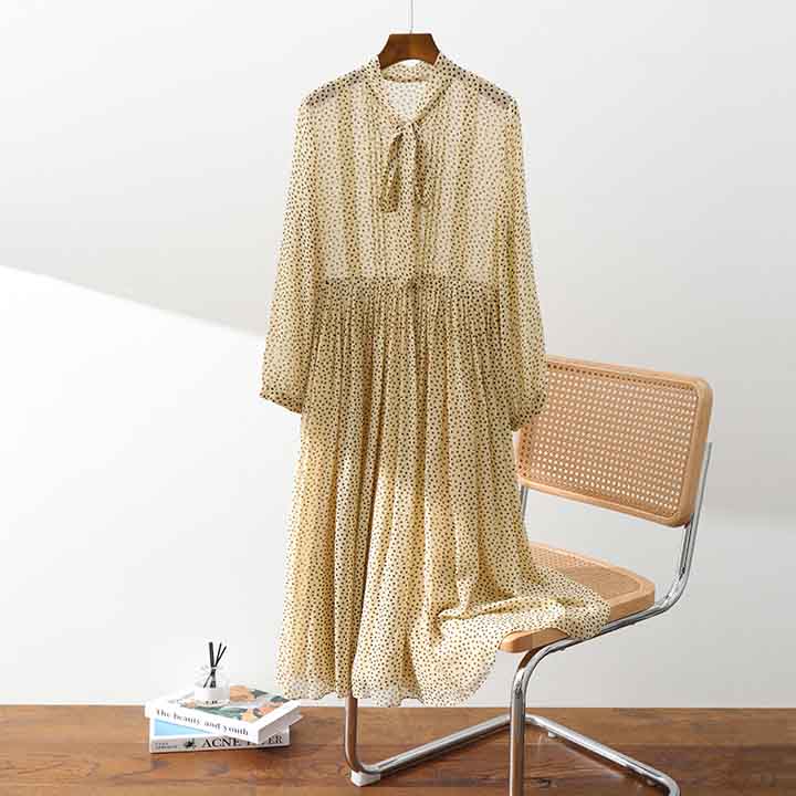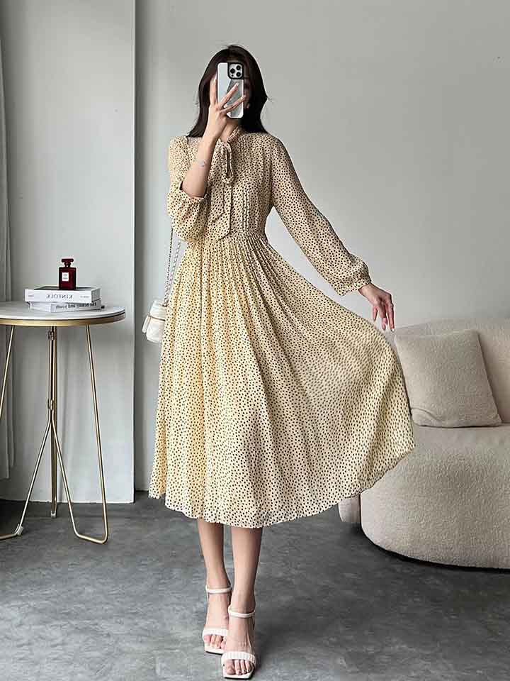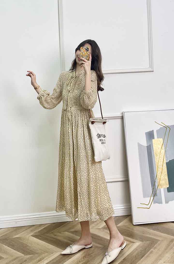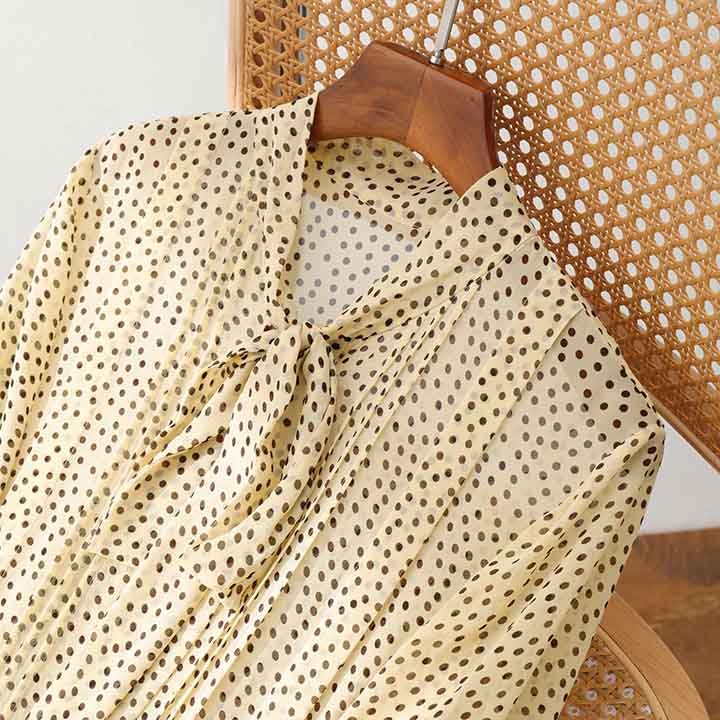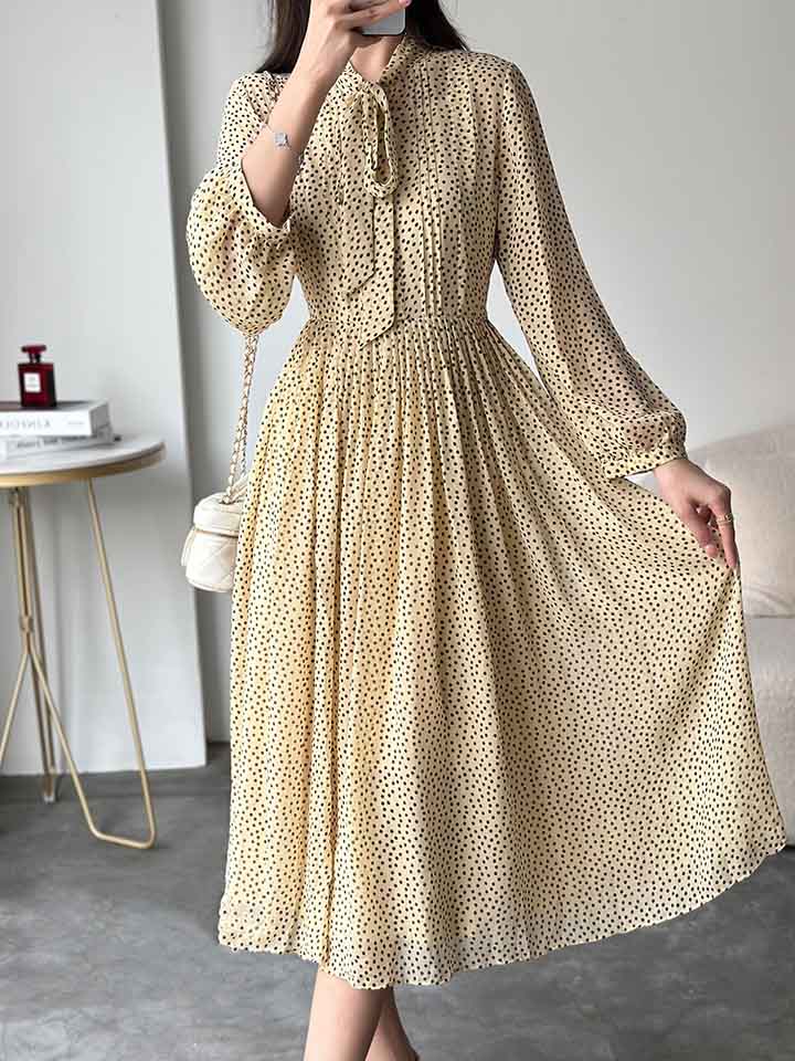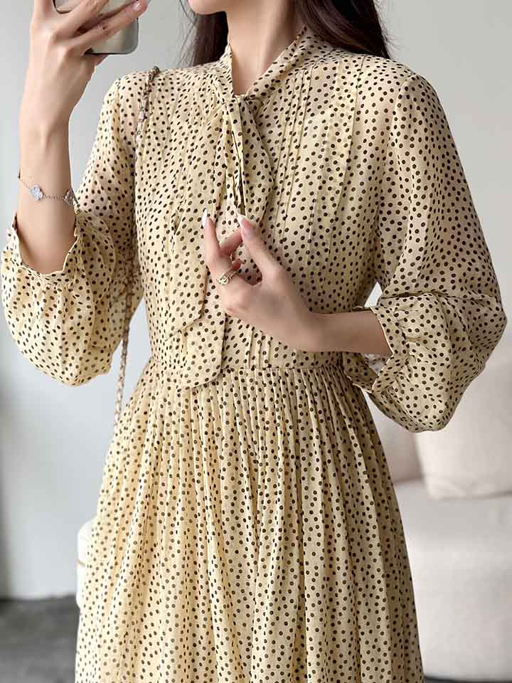 顺丰包邮洛诗琳40341春季新款气质波点印花飘带连衣裙女2998