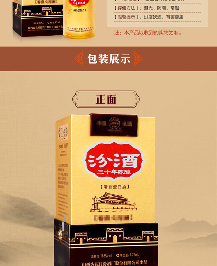 山西汾酒53°汾酒30年陈酿珍藏475ml 2009年份孤酒 限量珍藏 收藏汾酒
