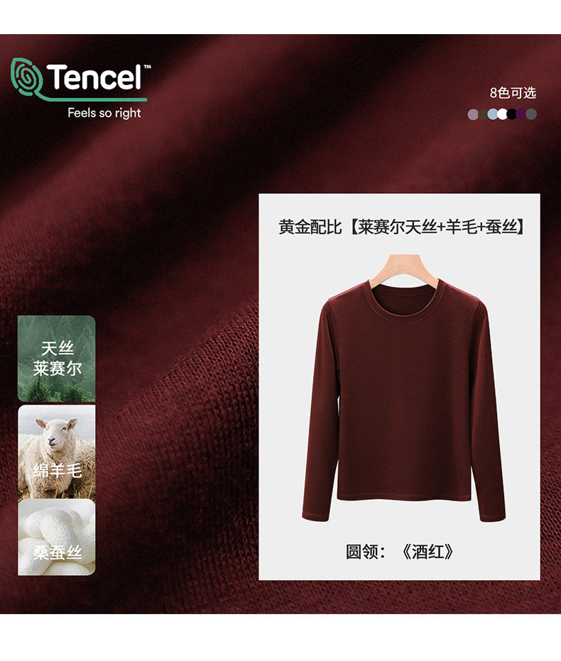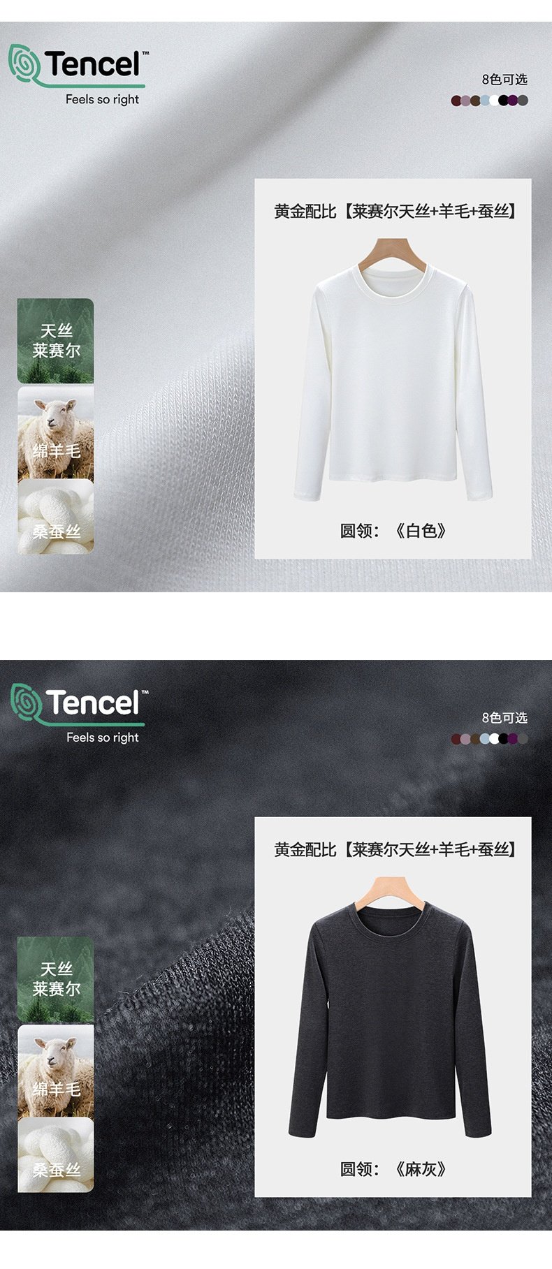 「自j」全新升级【铂金会员128/天猫169/差价41】(04016)洛诗琳天丝羊毛打底衫2026春季新款纯色圆领长袖T恤女