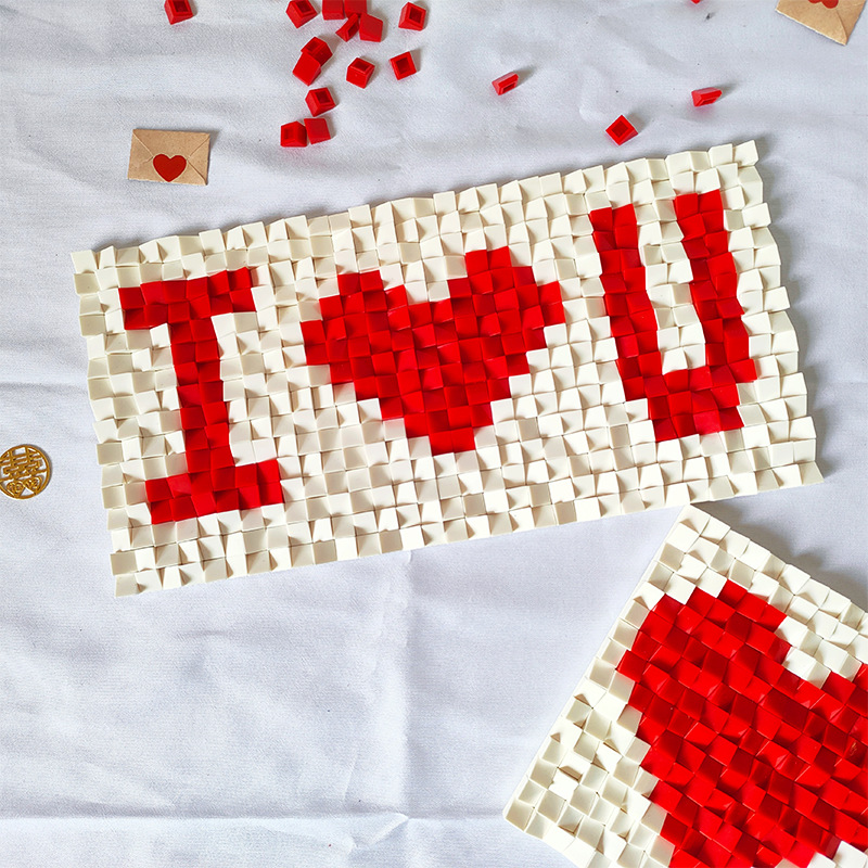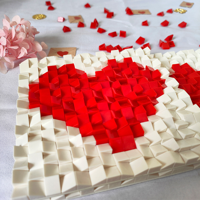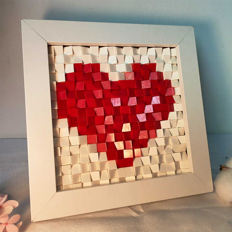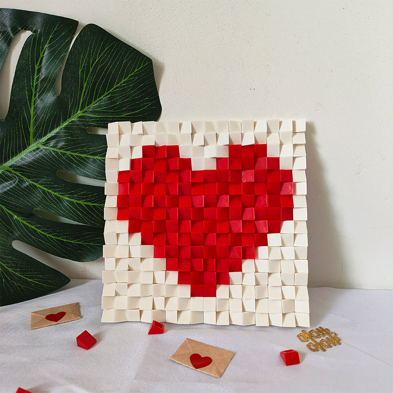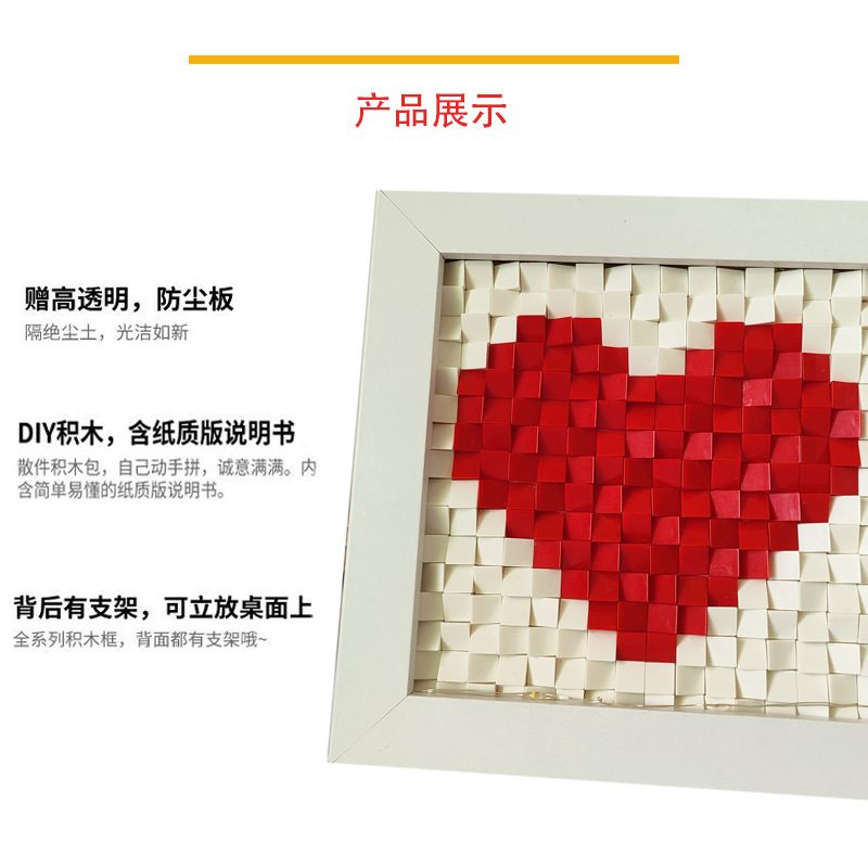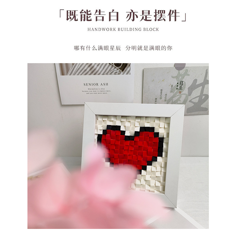 情人节好礼!【爱心积木,送你一份浪漫手工礼~】律动之爱心像素 创意DIY积木 立体拼图相框 桌面摆件 情人节表白礼物-QQ
