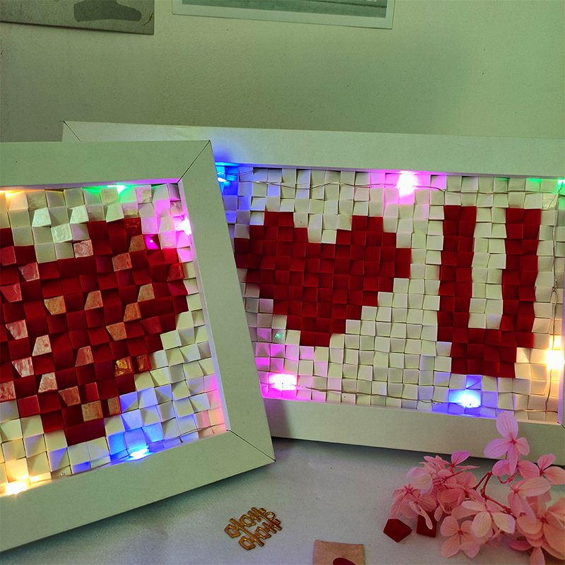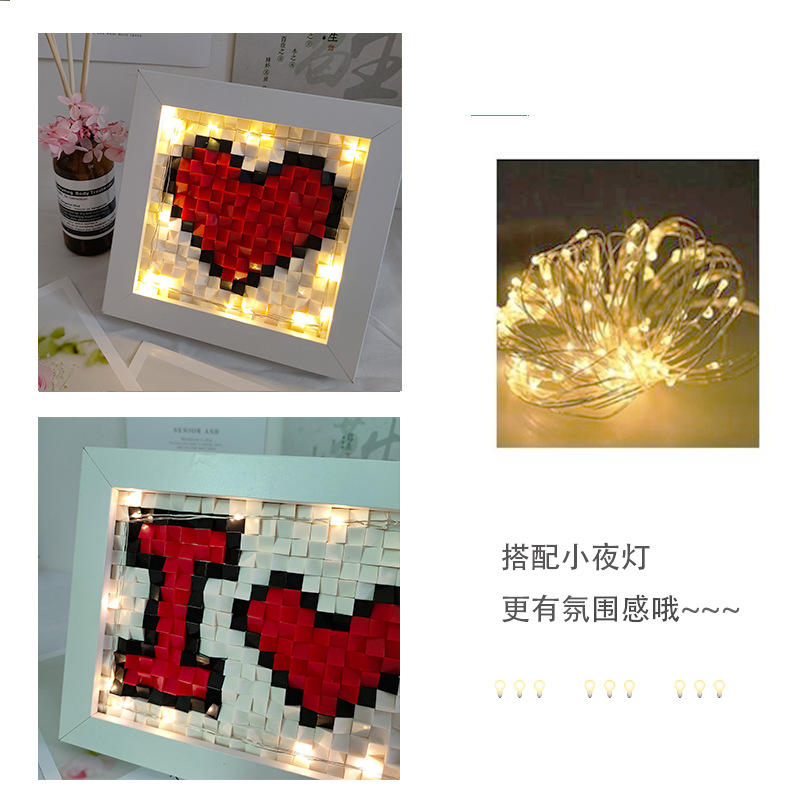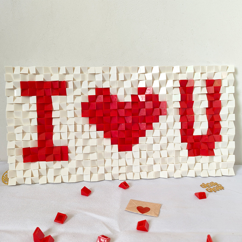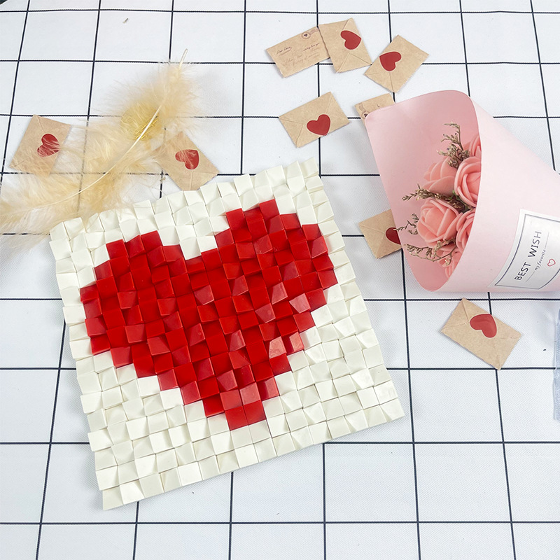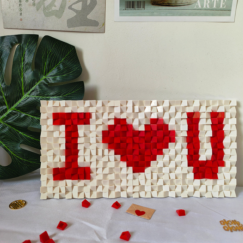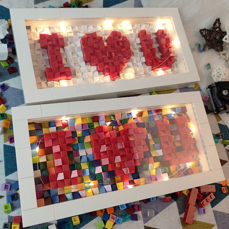 情人节好礼!【爱心积木,送你一份浪漫手工礼~】律动之爱心像素 创意DIY积木 立体拼图相框 桌面摆件 情人节表白礼物-QQ