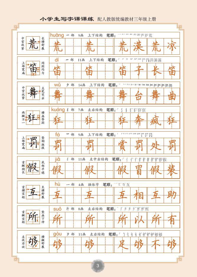 小学生写字课课练:三年级上册(配2018人教版统编教材,视频升级版)同步字帖,配合新修订的小学语文人教版统编教材三年级上册使用,一课一练,识字写字结合,突出读写重点,有利于学习者提高书写水平和语文综合能力。