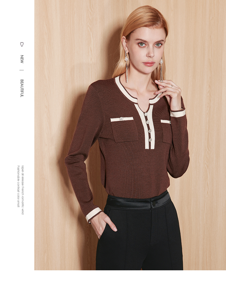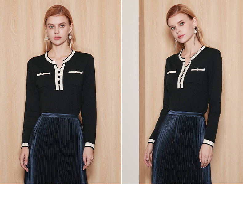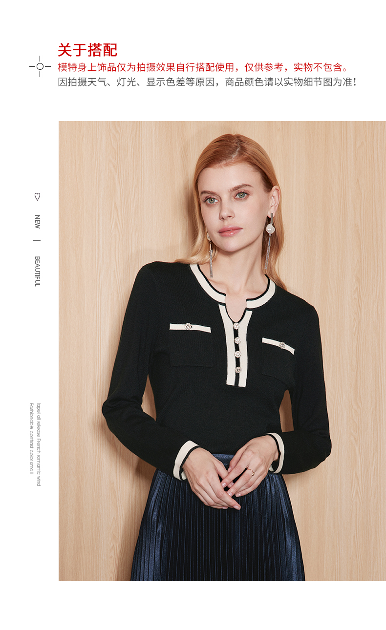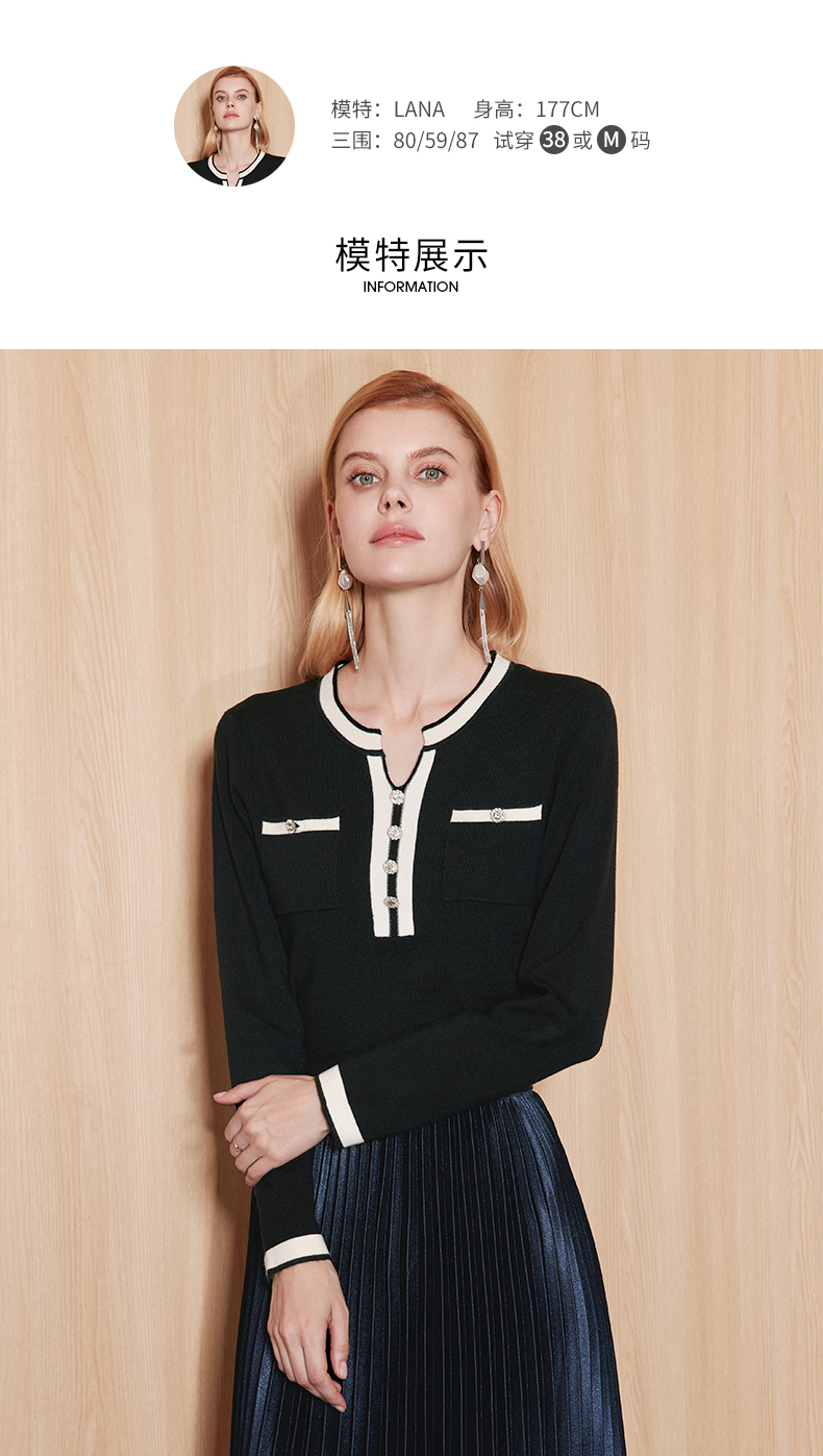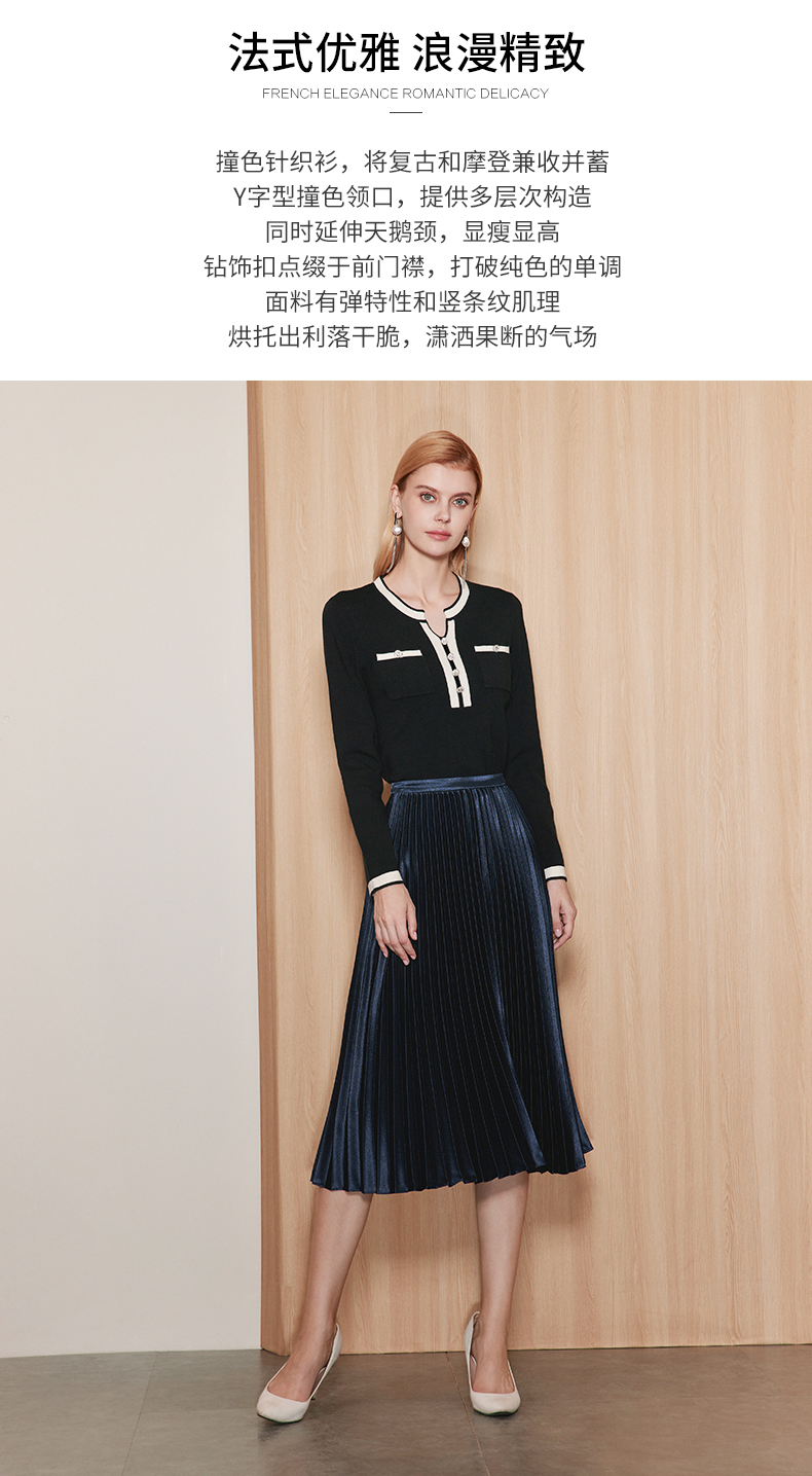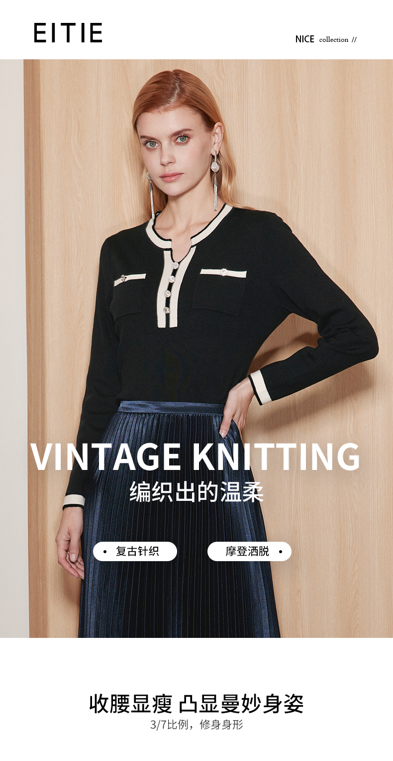 EITIE爱特爱秋季新款时尚简约修身显瘦套头打底毛针织衫7101807