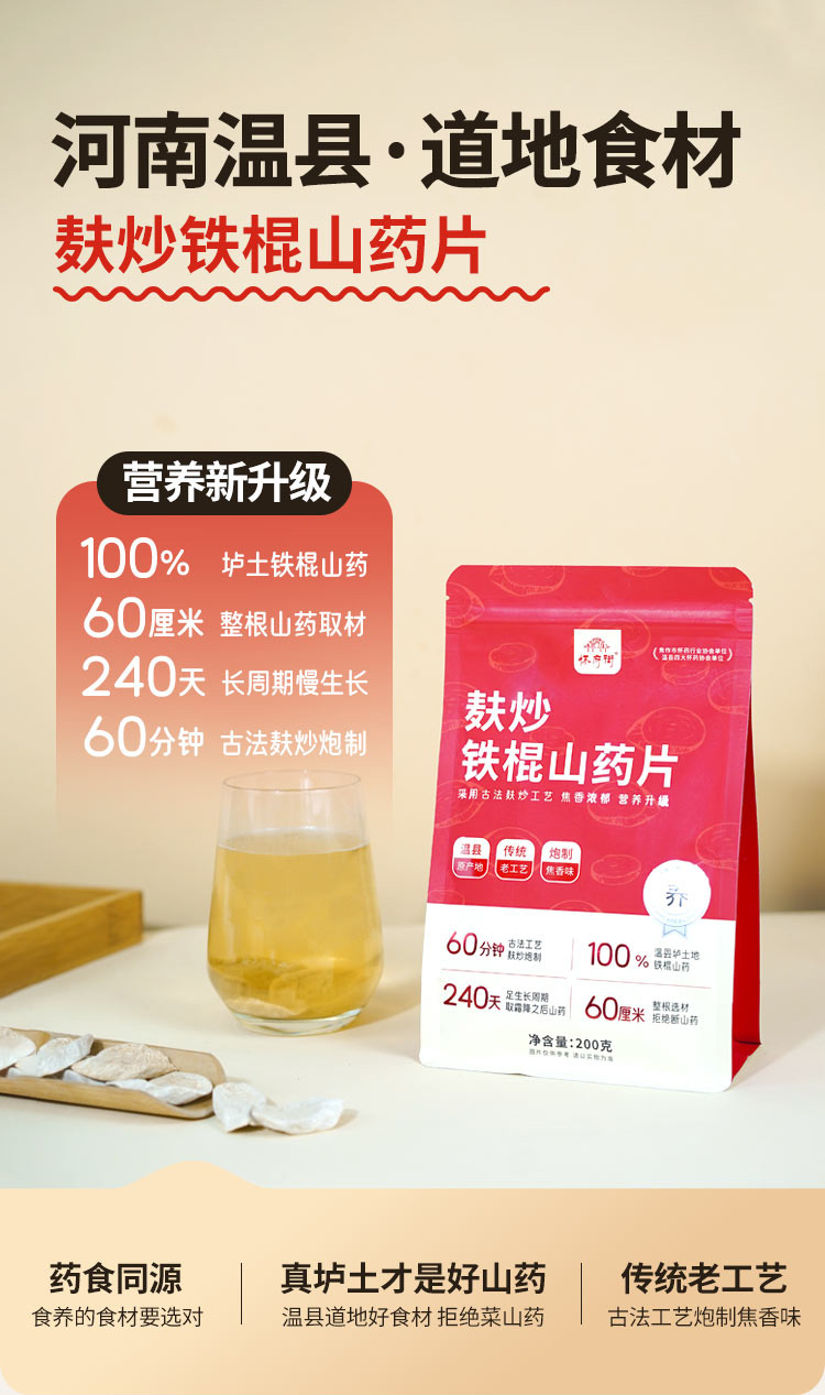 麸炒铁棍山药片 焦香浓郁 片片醇香 200克/袋