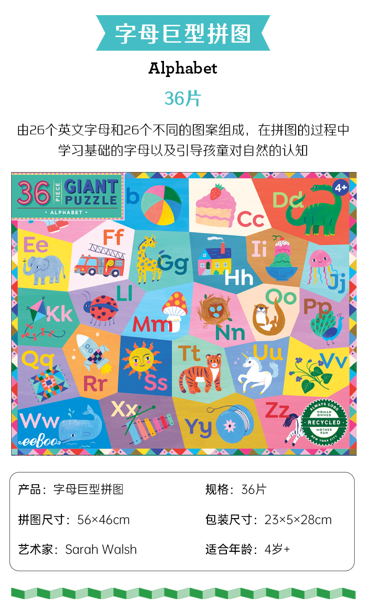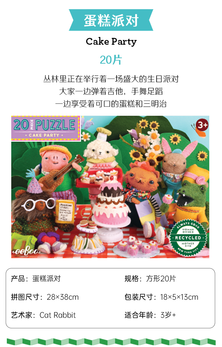 20片/36片48片/64片/100片 2岁+ 培养认知 艺术家插画拼图 儿童拼图 美国eeBoo