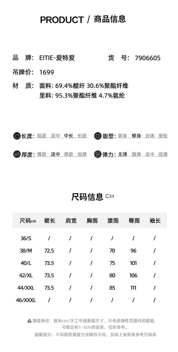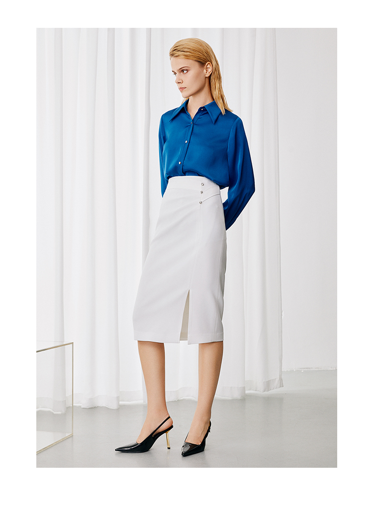 EITIE爱特爱经典气质高腰包臀开叉半身裙秋季新款7906605