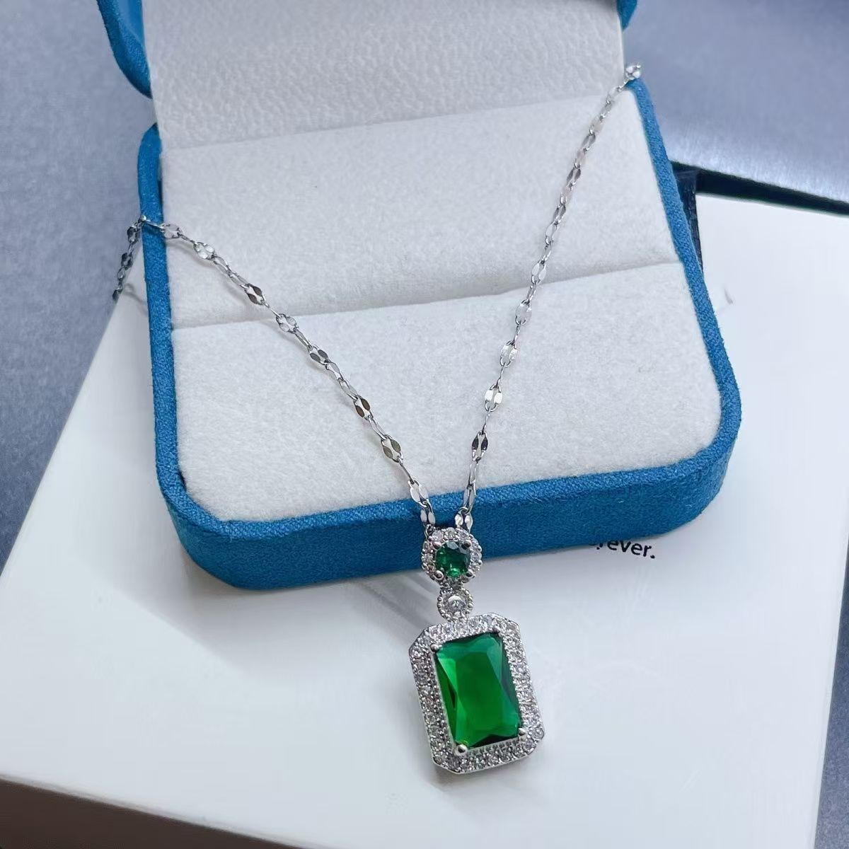 绿色项链轻奢小众夏天精致不掉色2025年新款日常复古钛钢锁骨链女