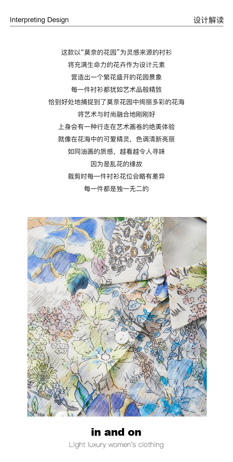 IN AND ON 春季新款 莫奈花园 花卉印花衬衫 54200
