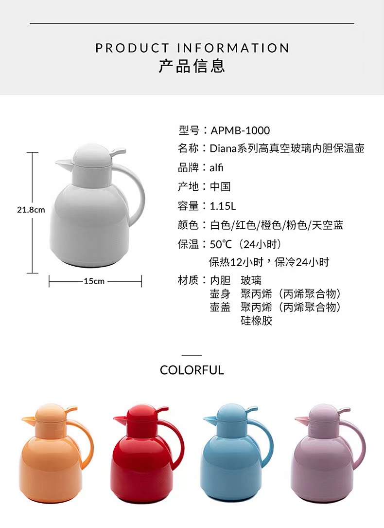 百货世界-膳魔师Diana系列玻璃内胆保温壶(天空蓝,1.15L)