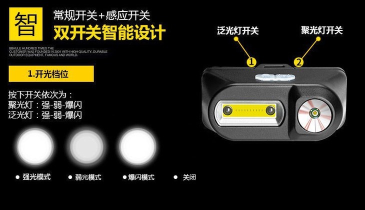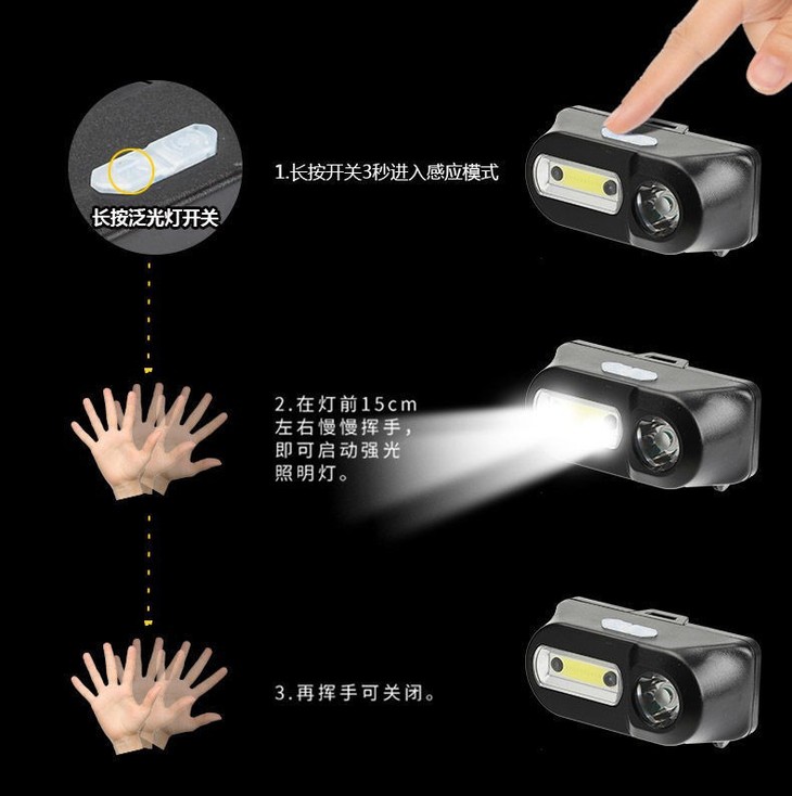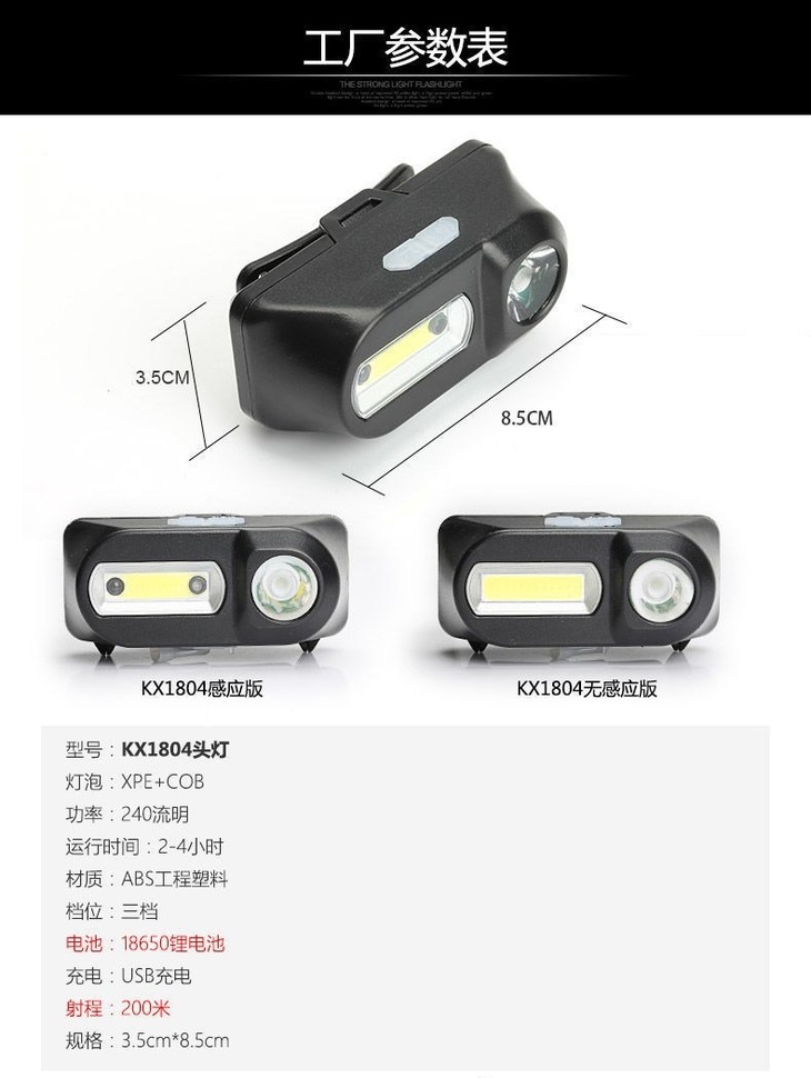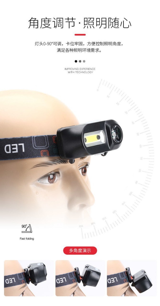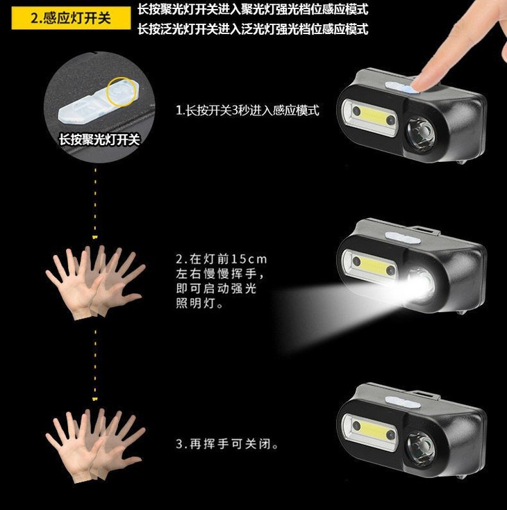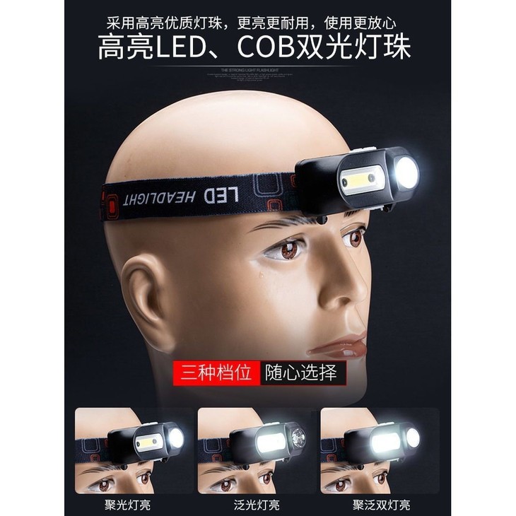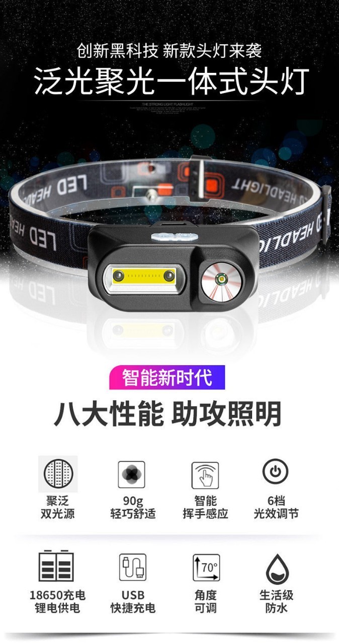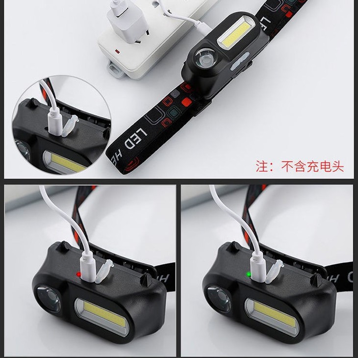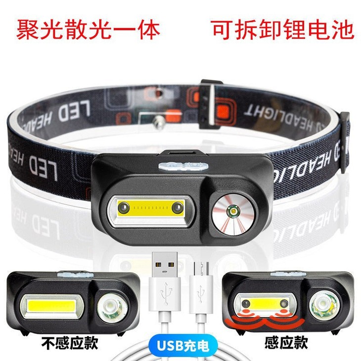 led感应头灯强光可充电远射超亮头戴式矿灯夜钓家用户外工作防水