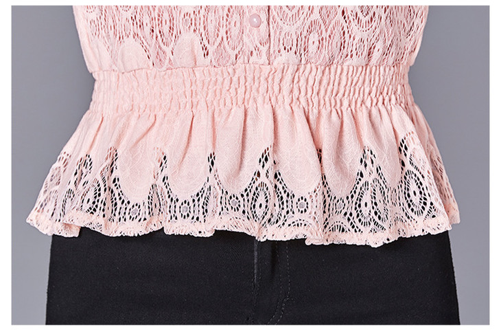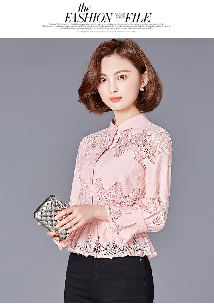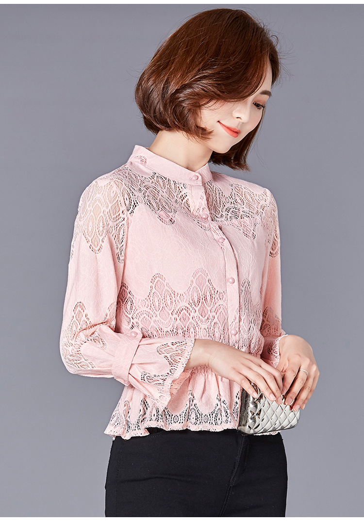 AHM-sscl1037新款时尚优雅气质立领长袖镂空蕾丝打底衫