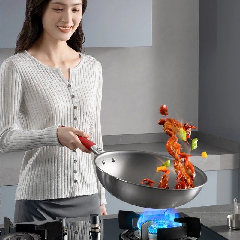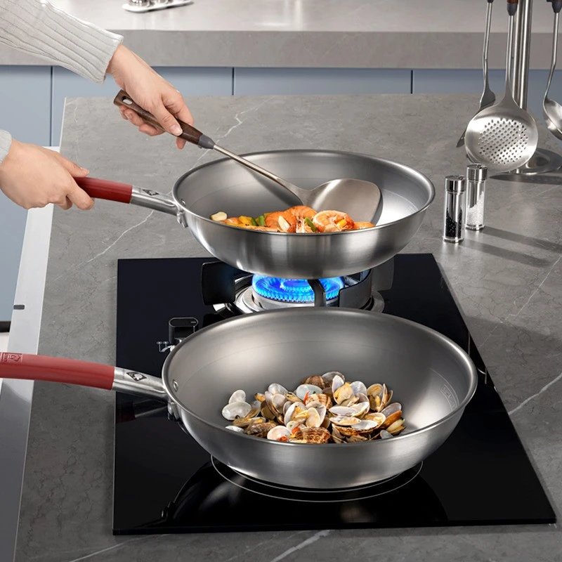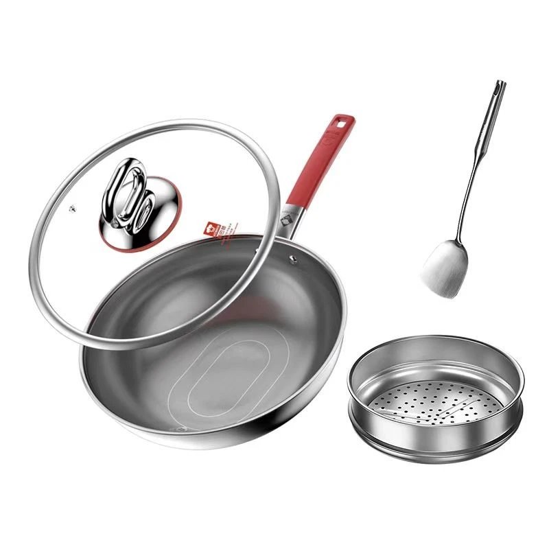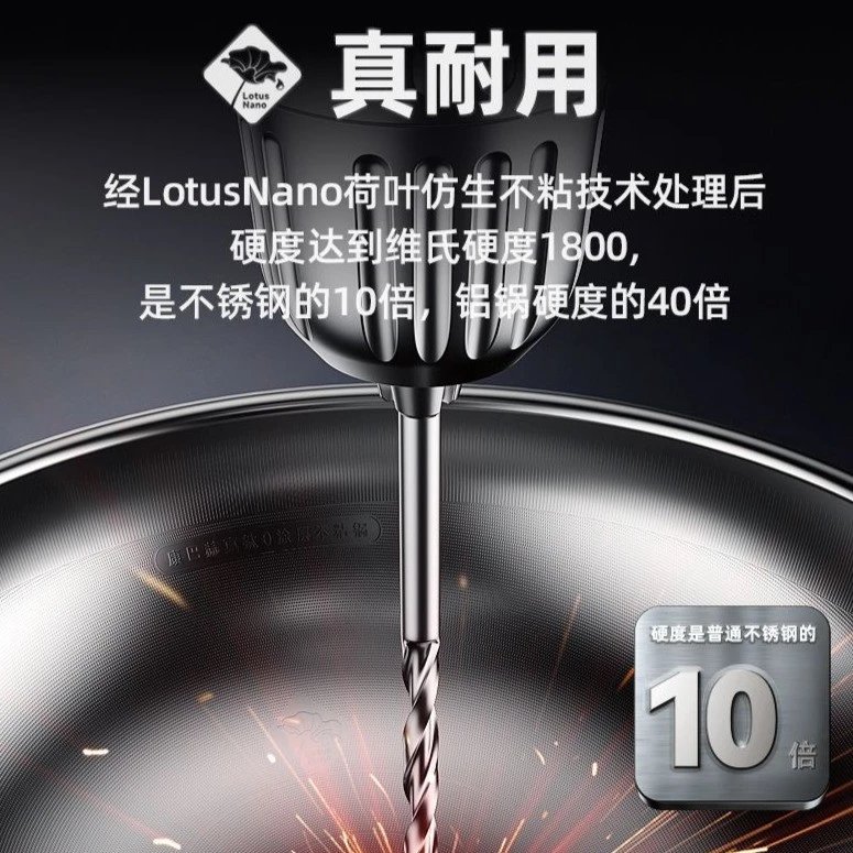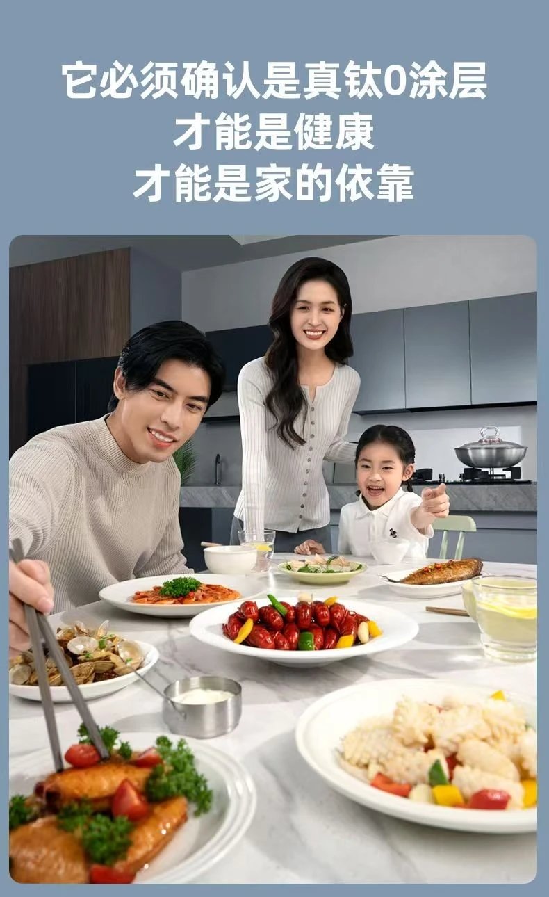 黑科技真钛三代0涂层炒锅32cm(带蒸笼和铲)