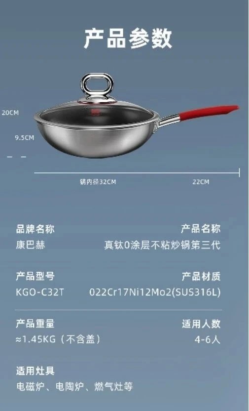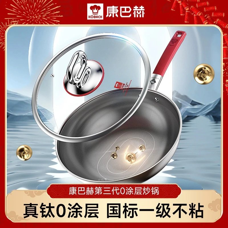 旗舰店484开团398康巴赫真钛0涂层三代不粘炒锅复合材质一体成型导热快速不挑炉灶基地直邮