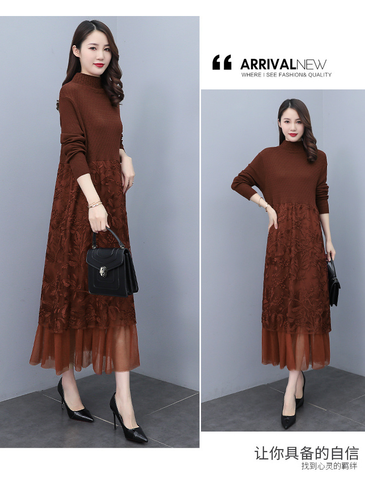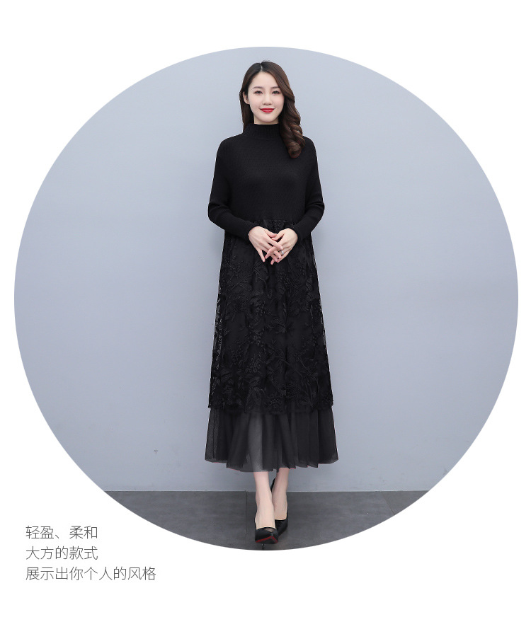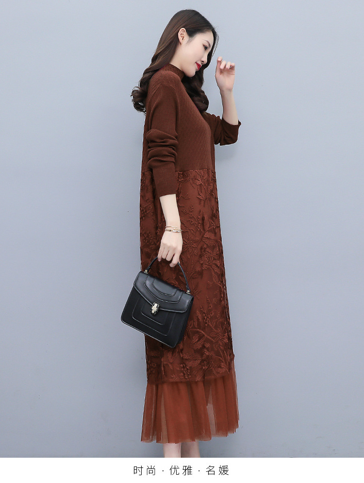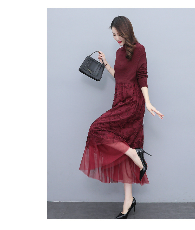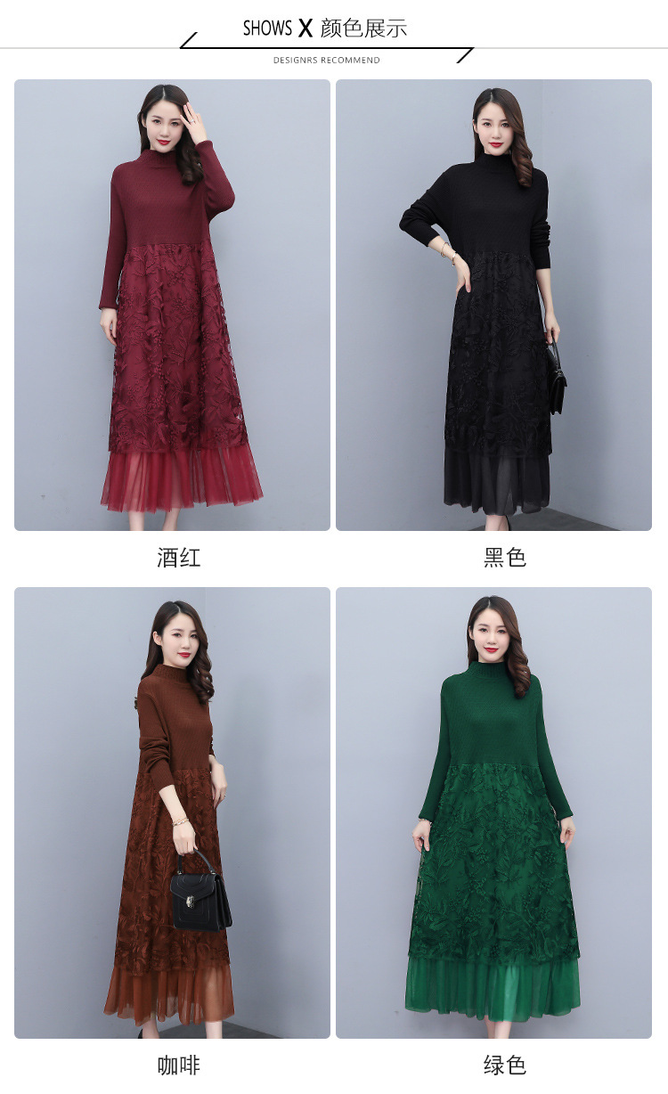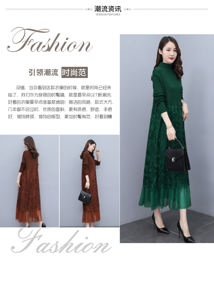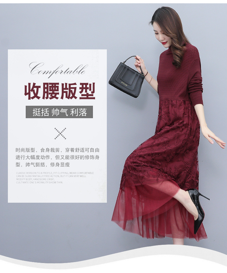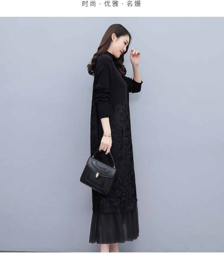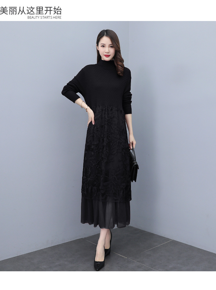 HR WX28589春新款针织连衣裙蕾丝显瘦网纱减龄配大衣