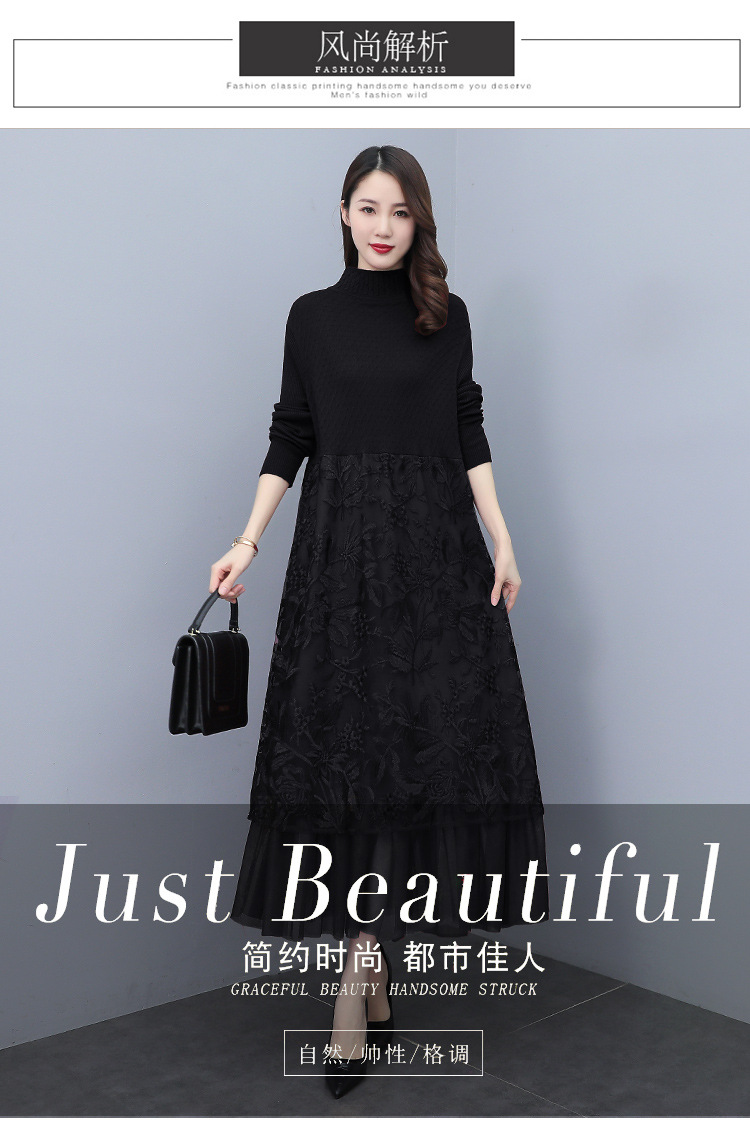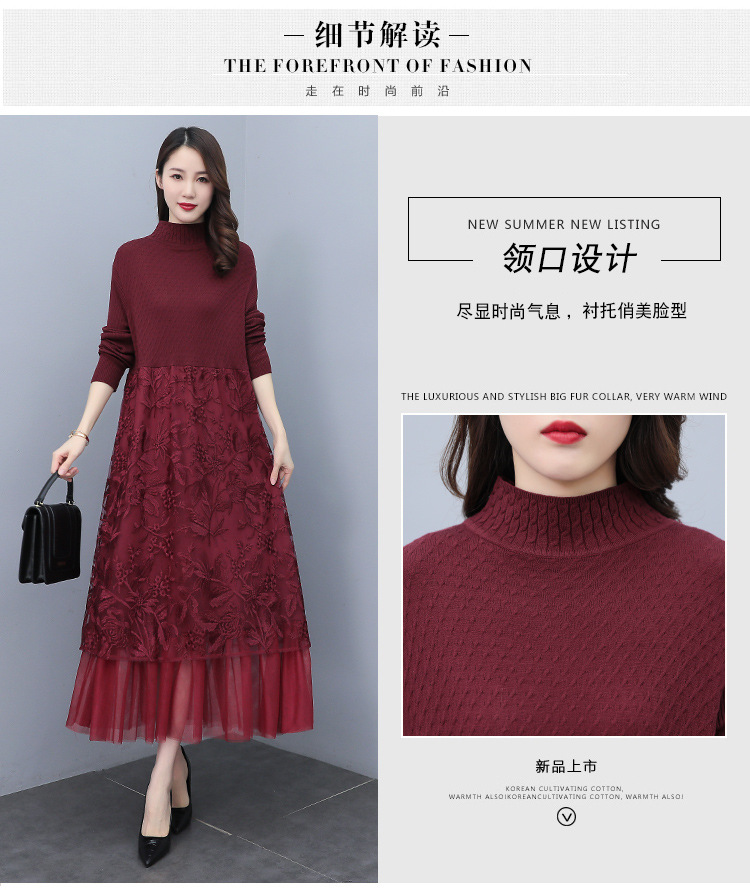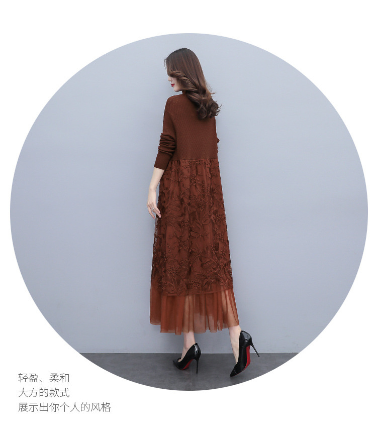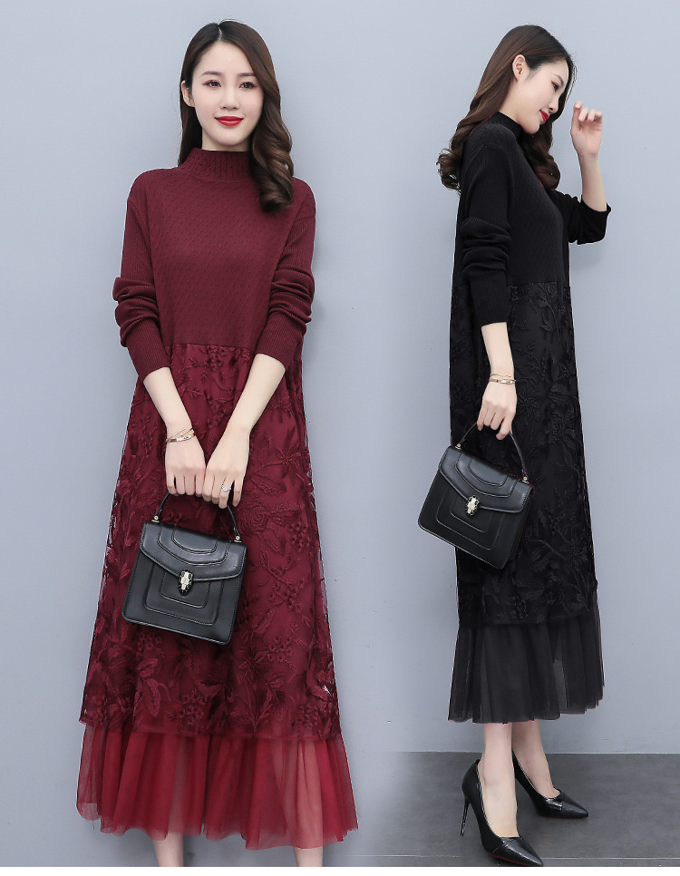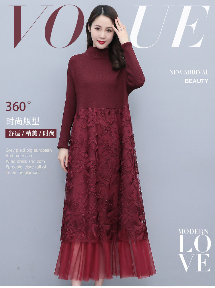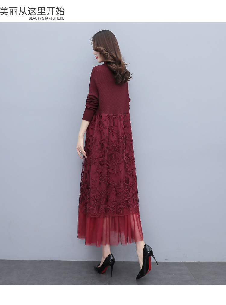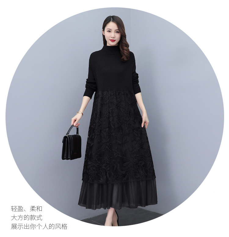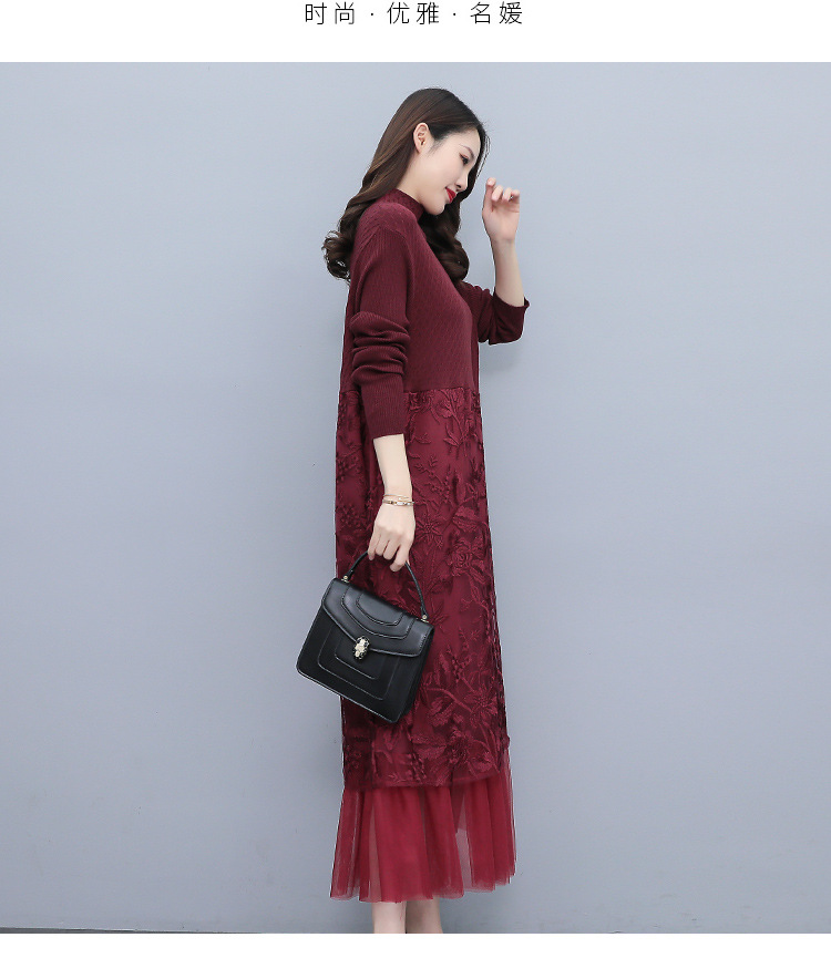 HR WX28589春新款针织连衣裙蕾丝显瘦网纱减龄配大衣