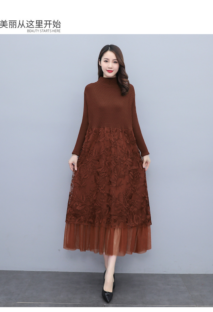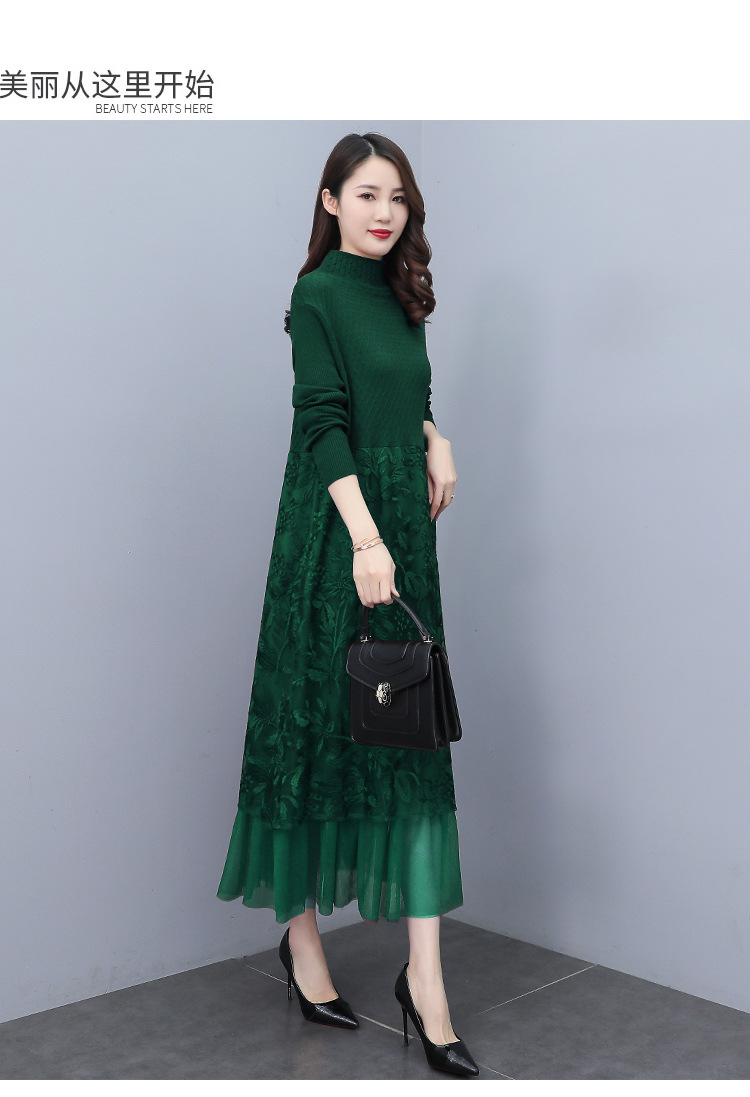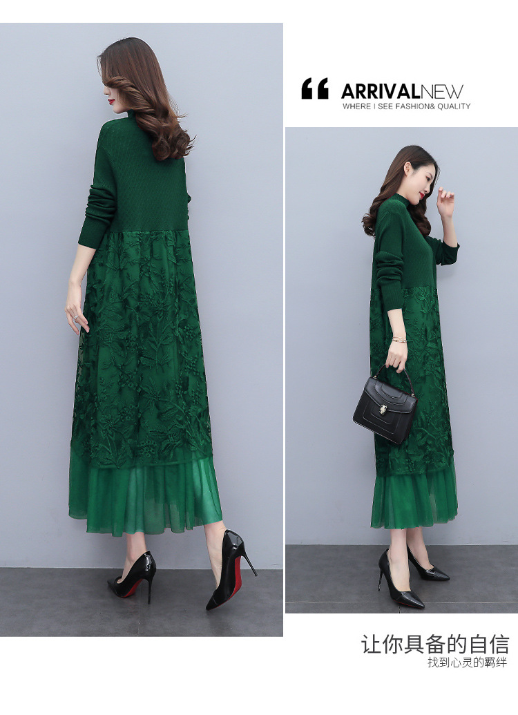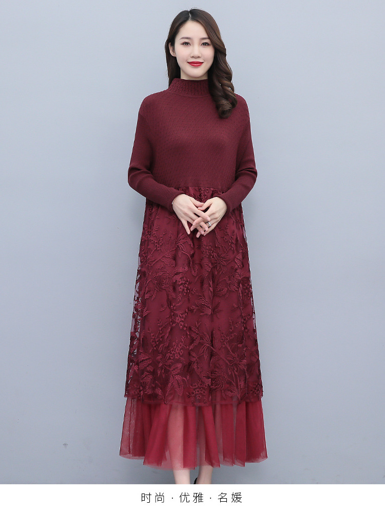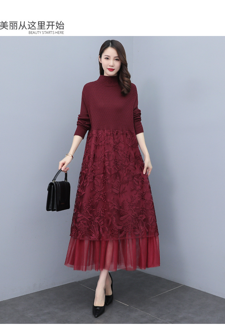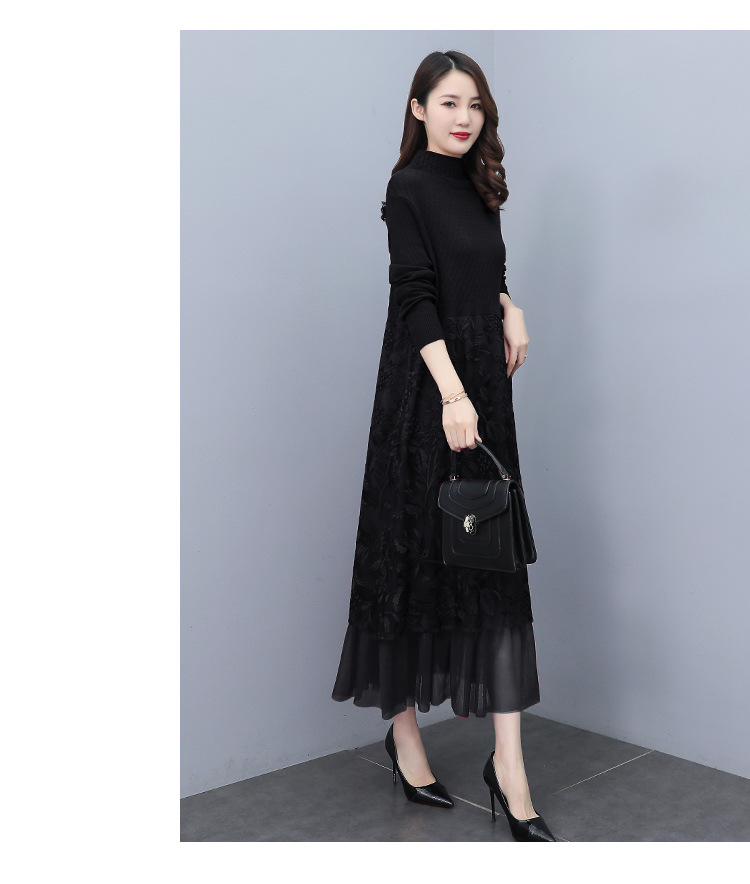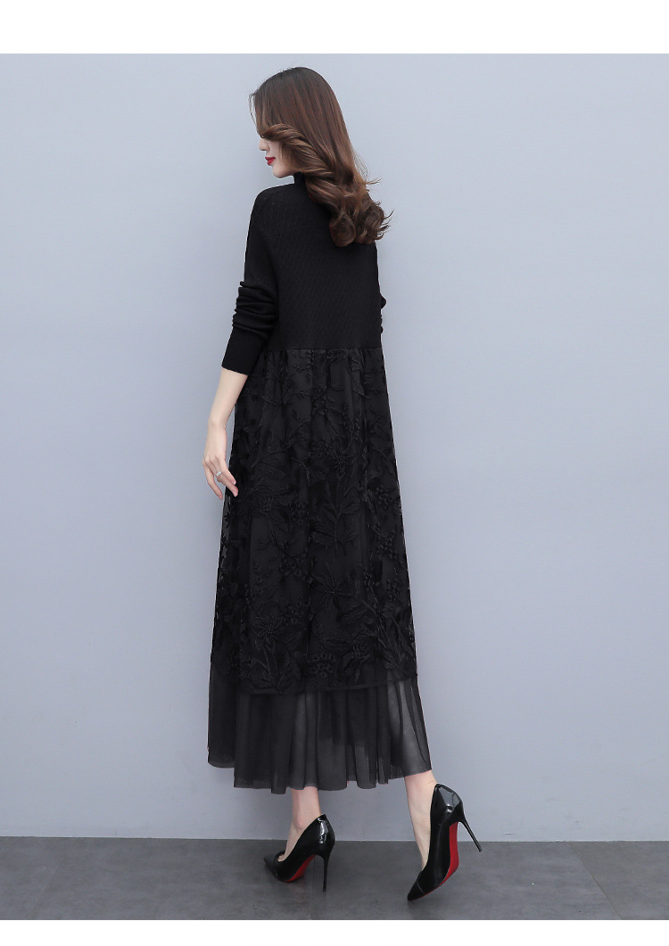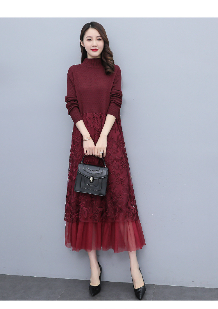 HR WX28589春新款针织连衣裙蕾丝显瘦网纱减龄配大衣